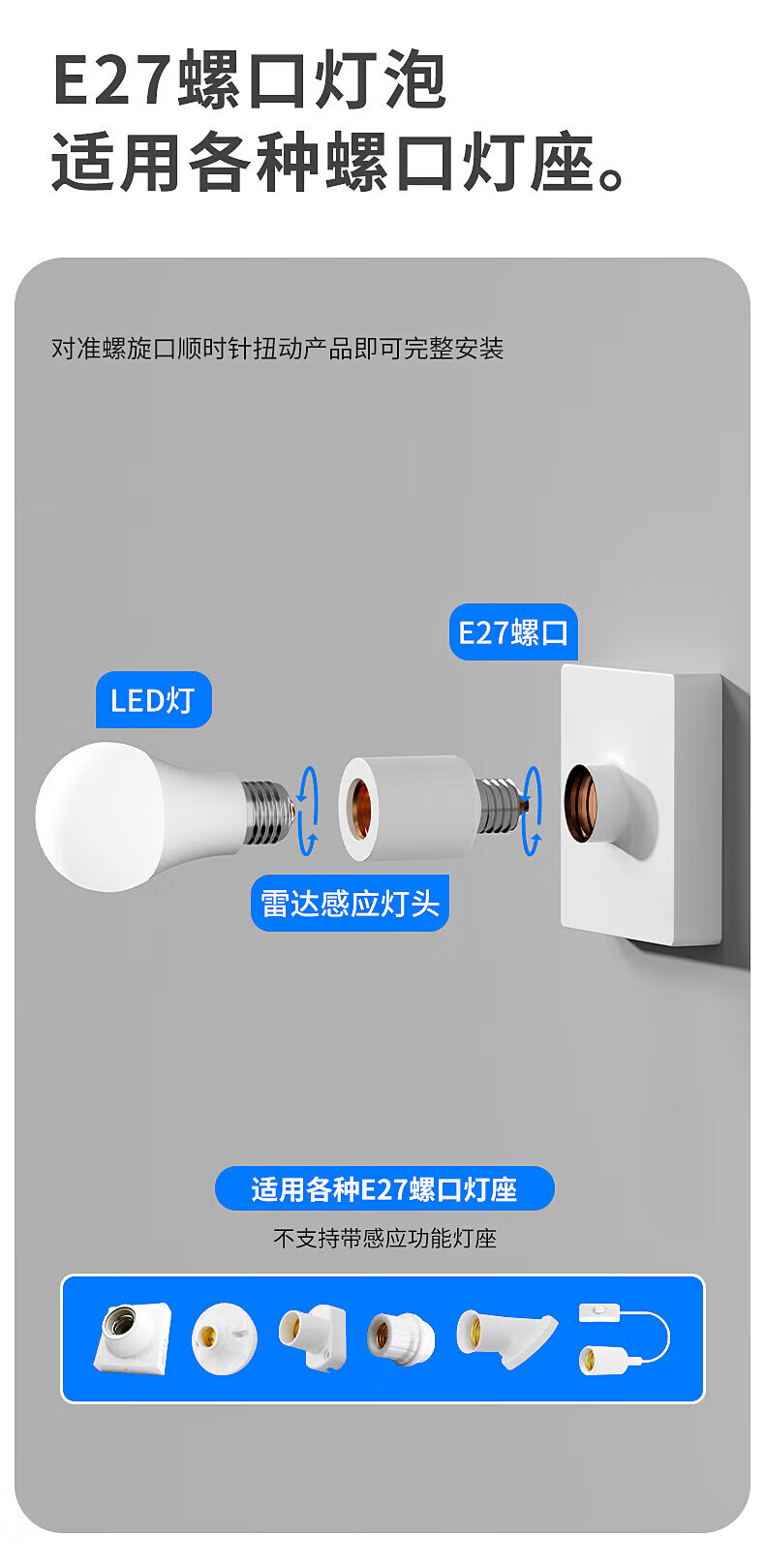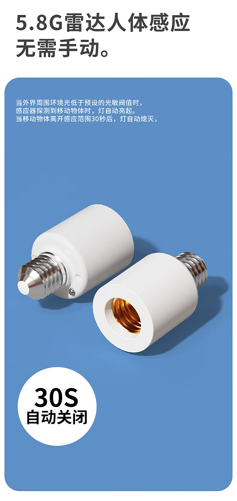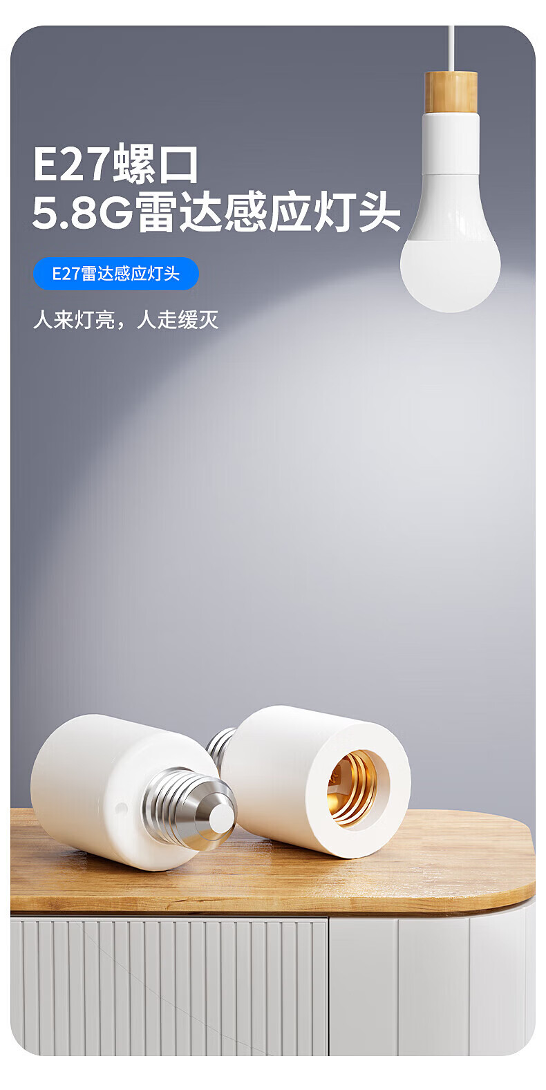 国际电工(FDD)微波雷达感应灯头E27螺口灯座智能人体感应开关楼道走廊LED灯底座 E27雷达感应灯头【无灯泡】