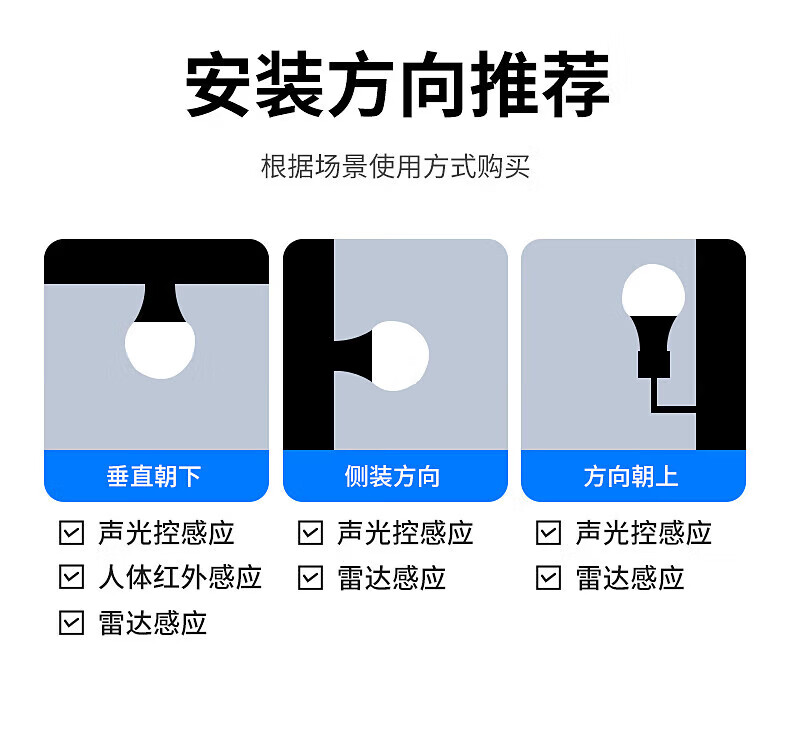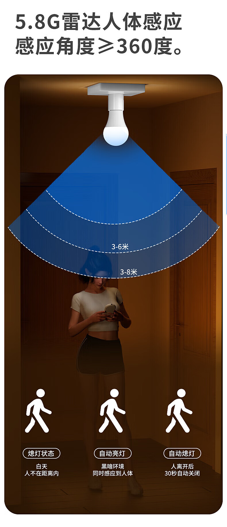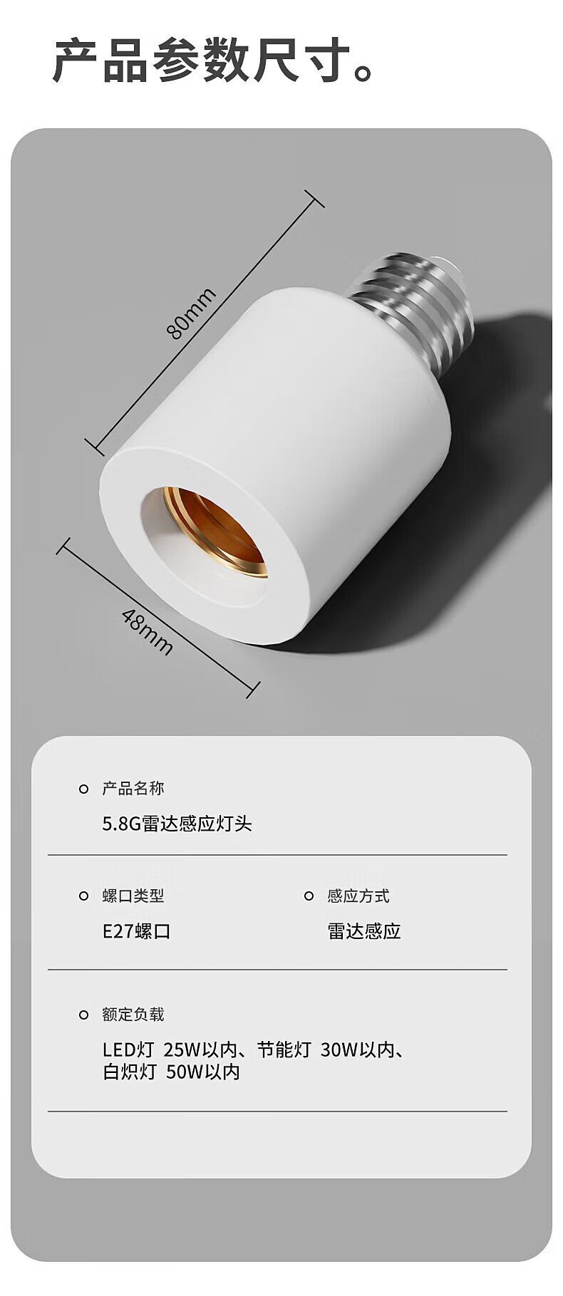 国际电工(FDD)微波雷达感应灯头E27螺口灯座智能人体感应开关楼道走廊LED灯底座 E27雷达感应灯头【无灯泡】