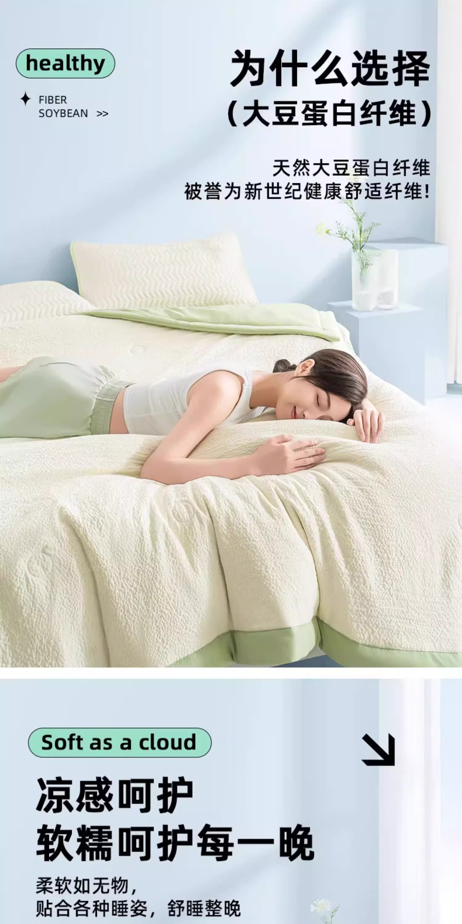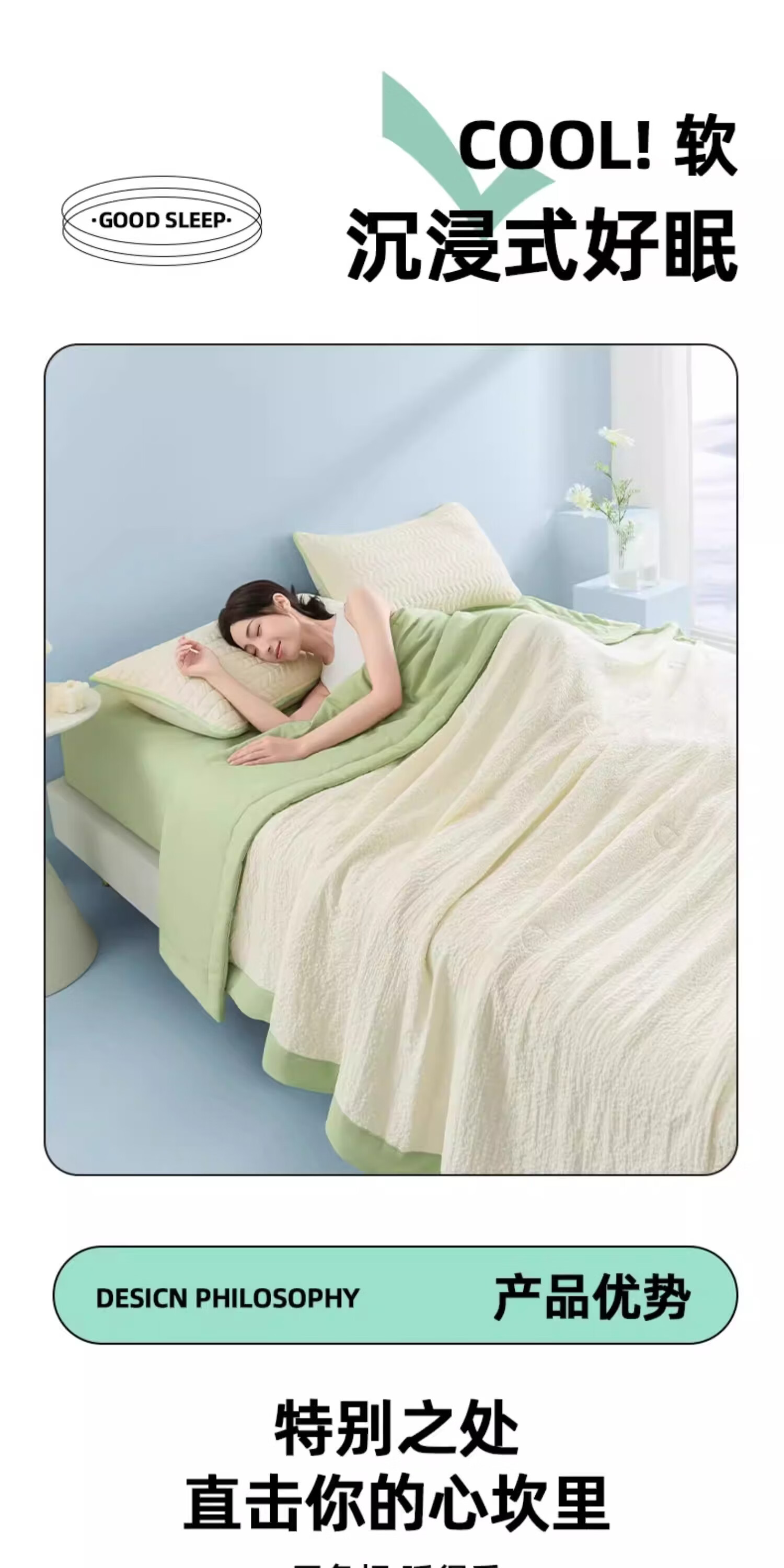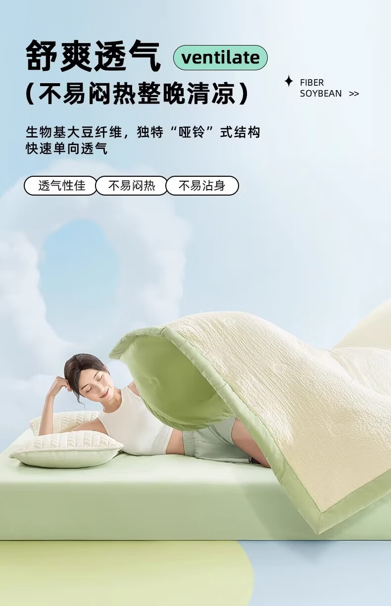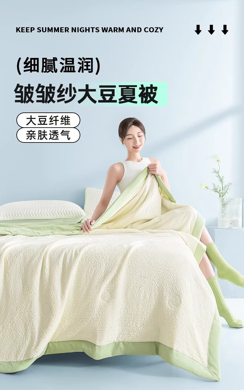 猫人(MiiOW)A类大豆空调被夏凉被子夏季200x230cm夏被可机洗裸睡薄被子四季被 豆绿【A类超柔皱皱纱面料】 200x230cm-双人夏凉被【A类裸睡级可机洗】