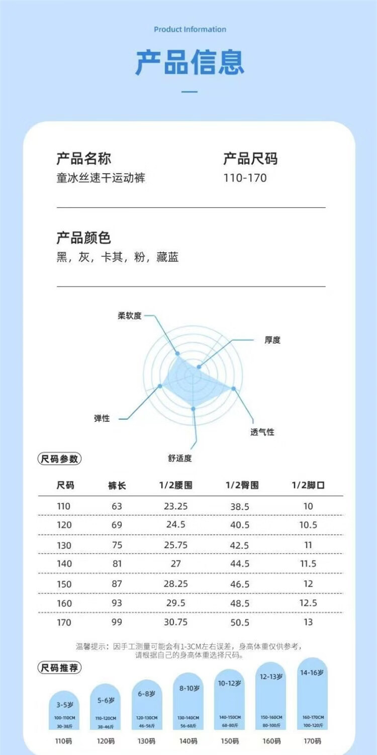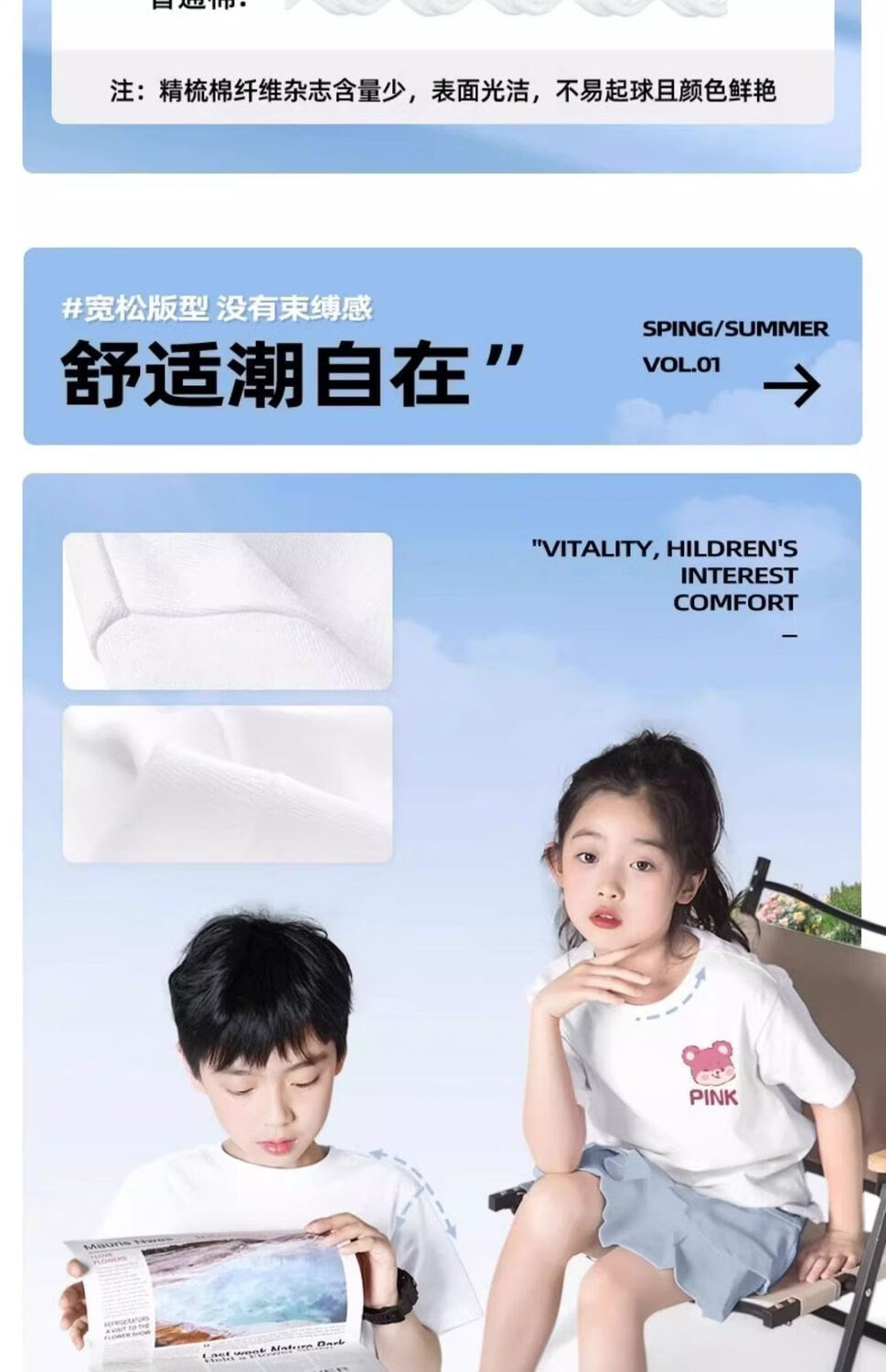唐狮童装儿童运动套装速干长裤冰丝裤子男童女童品牌卡通两件套t恤体 白黑LES 140