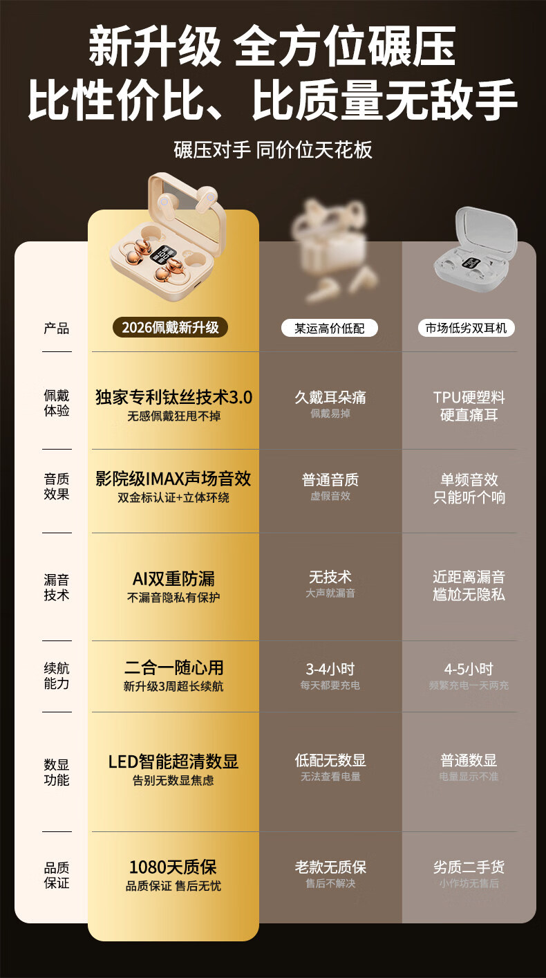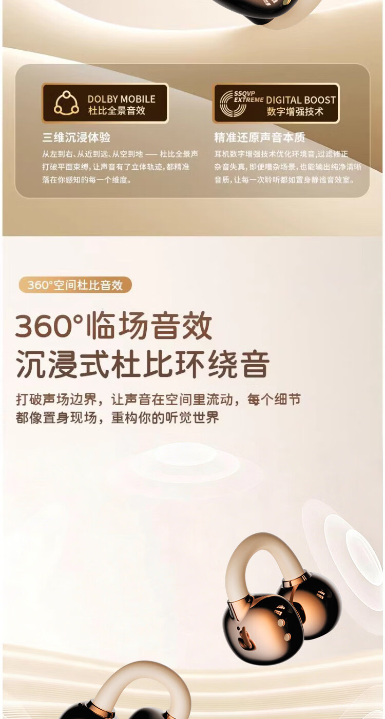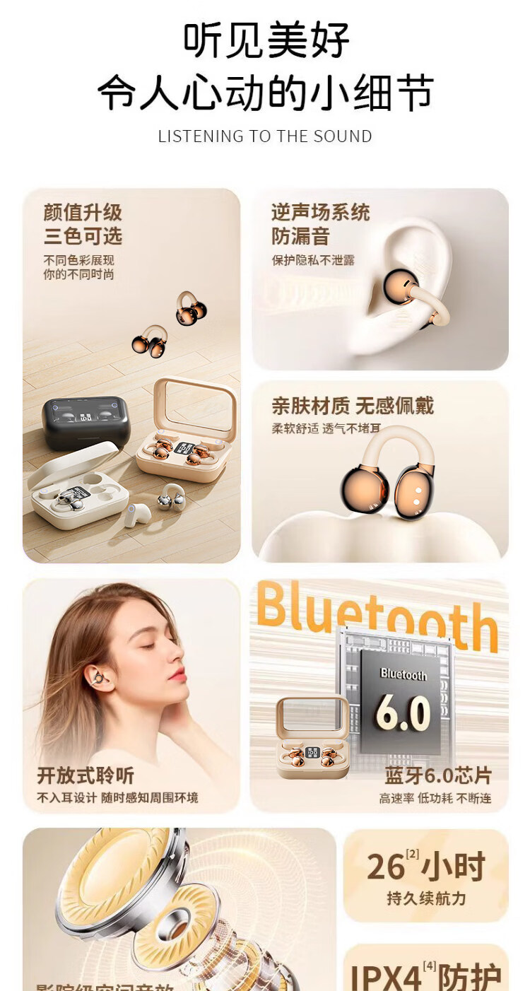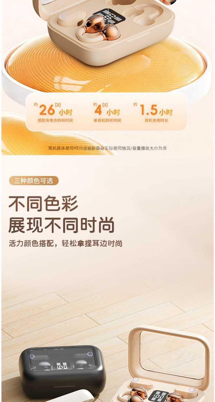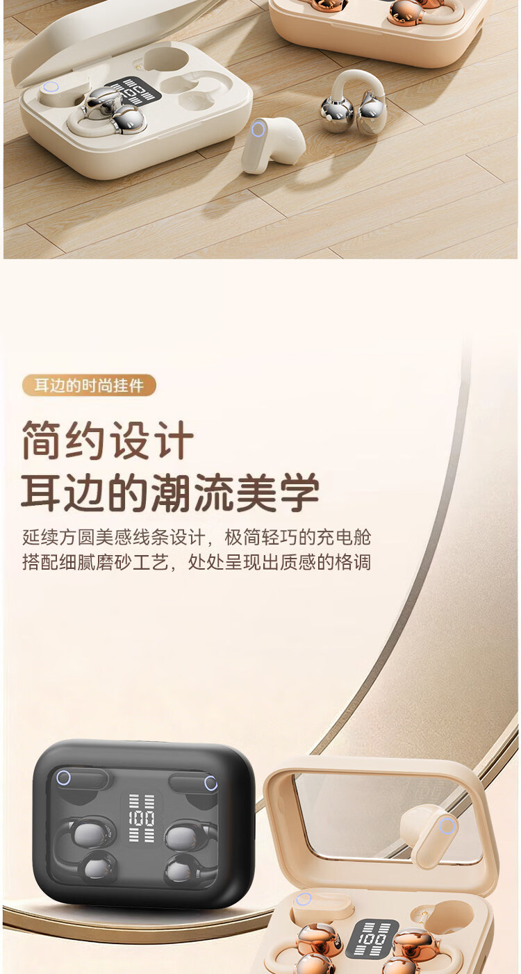 艾勒丝汀 蓝牙耳机无线耳夹式骨传导概念双耳半入耳二合一通话降噪超长续航跑步运动 【石墨黑丨高保真Ultra版】2副耳机 影院级IMAX音效丨钛丝技术3.0丨Ai双重防漏