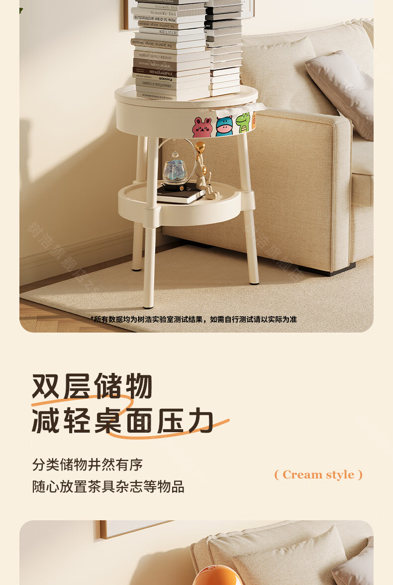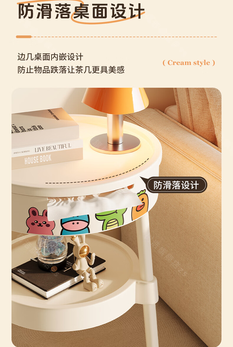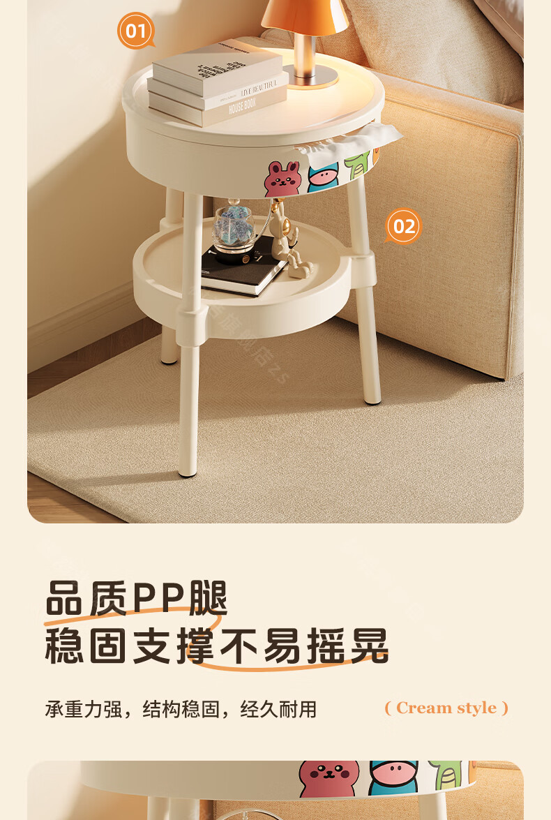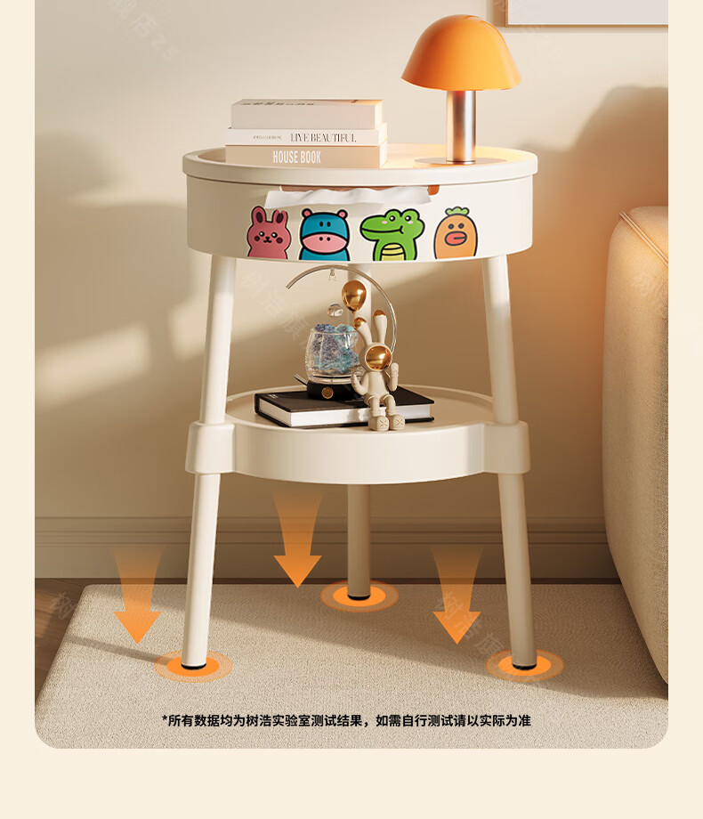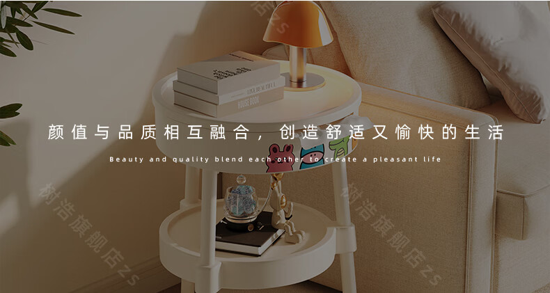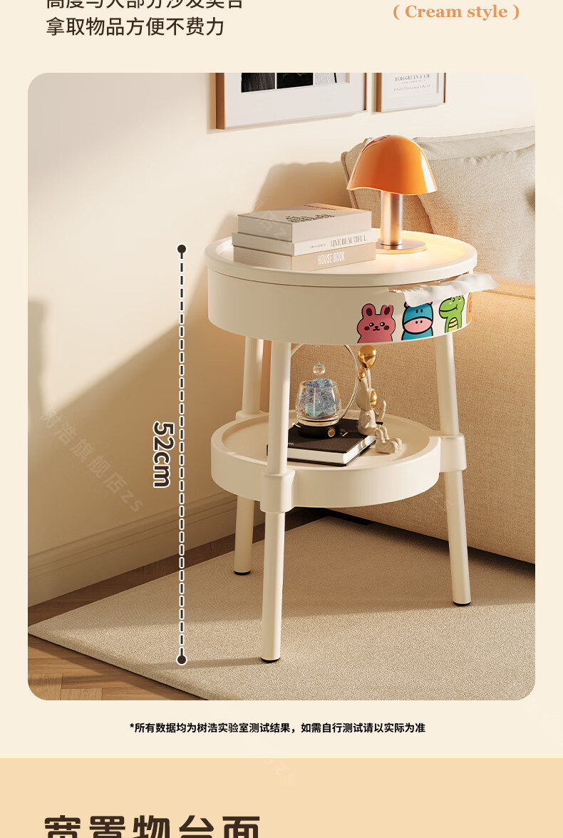 树浩边几客厅沙发边桌卧室床头柜家用置物架出租房阳台茶桌奶油风桌子 【稳固加厚】奶白色【自带储物】送贴纸