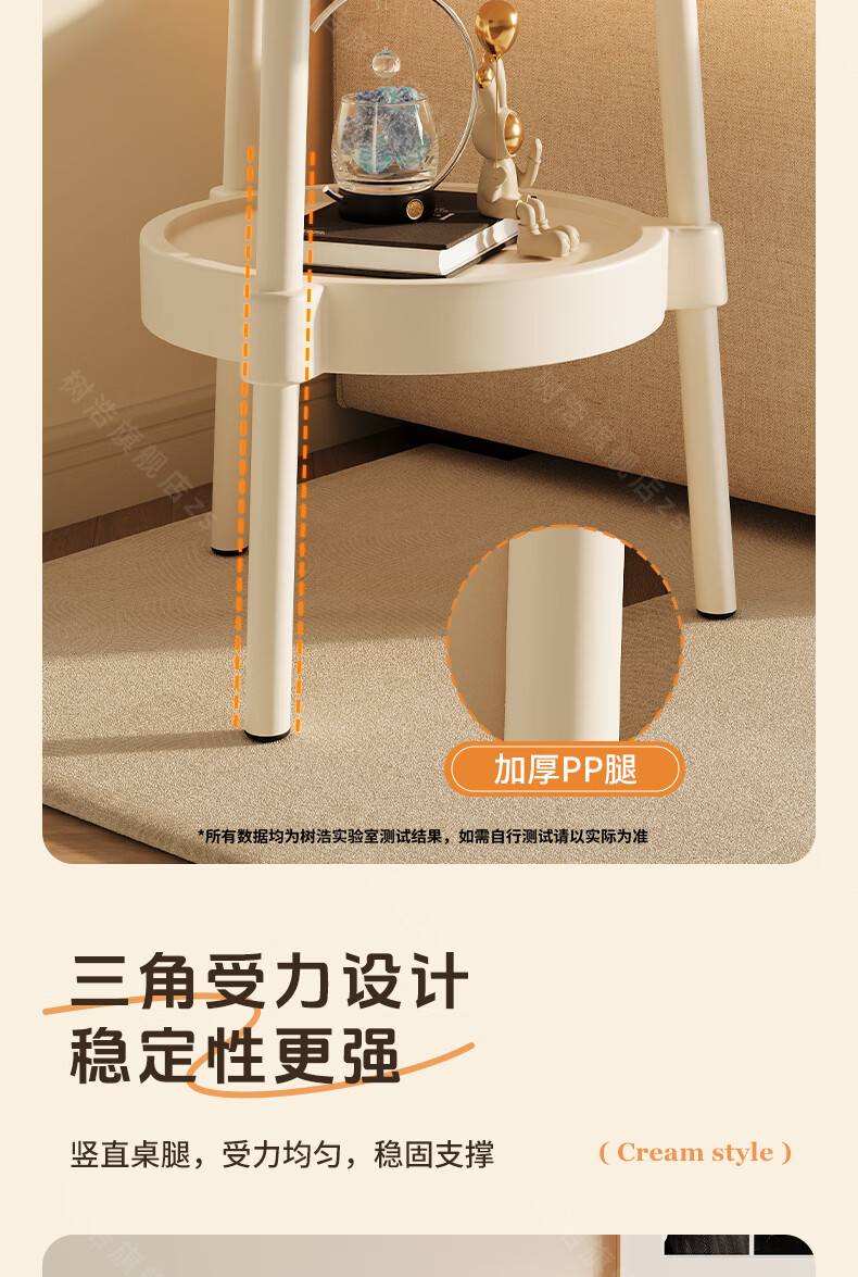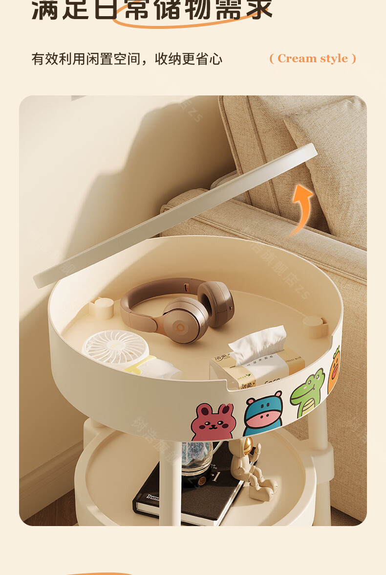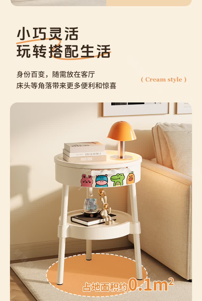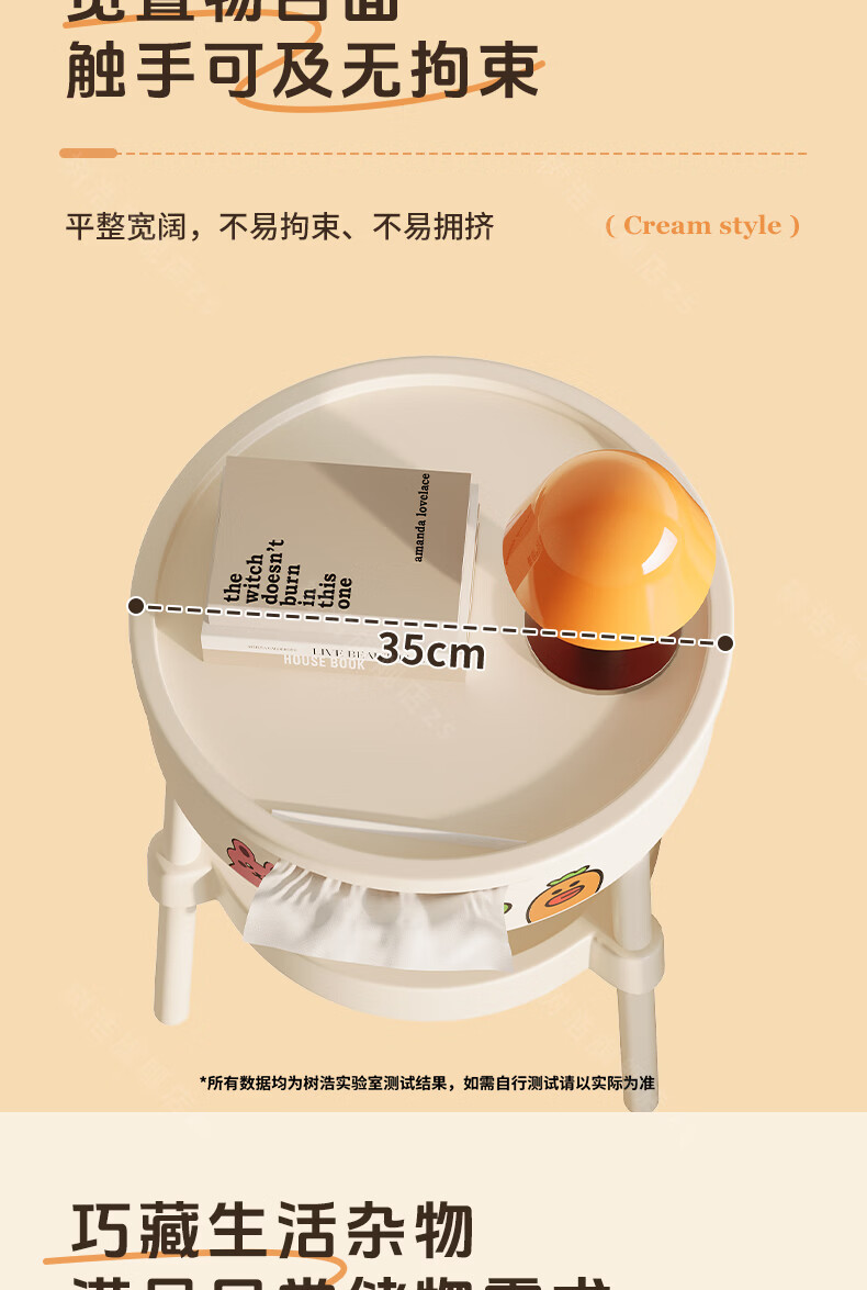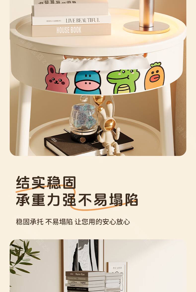 树浩边几客厅沙发边桌卧室床头柜家用置物架出租房阳台茶桌奶油风桌子 【稳固加厚】奶白色【自带储物】送贴纸