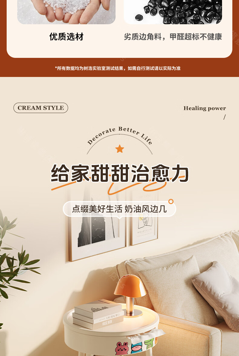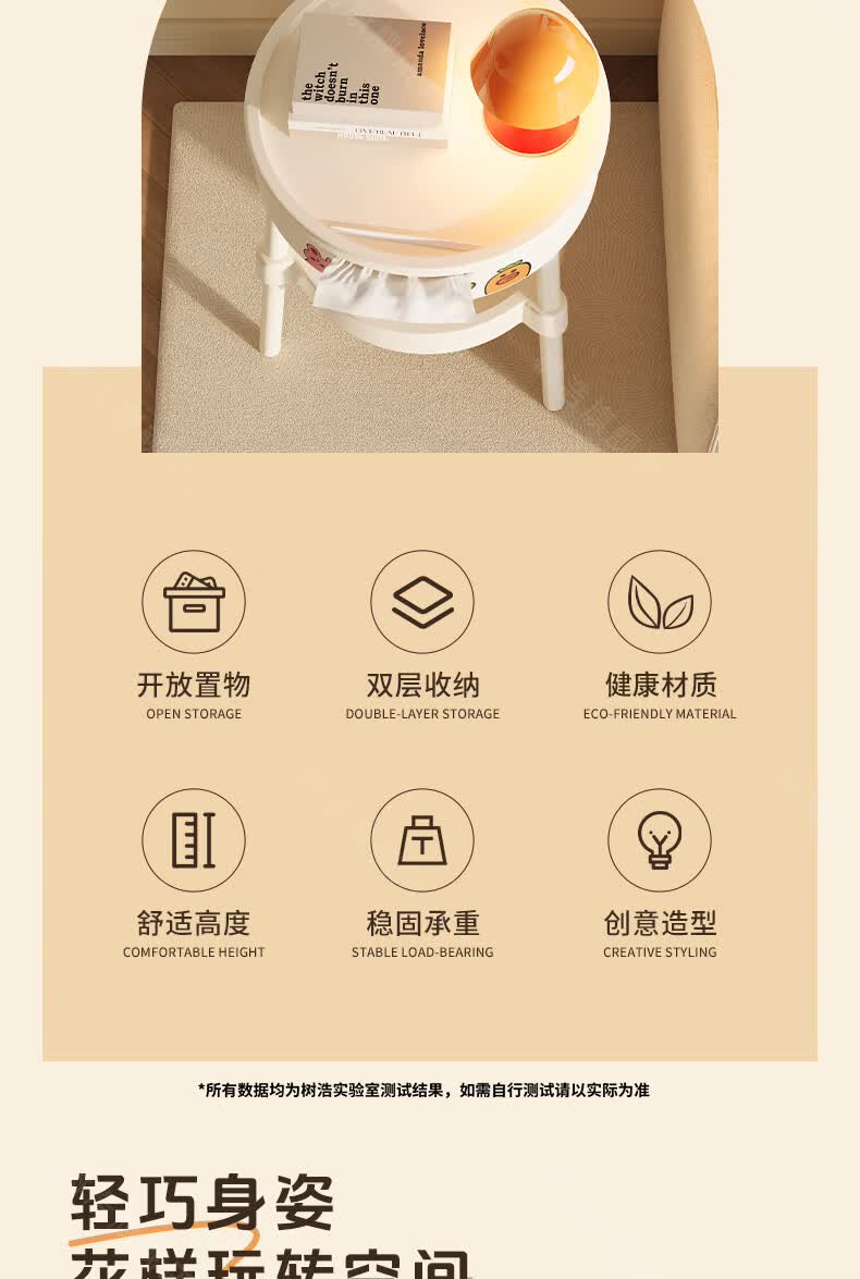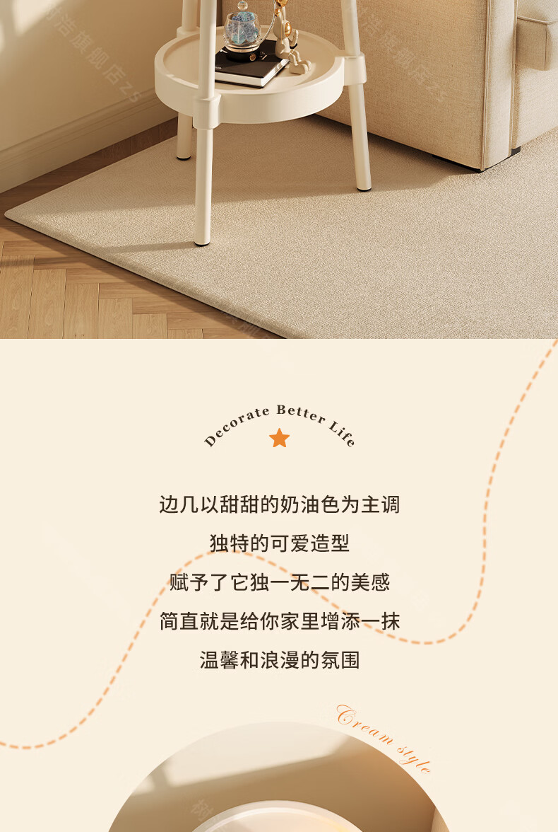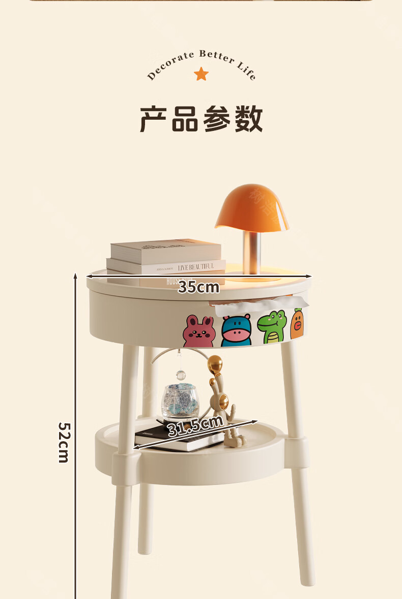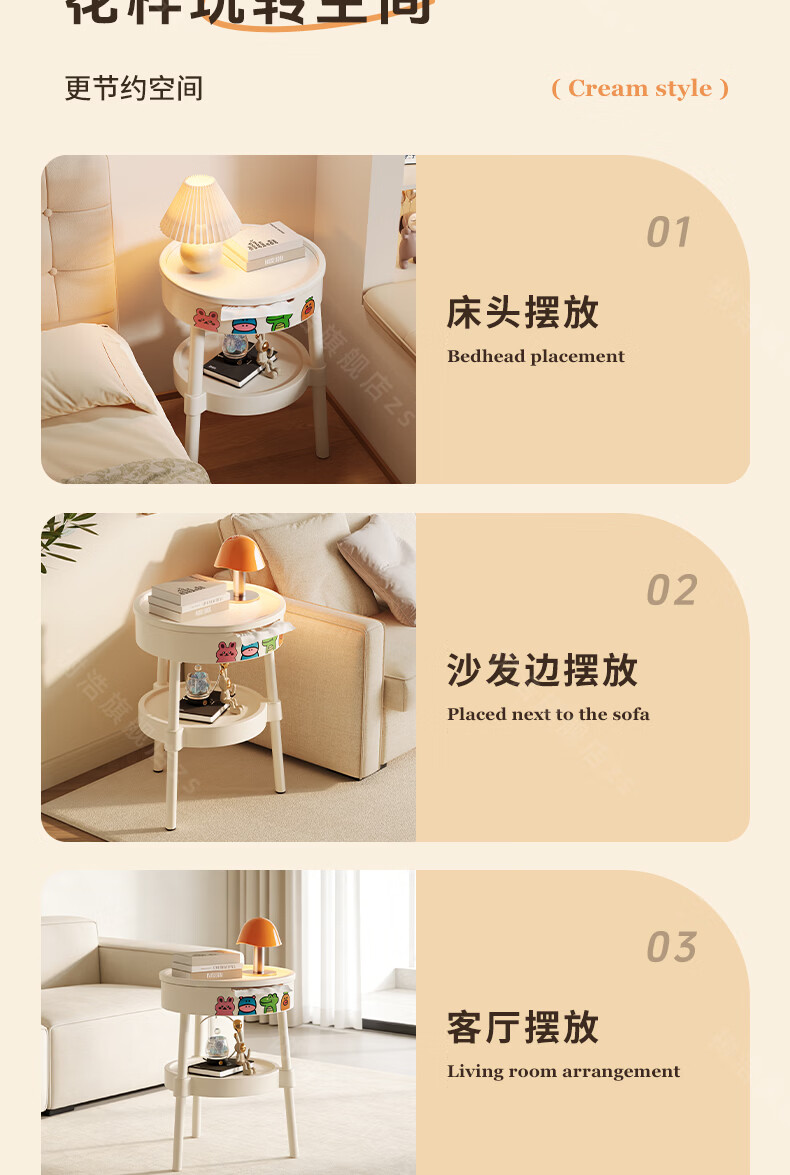 树浩边几客厅沙发边桌卧室床头柜家用置物架出租房阳台茶桌奶油风桌子 【稳固加厚】奶白色【自带储物】送贴纸