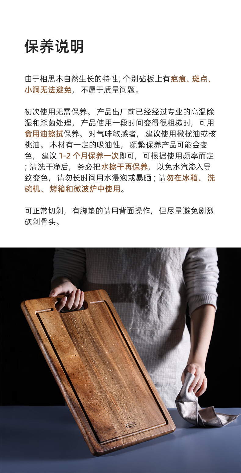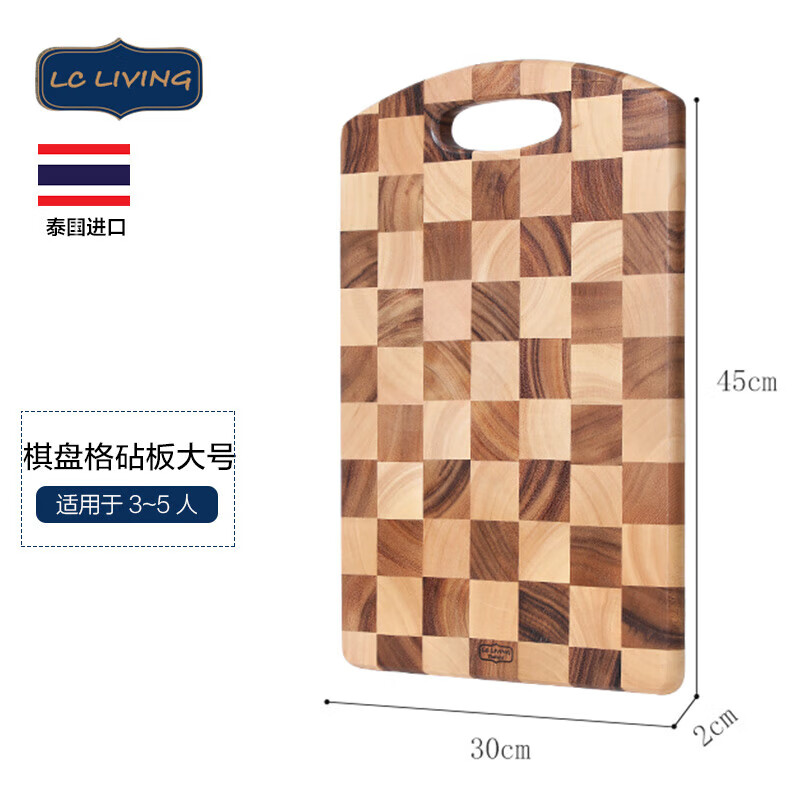 LC LIVING胖东来同款相思木菜板 泰国进口实木砧板切菜板方形提手家用案板 【精美礼盒】45x30x2cm