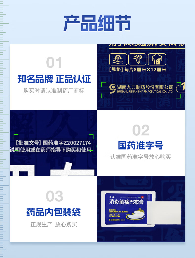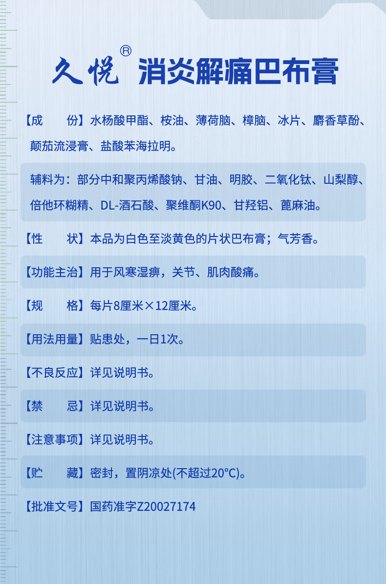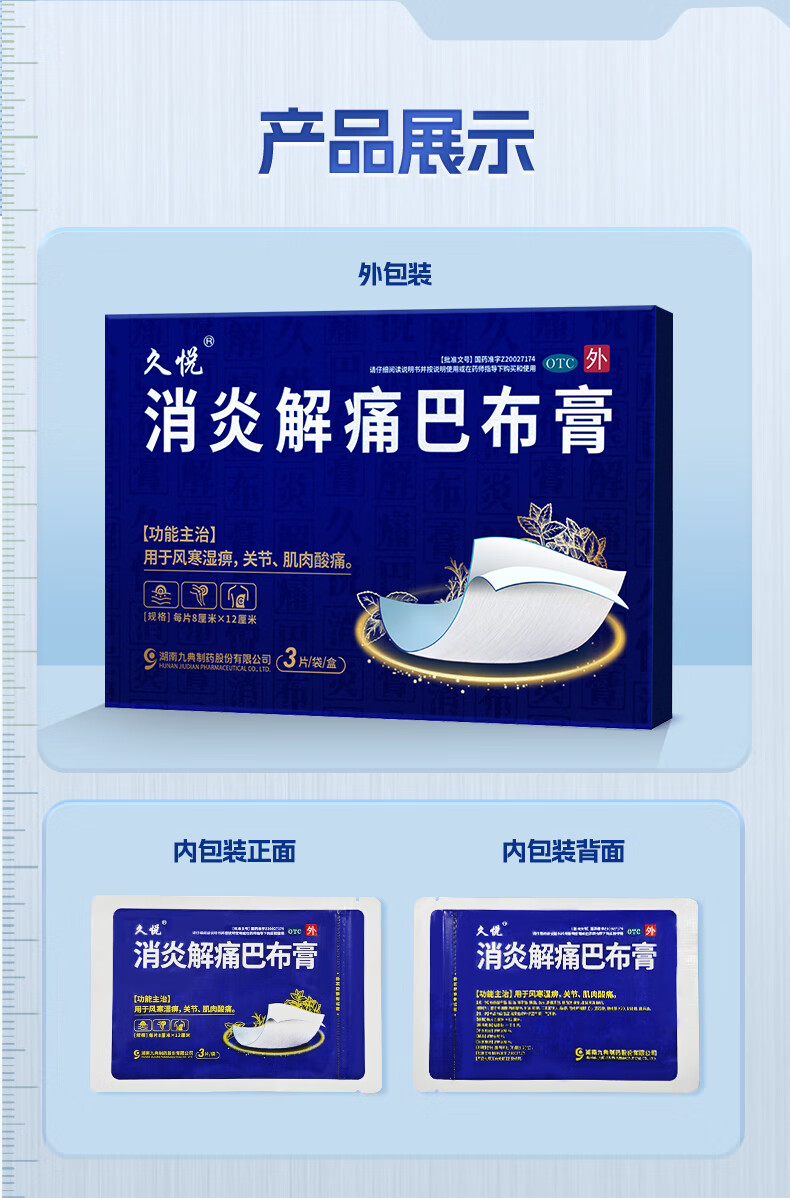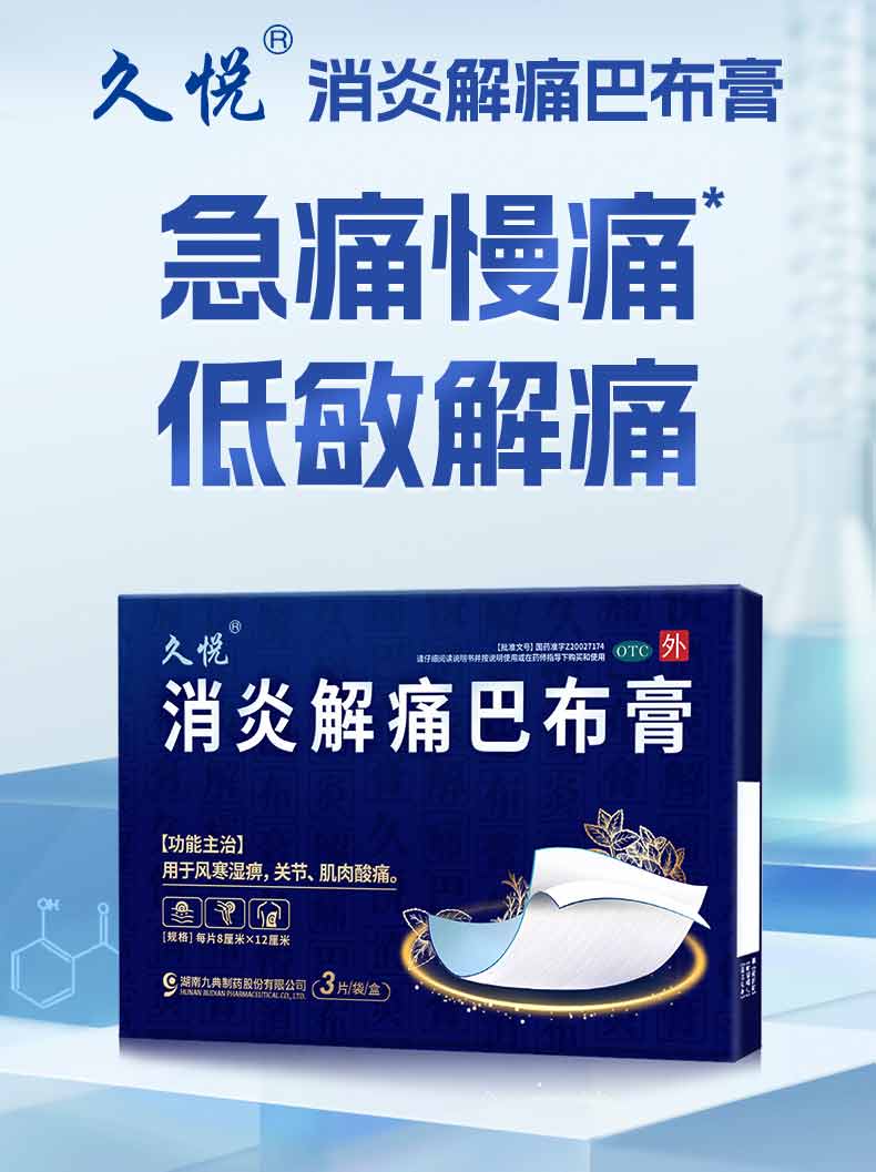 [久悦]消炎解痛巴布膏 8cm*12cm*3贴 5盒装 3贴低敏解痛风寒湿痹关节肌肉酸疼痛脖子肩颈手腕膝关节手指中药贴膏水杨酸甲酯 肩颈疼痛