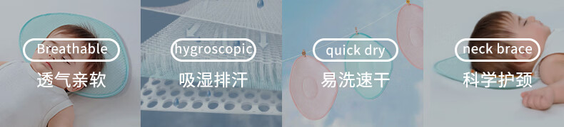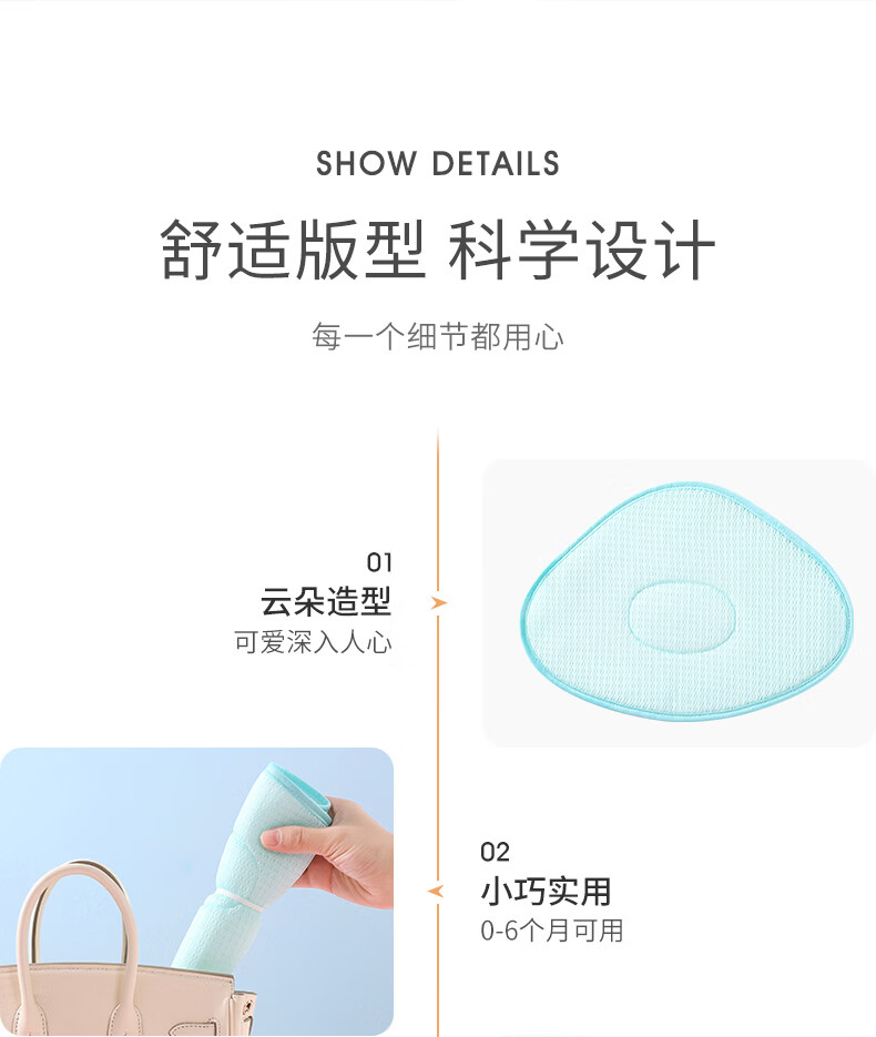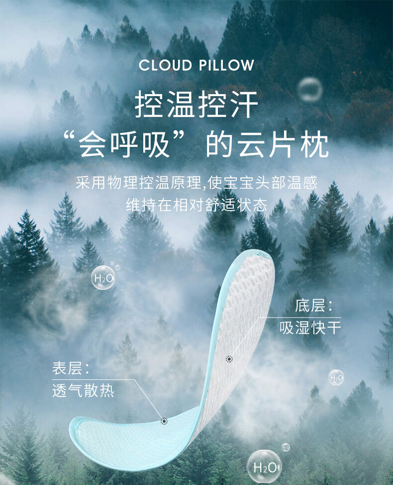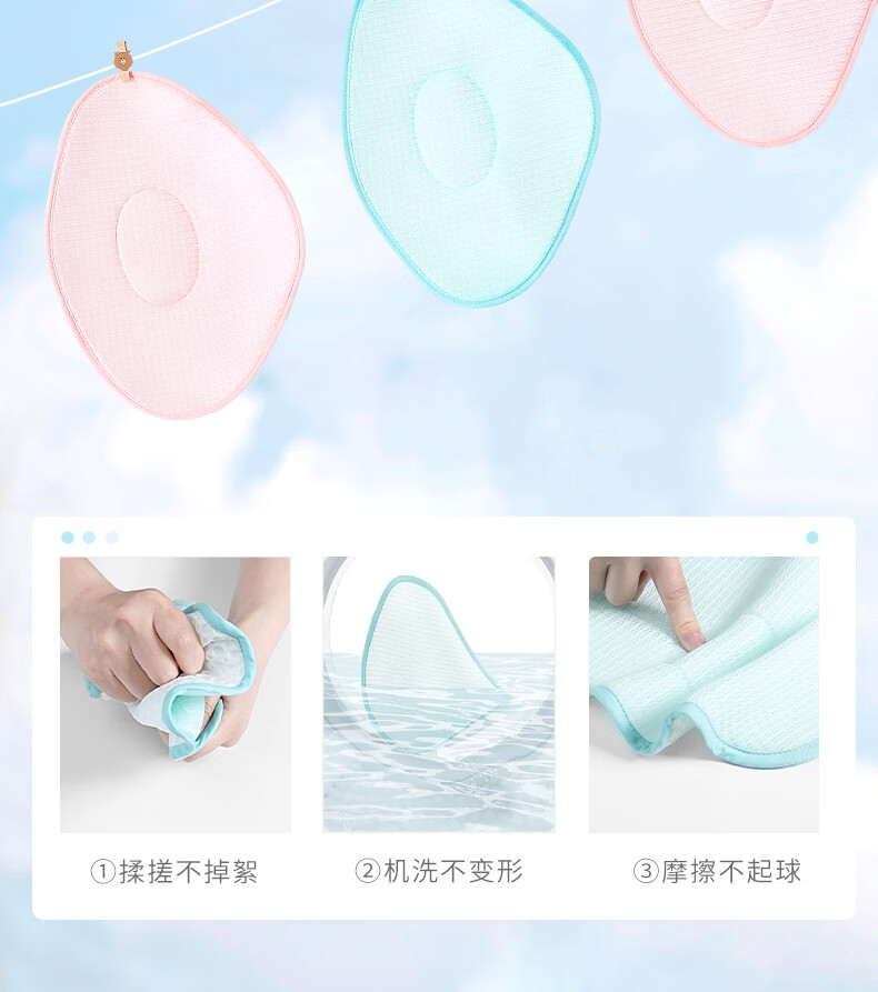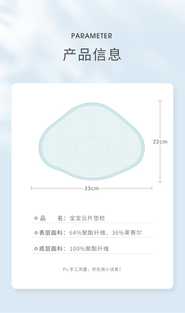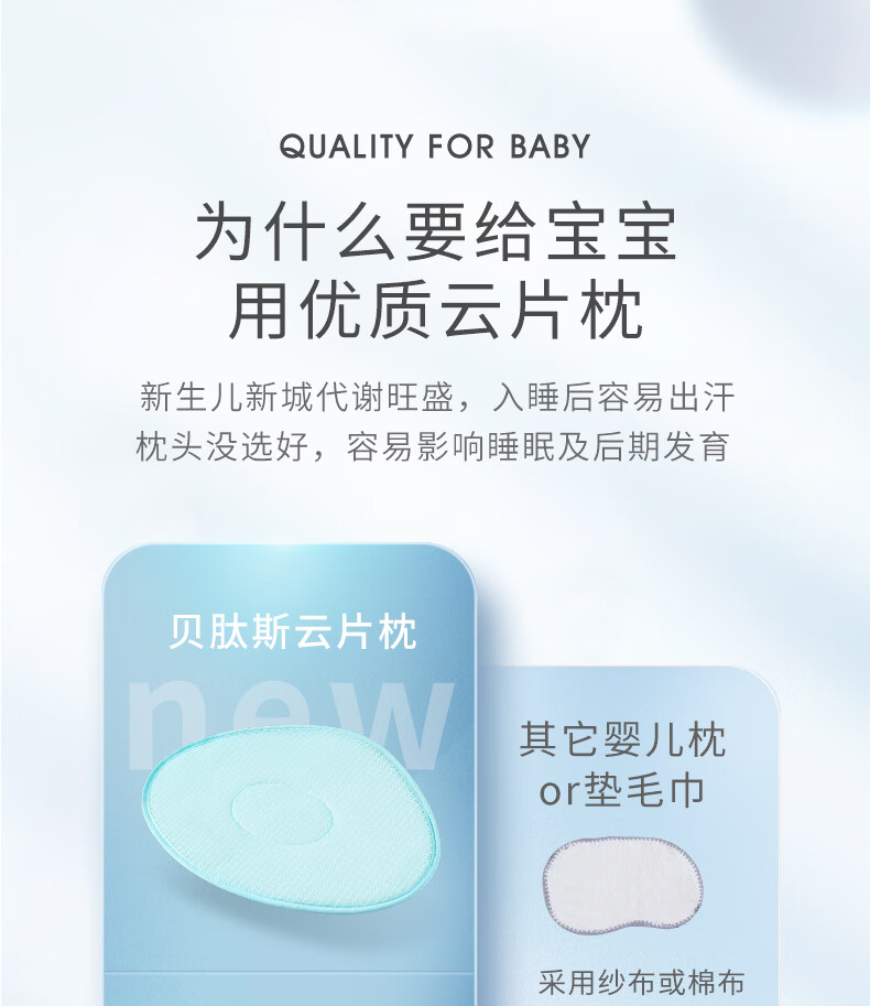 贝肽斯云片枕婴儿枕头新生儿0到6个月夏季吸汗透气宝宝云枕巾 埃尔维斯蓝【31×22cm】