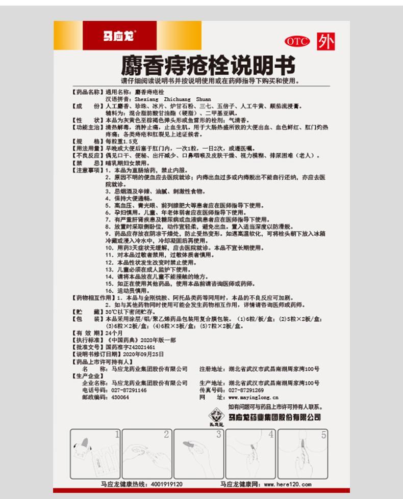 马应龙 麝香痔疮栓 1.5g*14粒 痔疮专用药消肿止痛止血生肌用于各类痔疮肛门灼热疼痛便血肛裂OTC痔疮药