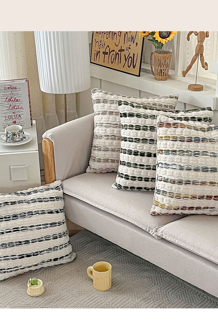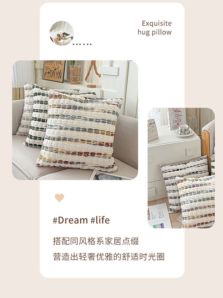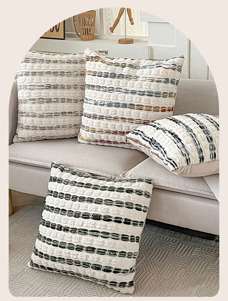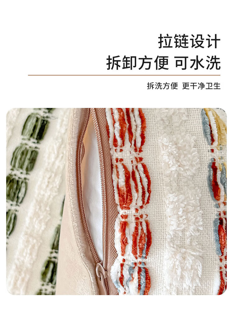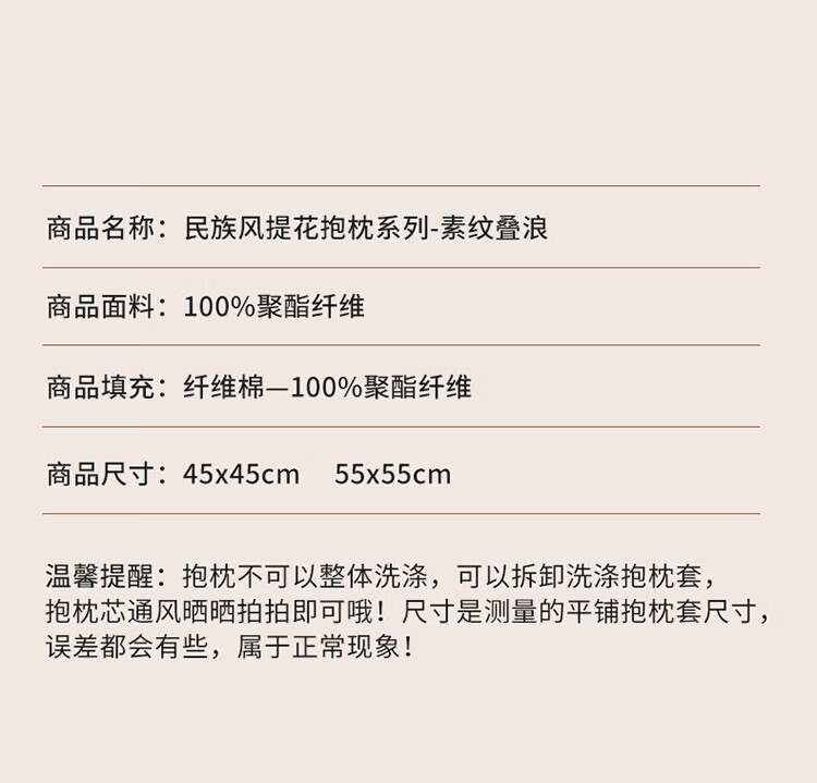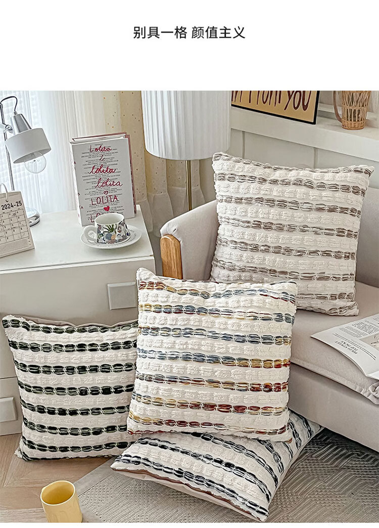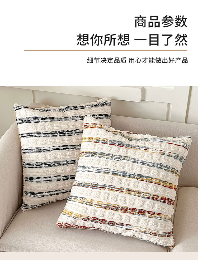 罗兰家纺轻奢高级感民族风提花抱枕抱枕套含芯沙发卧室靠背腰靠垫不含芯 HC 民族风提花抱枕-素纹叠浪彩色 45cm*45cm 枕套 【不含芯】