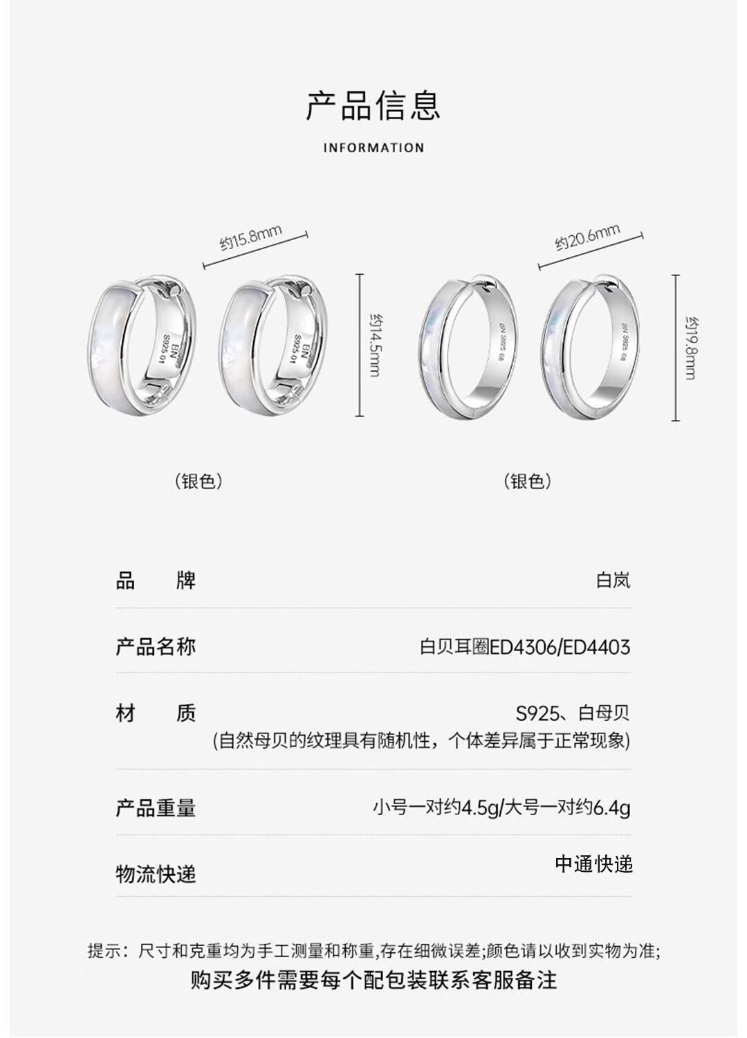 鎏光白岚白贝耳圈女爆款轻奢小众设计感时尚短款耳环耳饰 白贝母(小号-直径15.5mm)