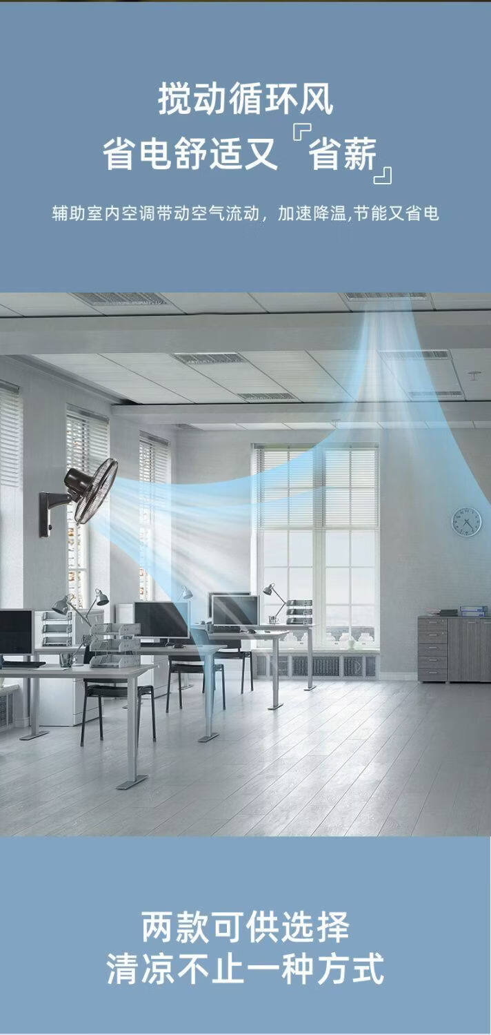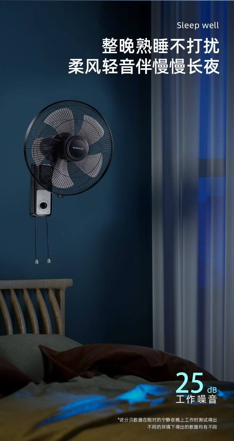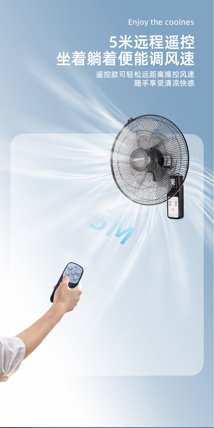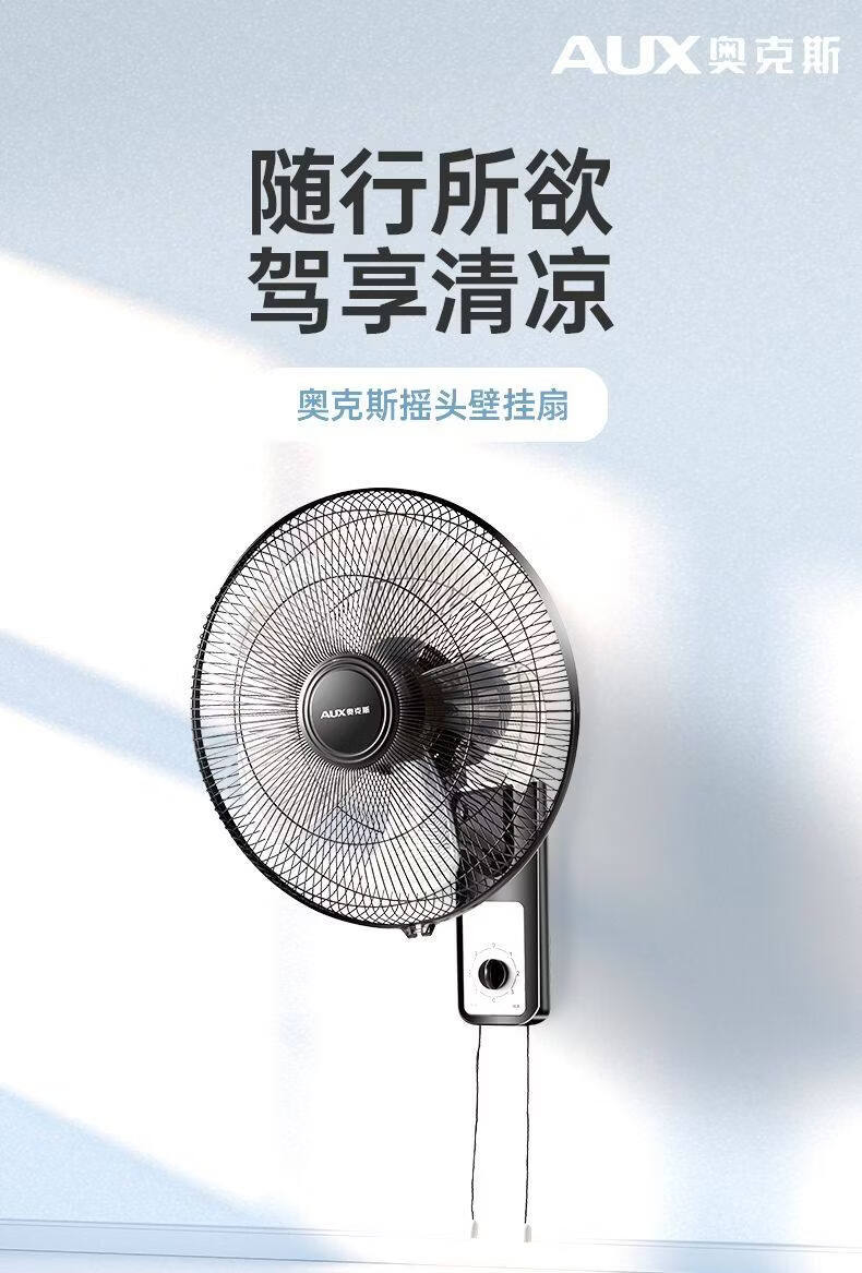 奥克斯(AUX)壁扇壁挂风扇挂壁式电风扇家用客厅墙壁摇头挂扇挂式工业电扇大风力宿舍餐厅学校 【铜芯电机】20英寸五叶遥控款/三档调节-2米线