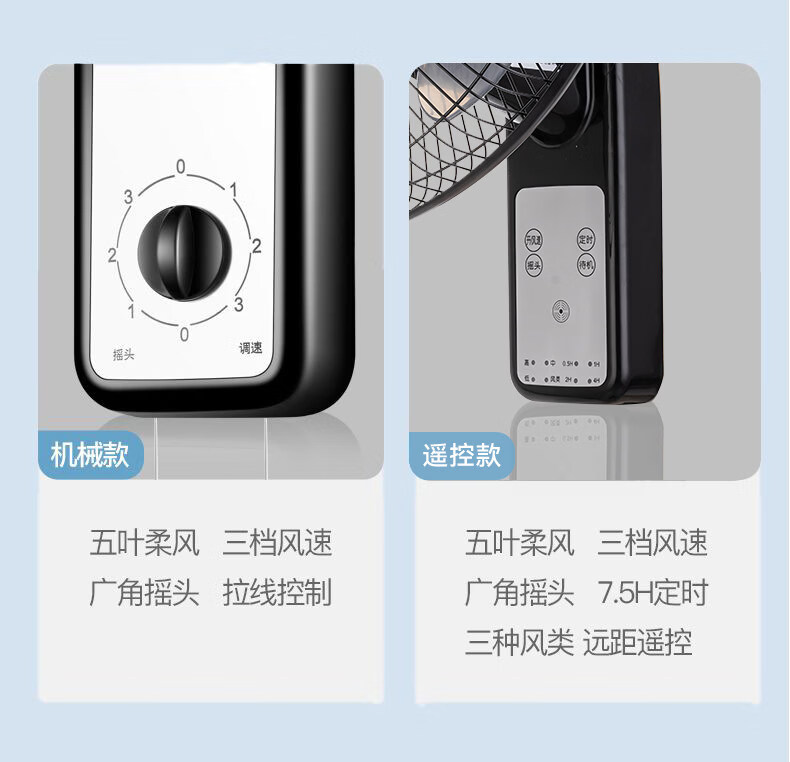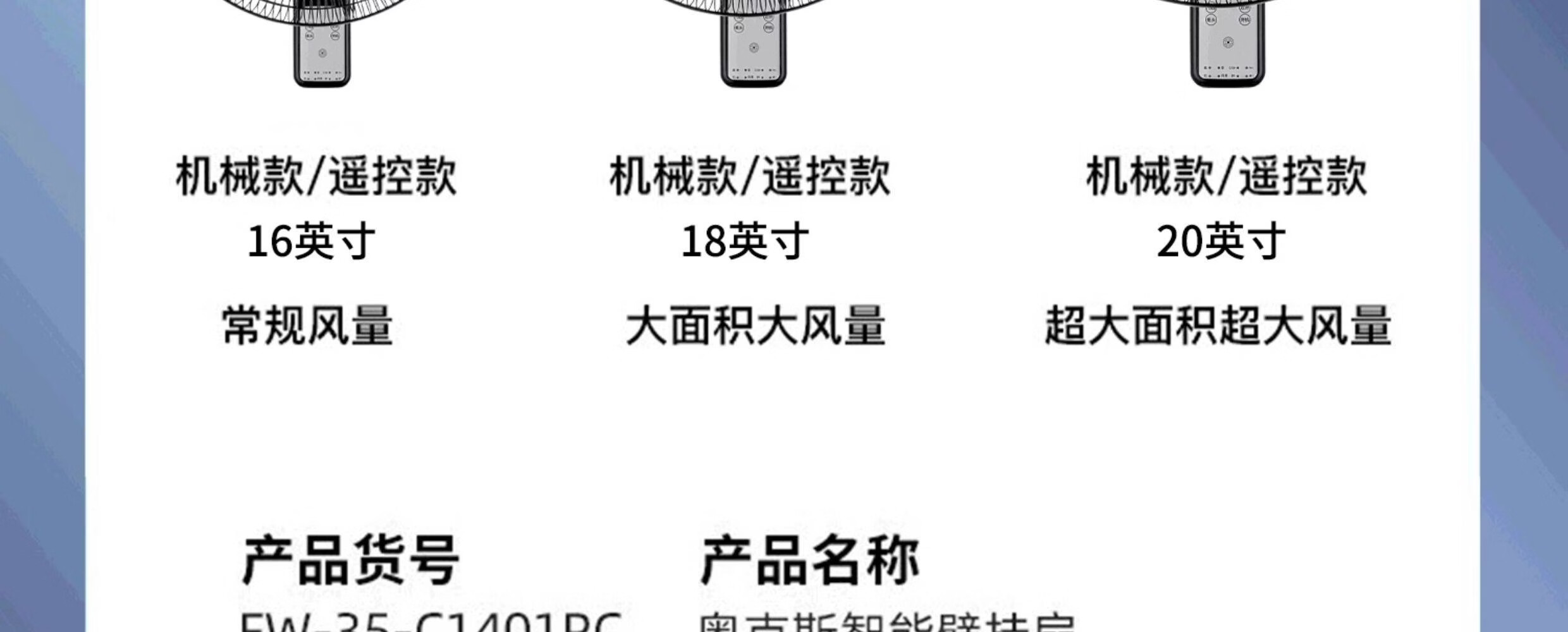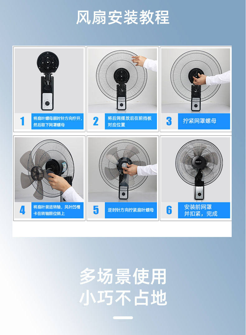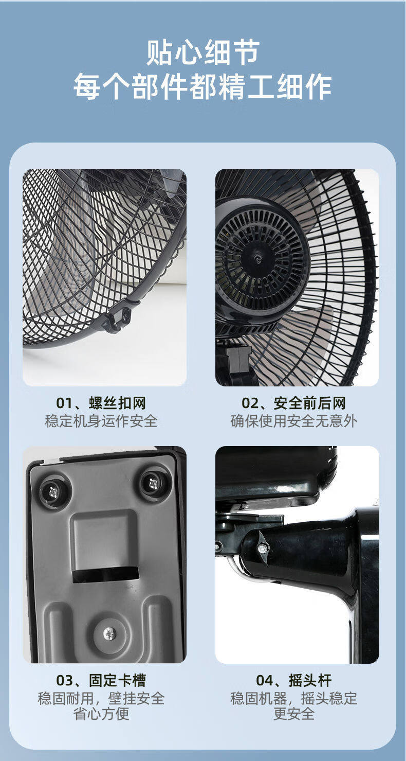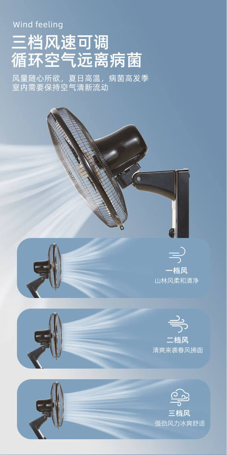 奥克斯(AUX)壁扇壁挂风扇挂壁式电风扇家用客厅墙壁摇头挂扇挂式工业电扇大风力宿舍餐厅学校 【铜芯电机】20英寸五叶遥控款/三档调节-2米线
