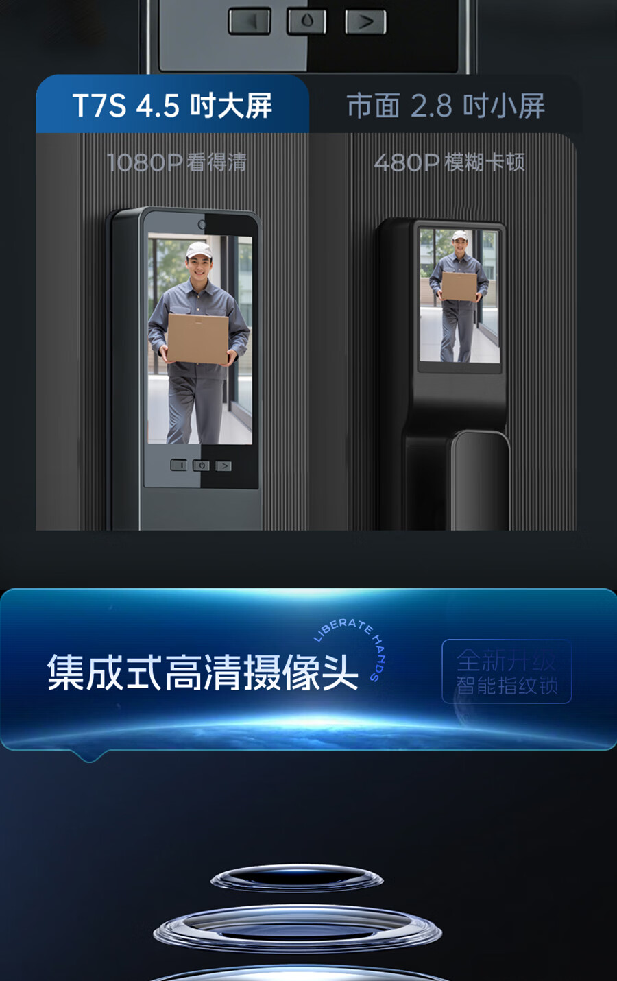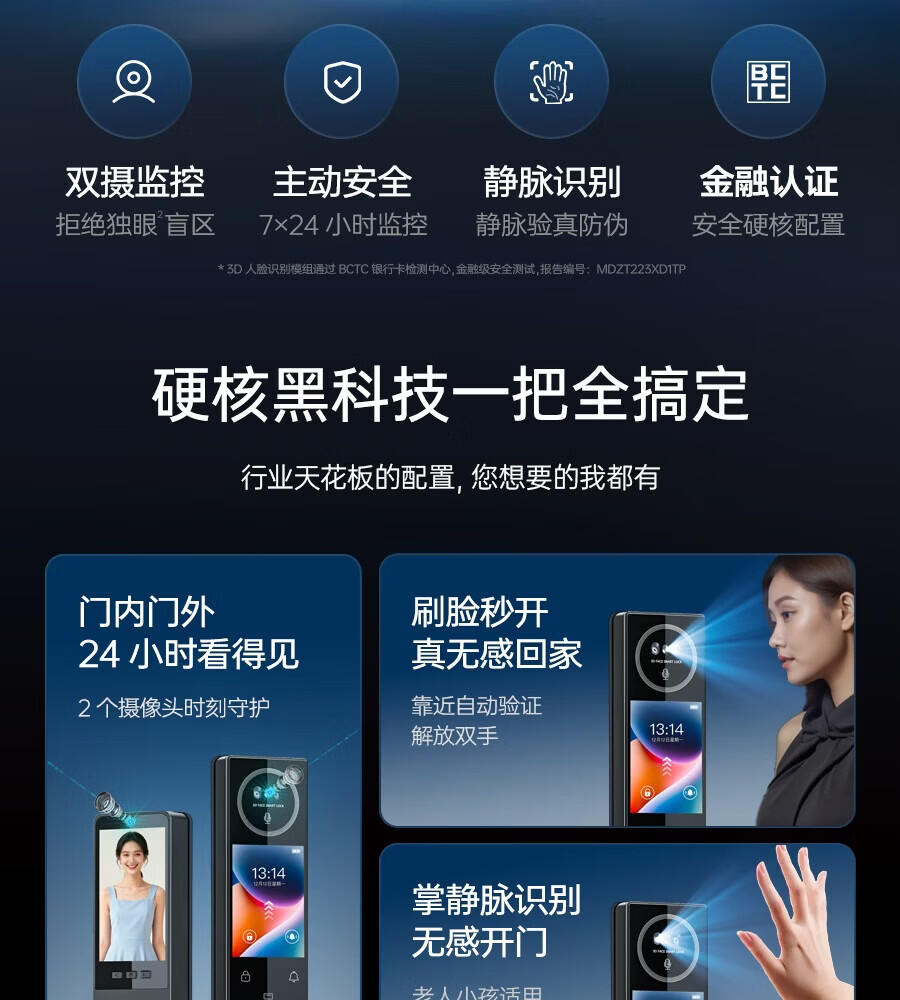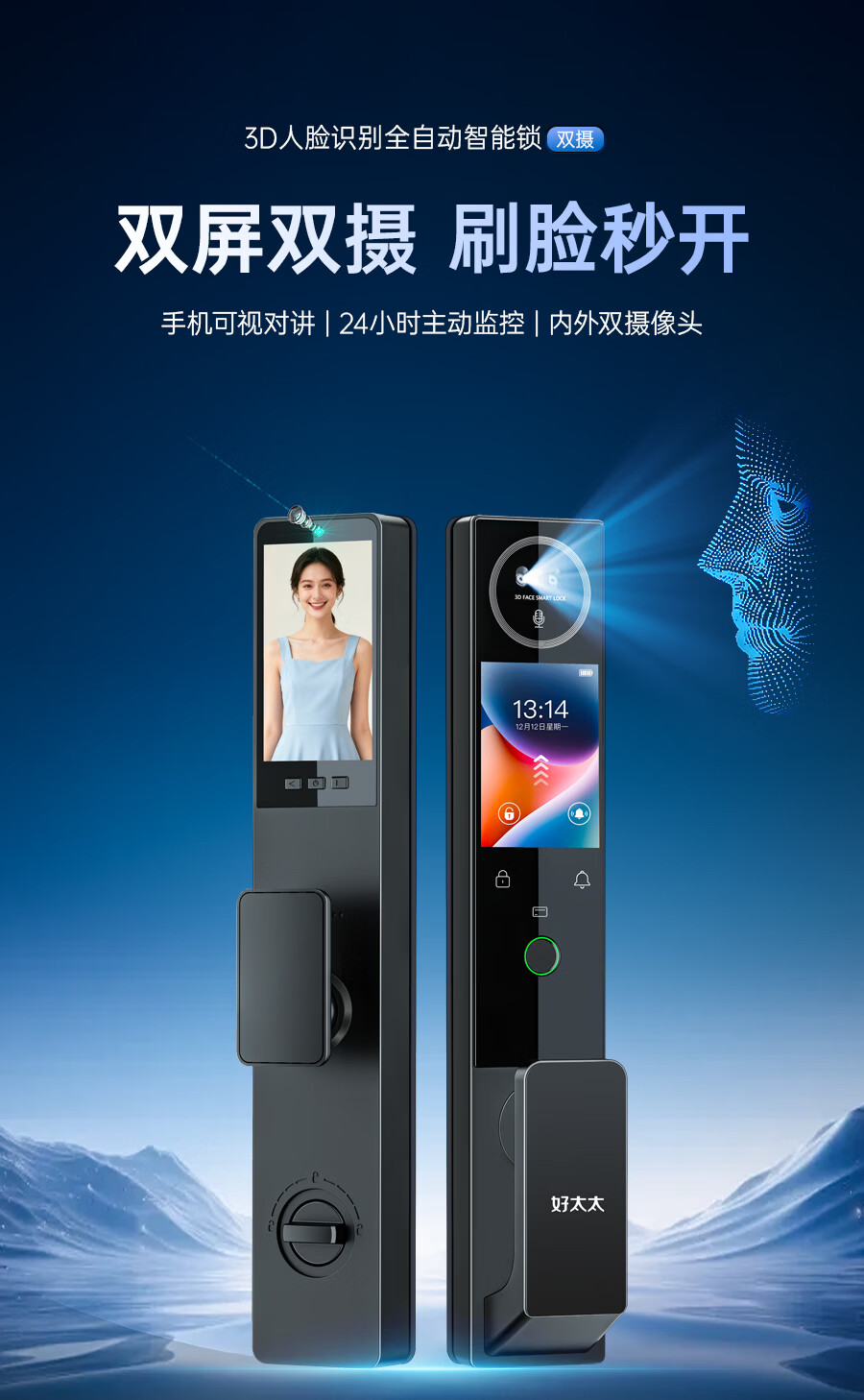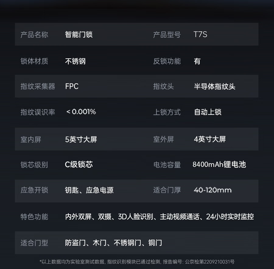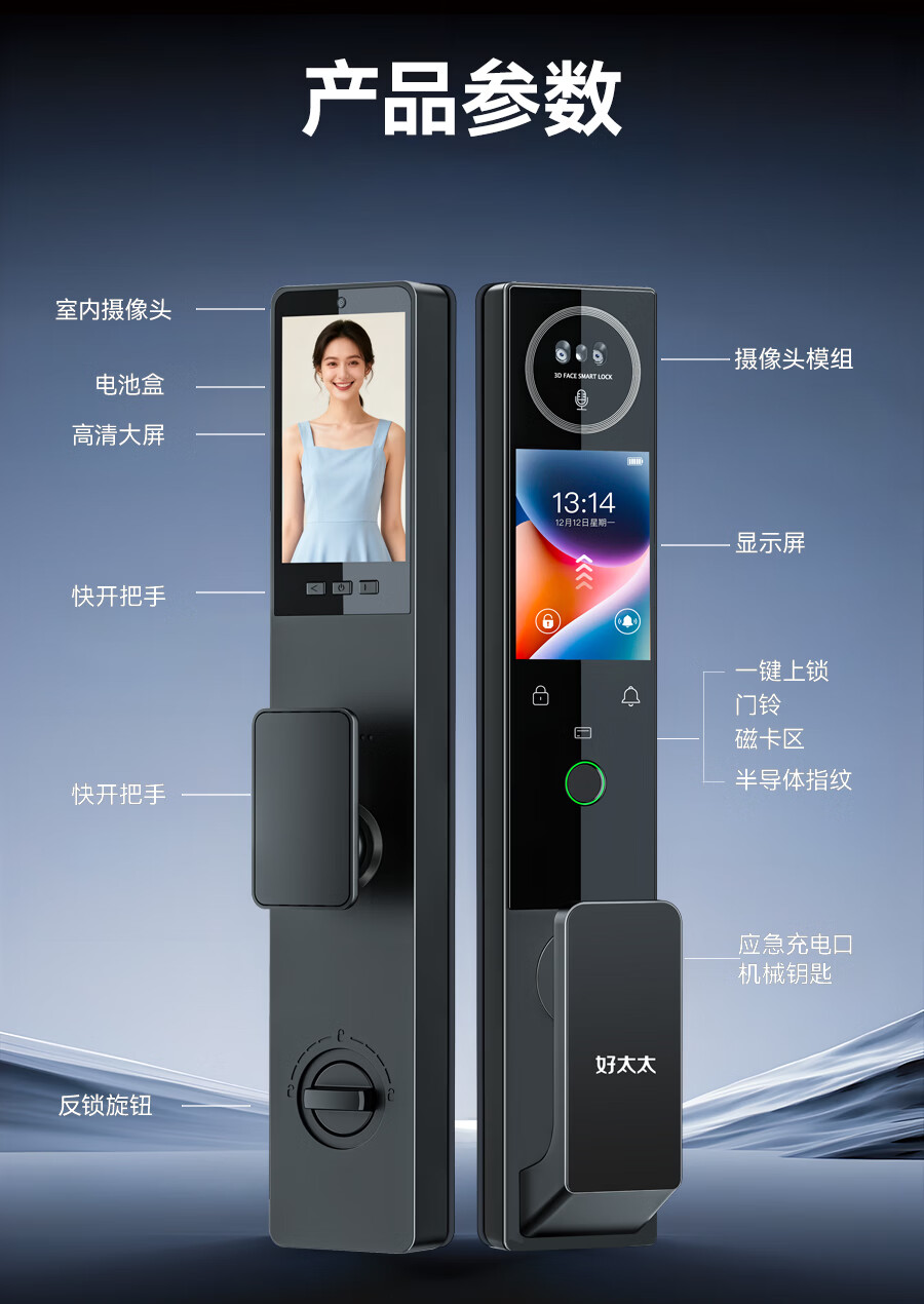 好太太本地仓发货 可延迟发货 智能门锁 双摄监控指纹锁 T7【室内外双屏+内外双摄+远程对讲+掌静脉解锁】