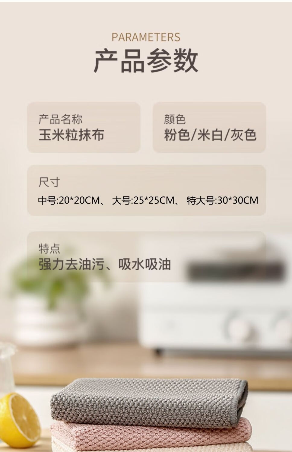 洁丽雅(Grace)玉米粒抹布*30*30cm*6条厨房去油去污洗碗布清洁巾