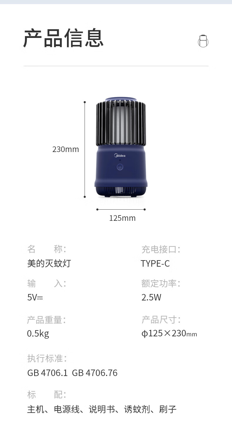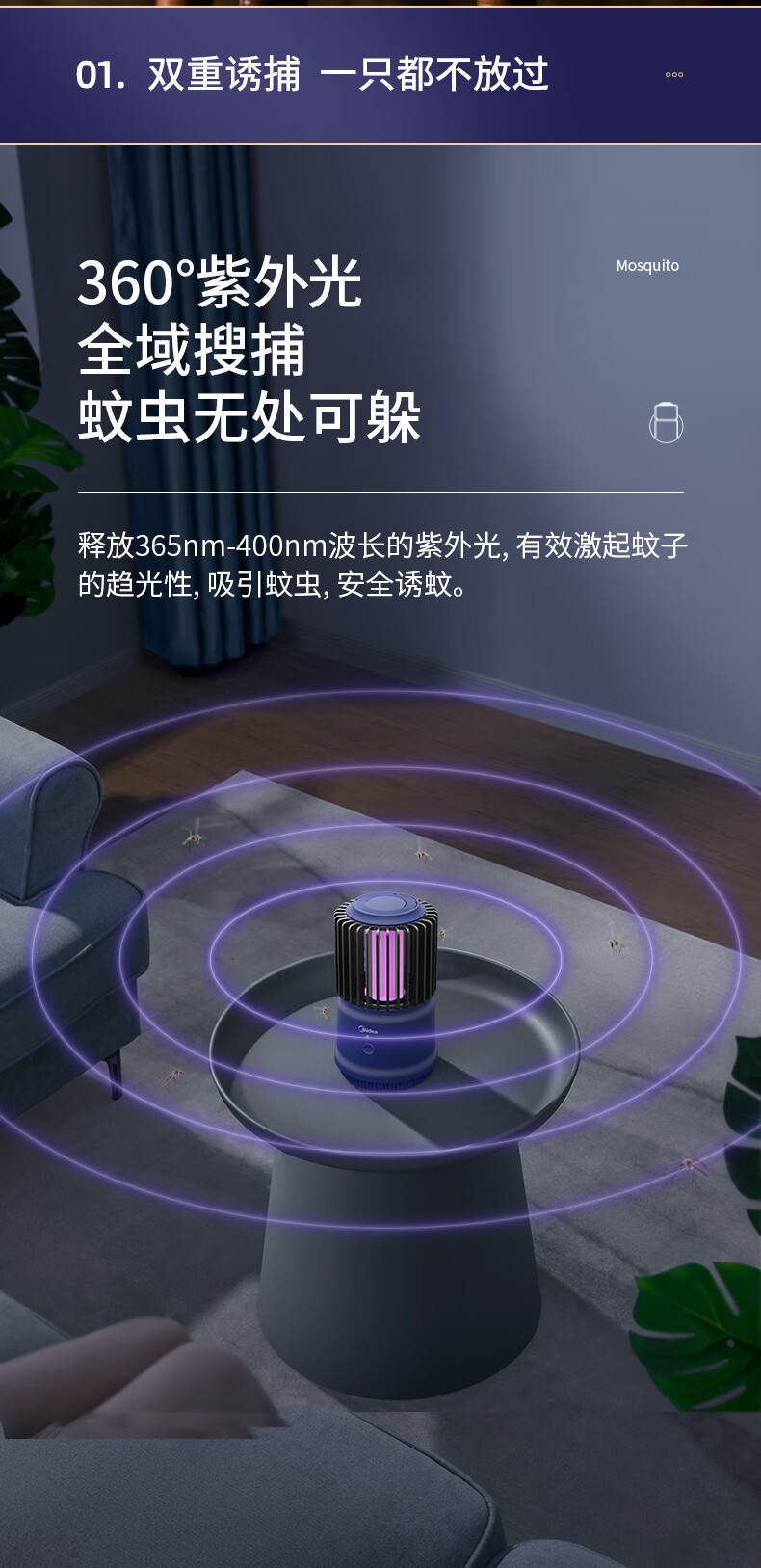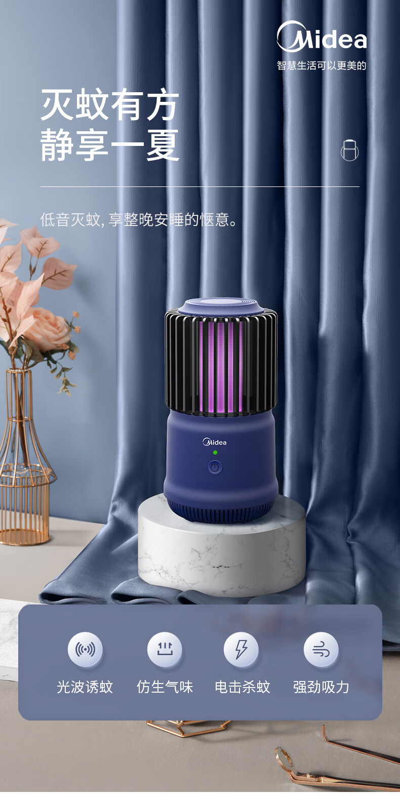 美的(Midea)插电式灭蚊灯家用灭蚊器驱蚊器物理紫光诱蚊客厅卧室基孔肯雅热