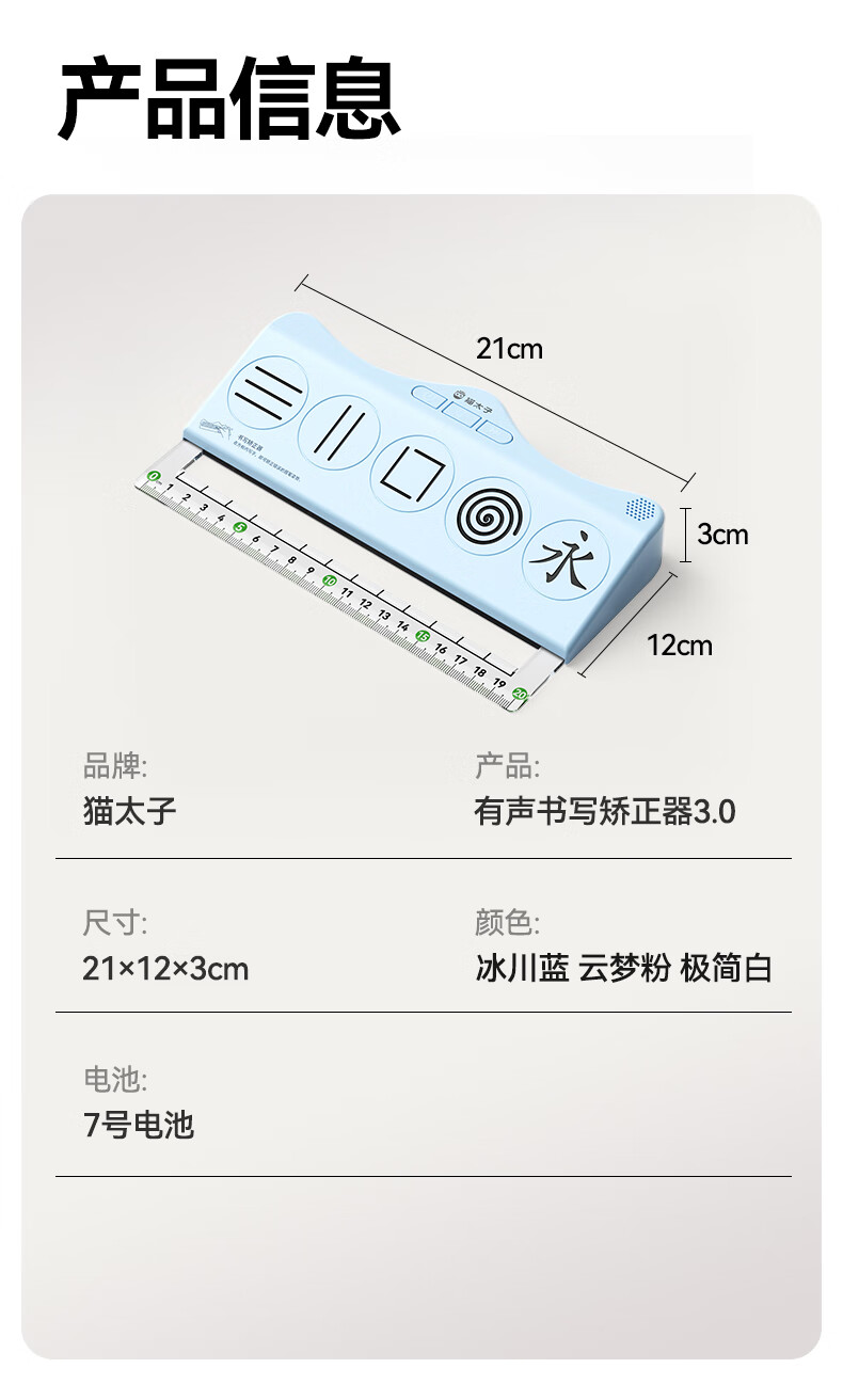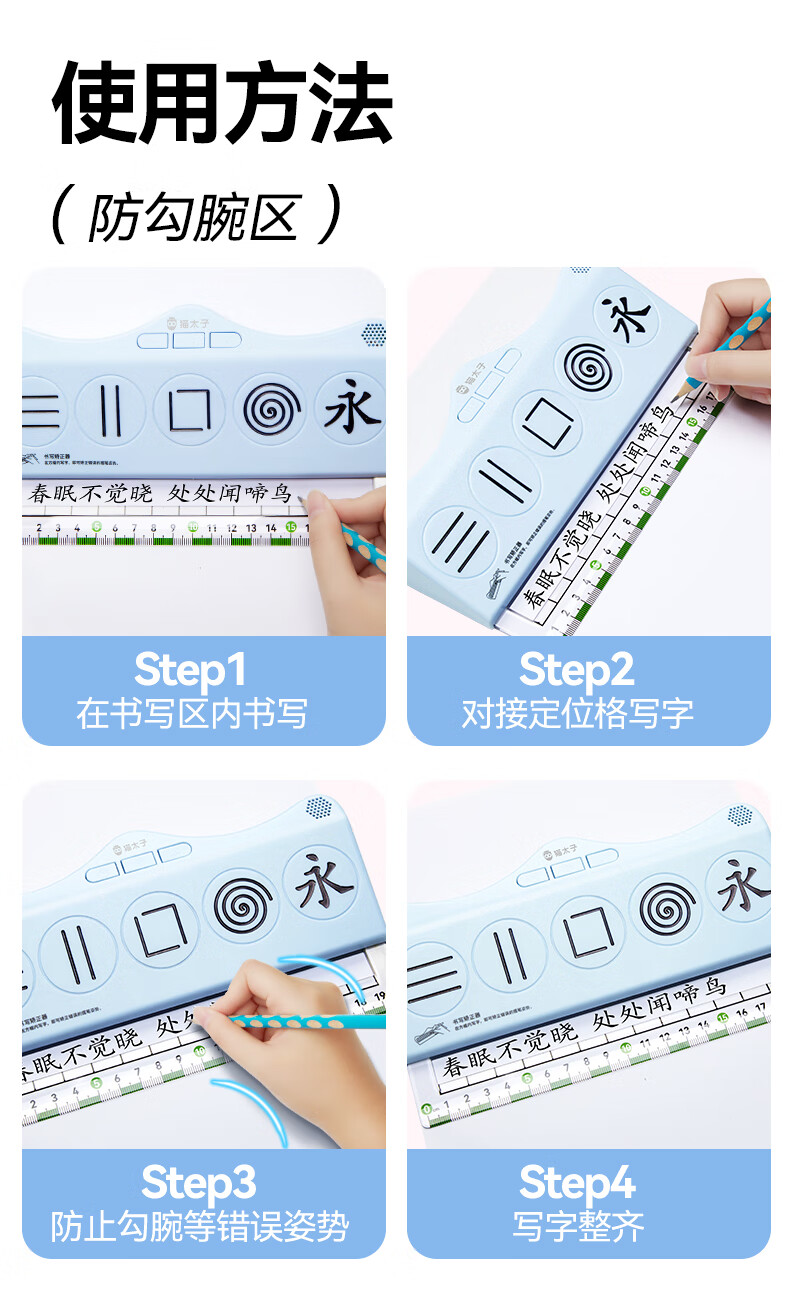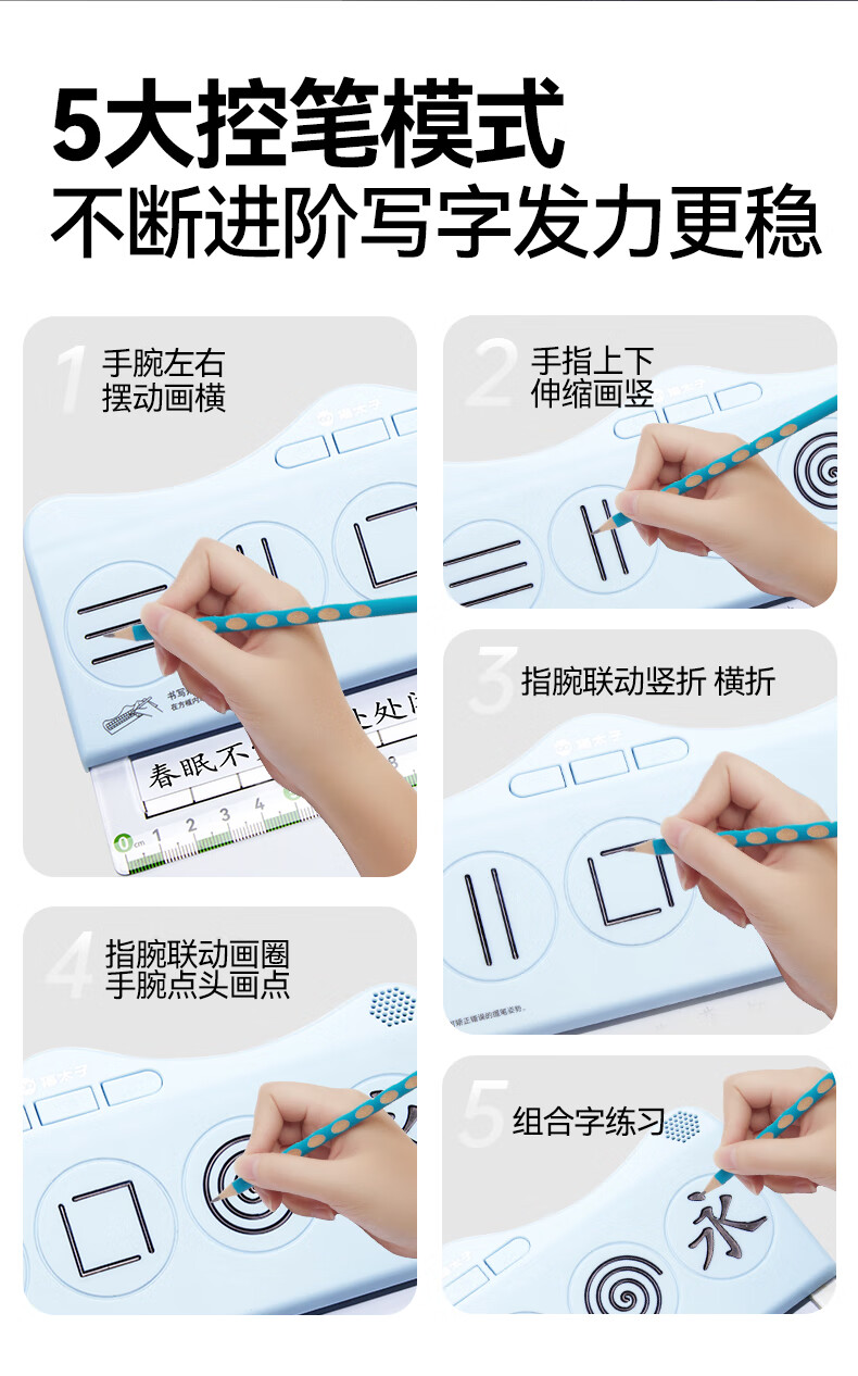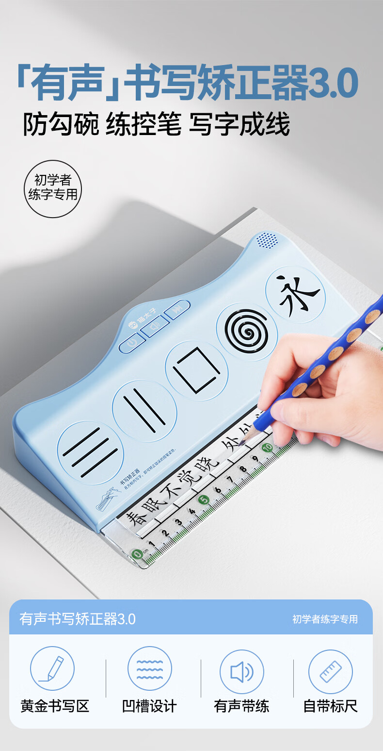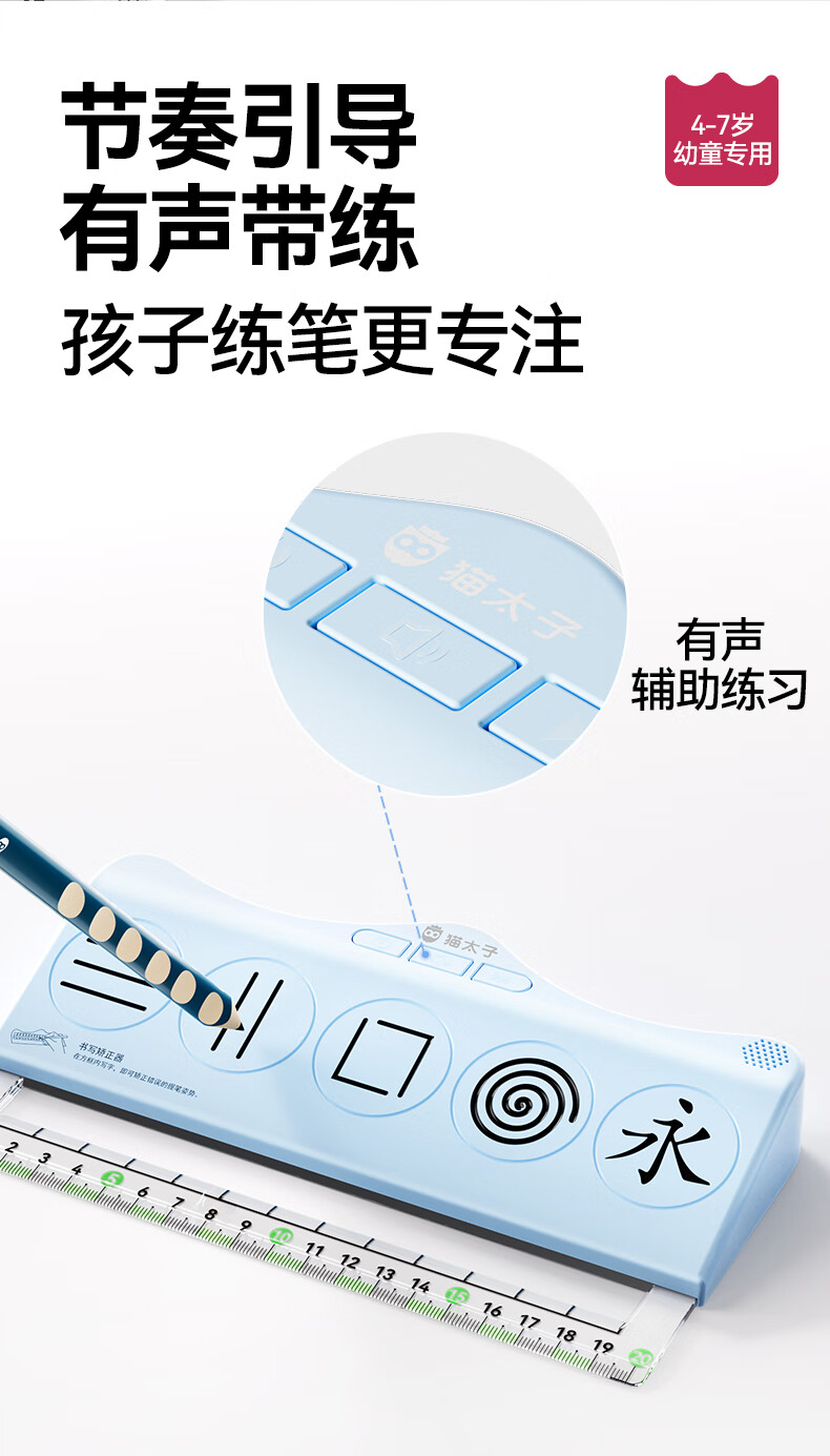 猫太子有声书写矫正器控笔发力纠姿训练神器带语音学生写字握笔练字纠正防勾腕写字手腕内勾专用儿童 蓝