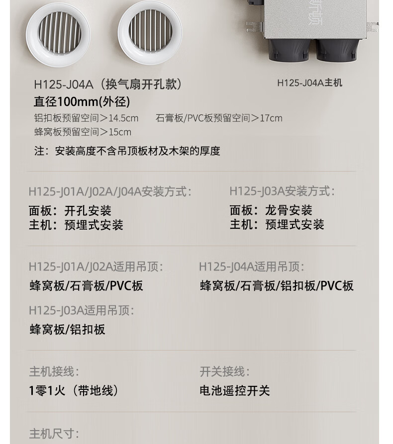 巴洛斯顿线性排风换气扇升级双换气口石膏蜂窝大板吊顶线型厨房浴室强排气 射灯型】H125-J04A丨双换气口丨开孔款