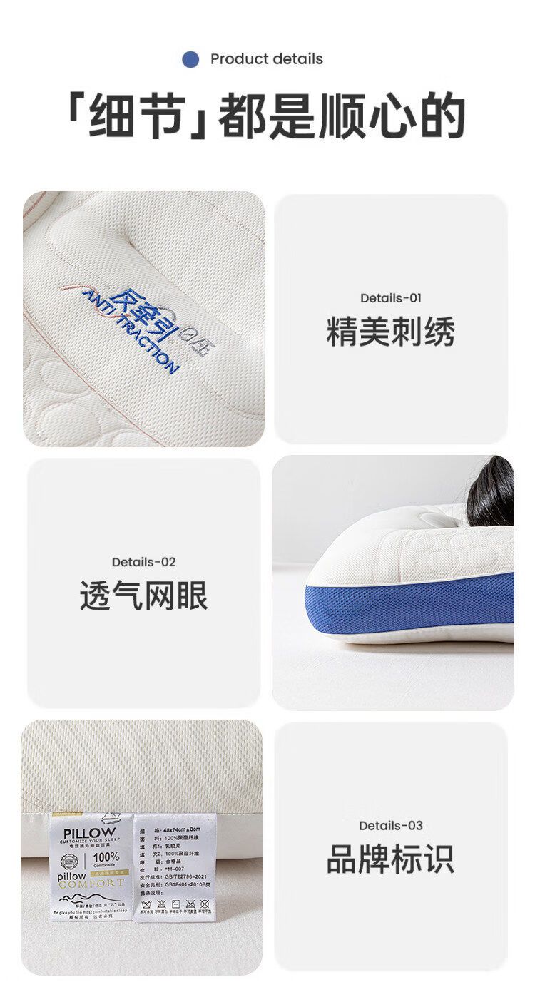 猫人(MiiOW)乳胶枕头护颈椎助睡眠专用枕芯成人记忆枕侧睡枕一对装整头男 零压深睡护颈【低枕单只装】48*74cm 无规格