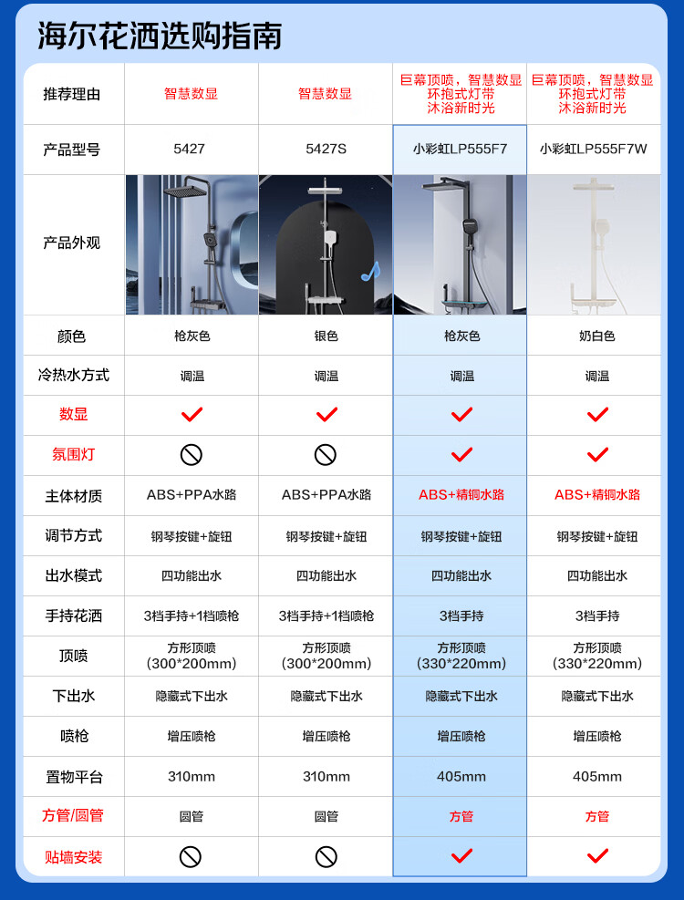 海尔(Haier)淋浴花洒套装钢琴按键智能数显大置物平台家用卫生间调温淋浴器 【精铜水路氛围灯】小彩虹枪灰 【免费安装】