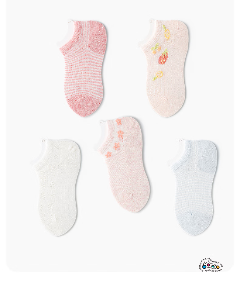 斑比童袜儿童船袜夏季薄款棉袜女中大童宝宝网眼透气短袜子 BB2337 儿童夏季网眼船袜 5双 6-8岁 建议脚码27-32码【18-20】