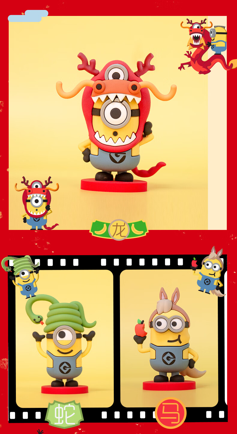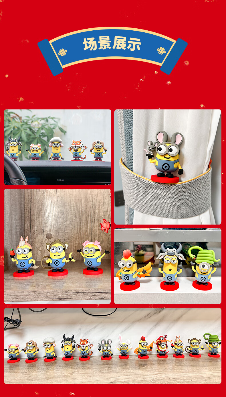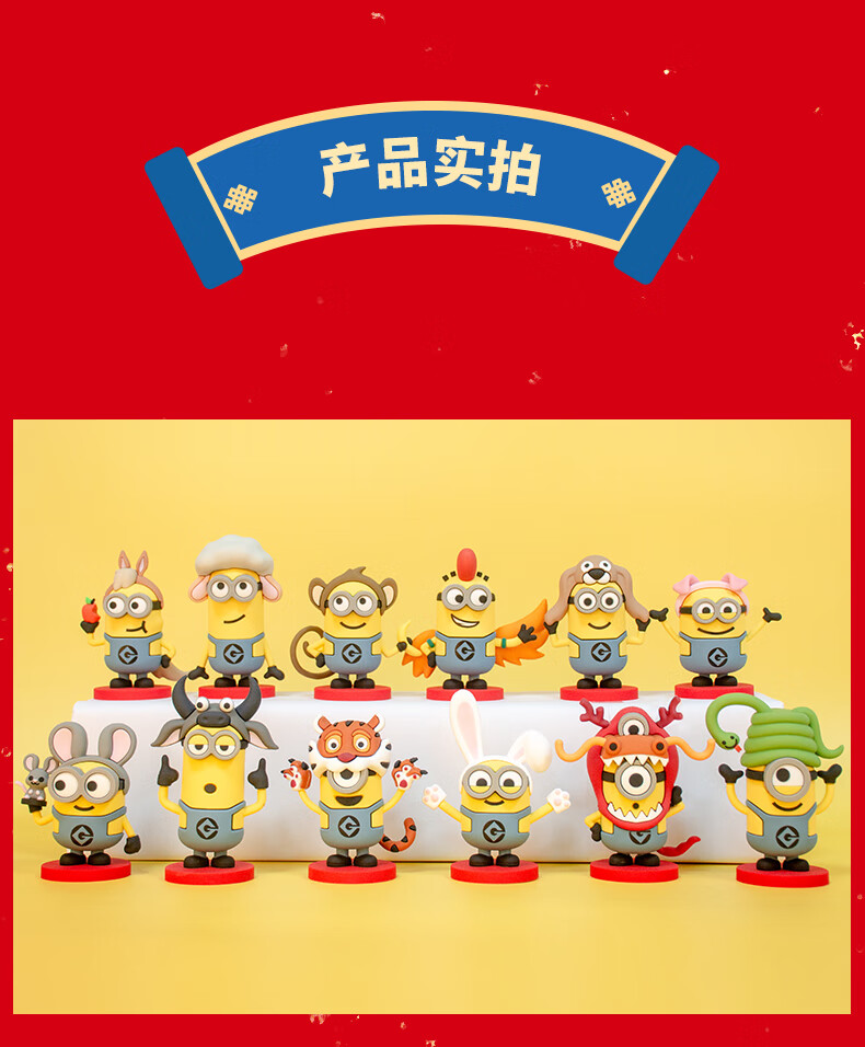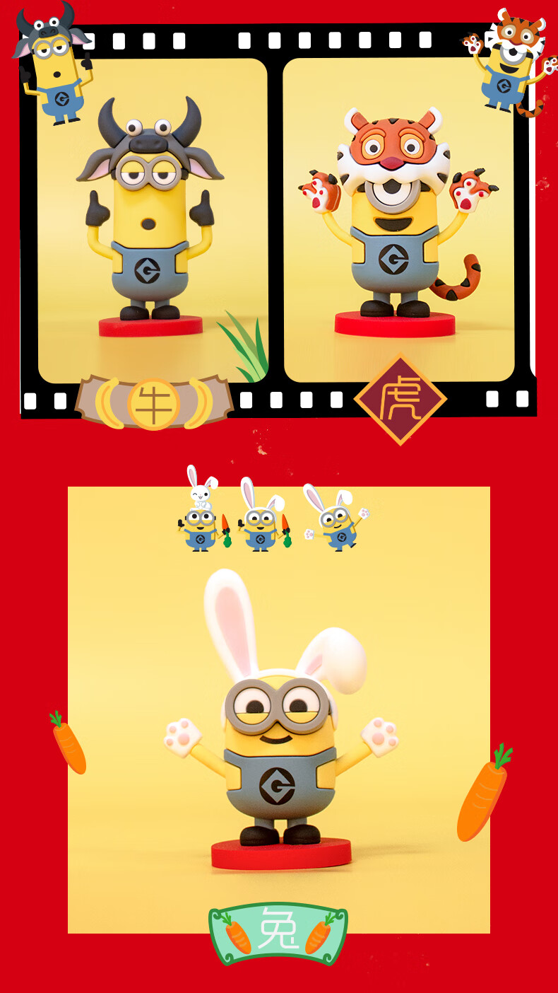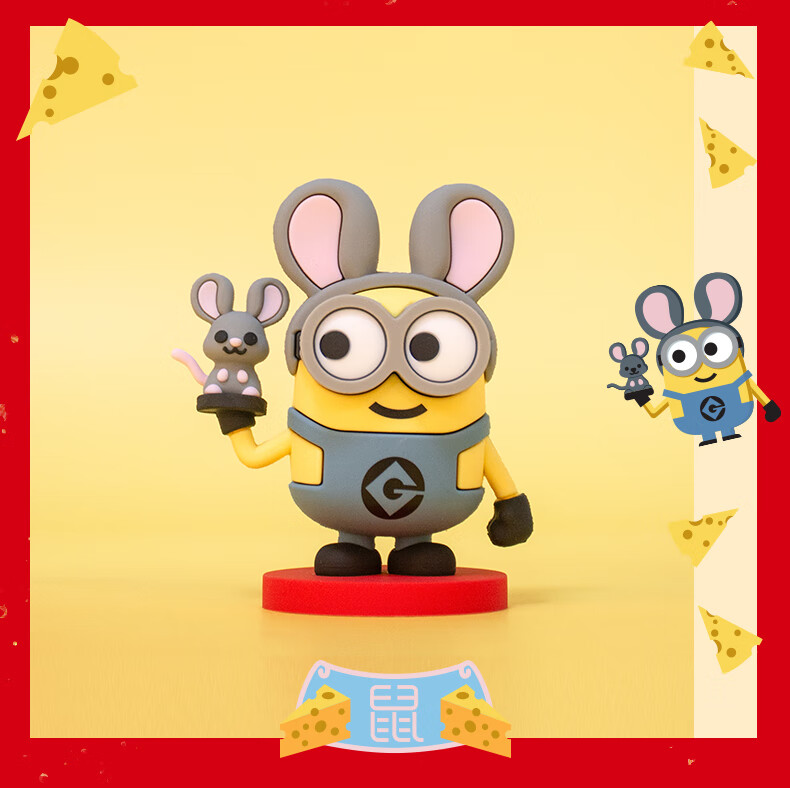 神偷奶爸小黄人十二生肖玩偶公仔动漫手办盲盒车载兔年摆件玩具 小黄人十二生肖-鼠