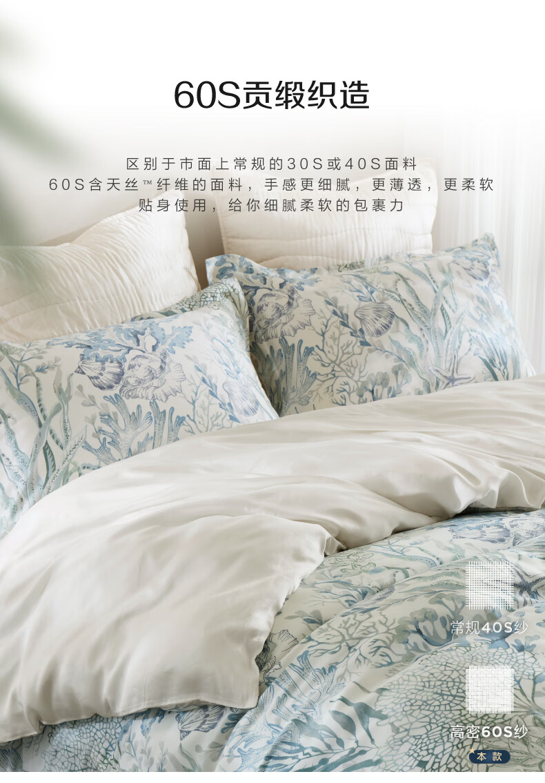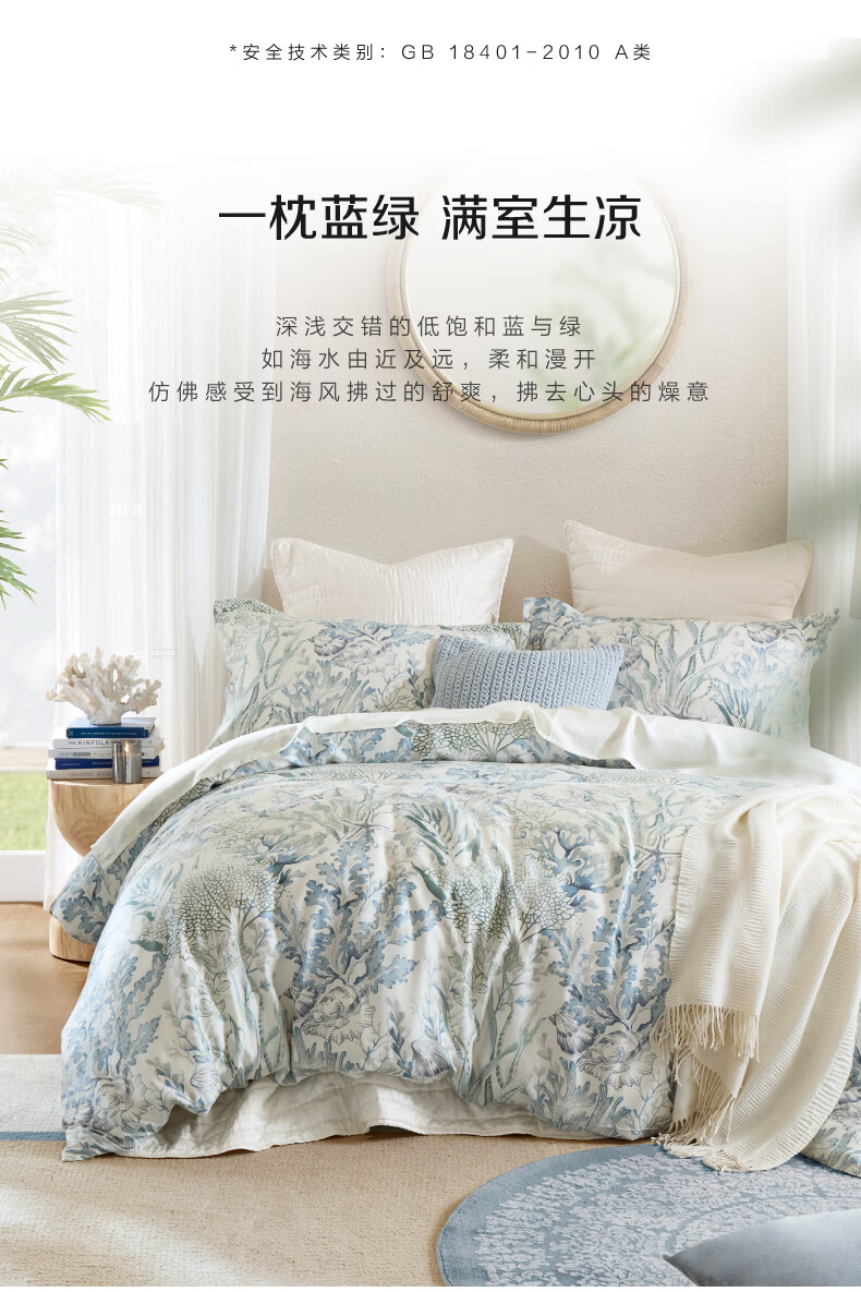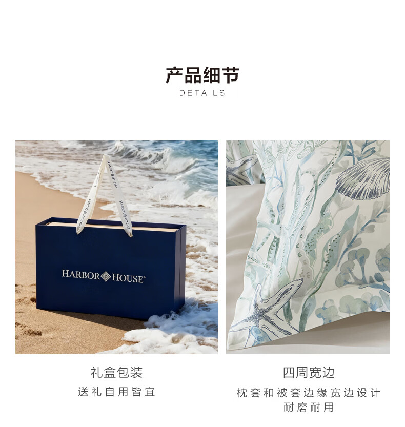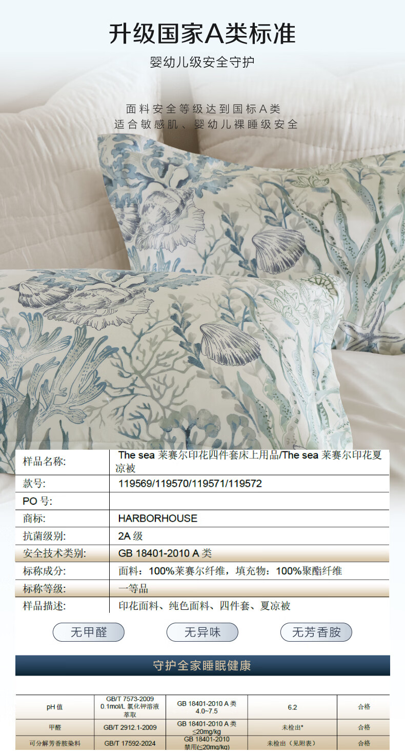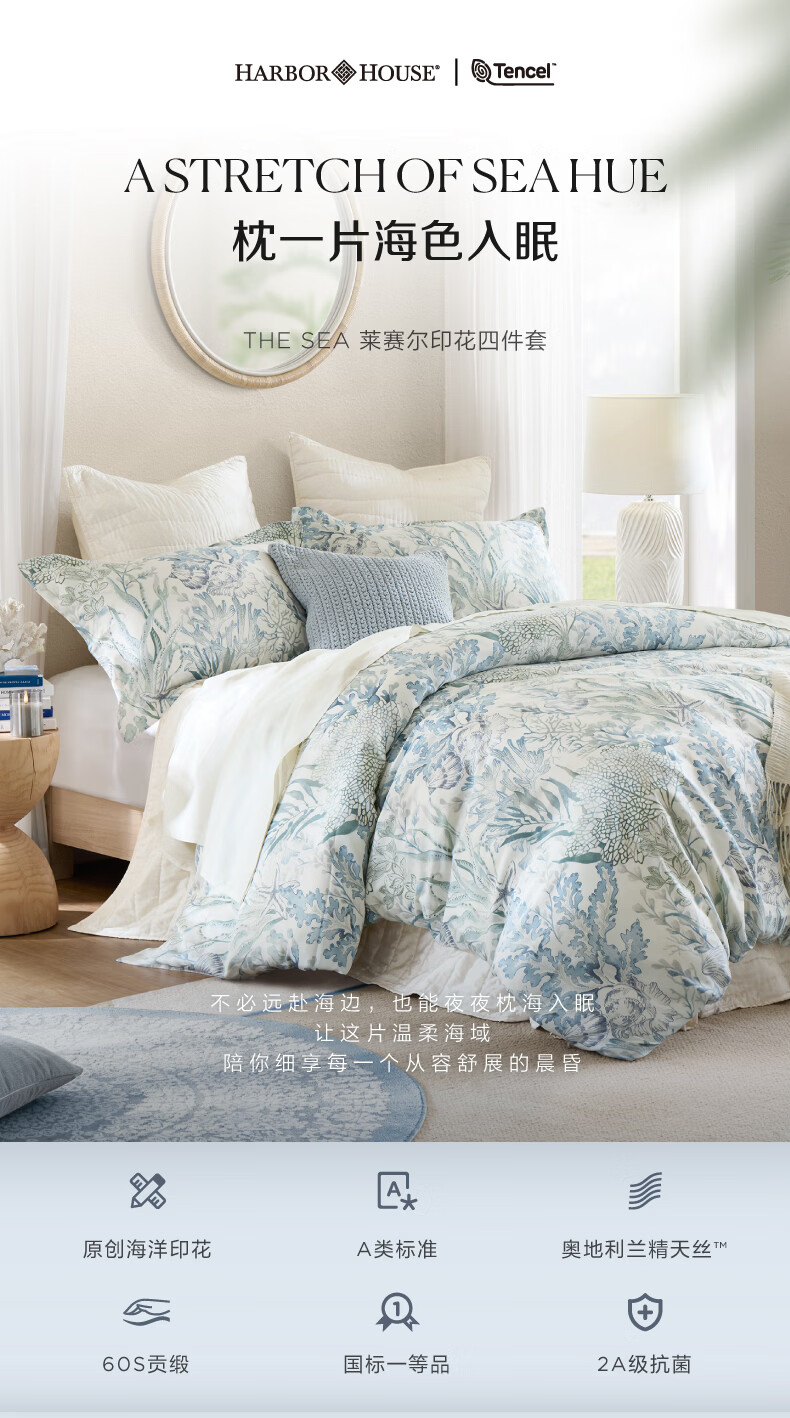Harbor House海洋风天丝贡缎四件套床上用品A类母婴面料床单被套枕套亲肤透气 The sea 天丝四件套床上用品 60支 升级A类面料 1.8m床 床单款 (被套220*240cm)