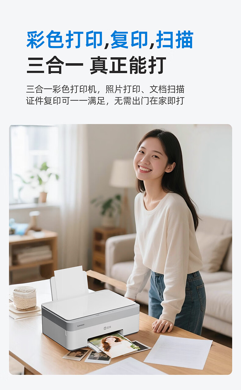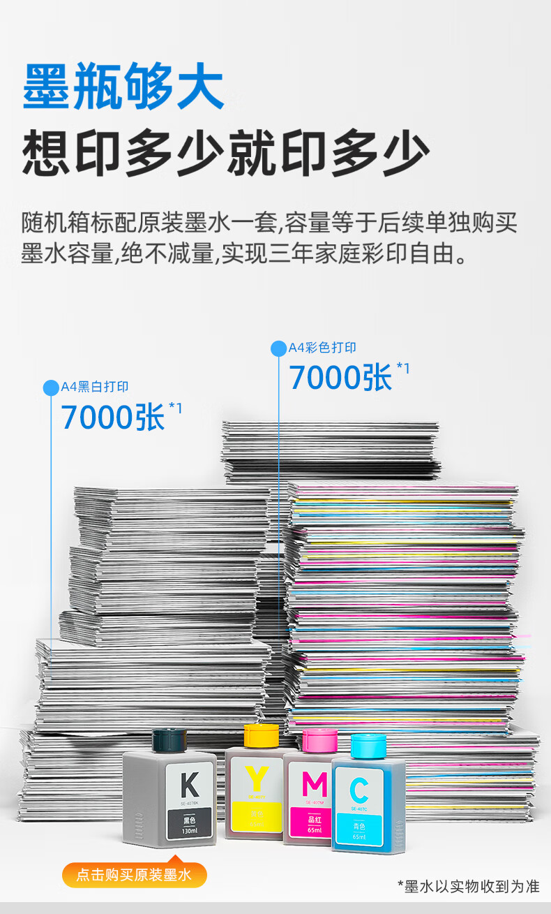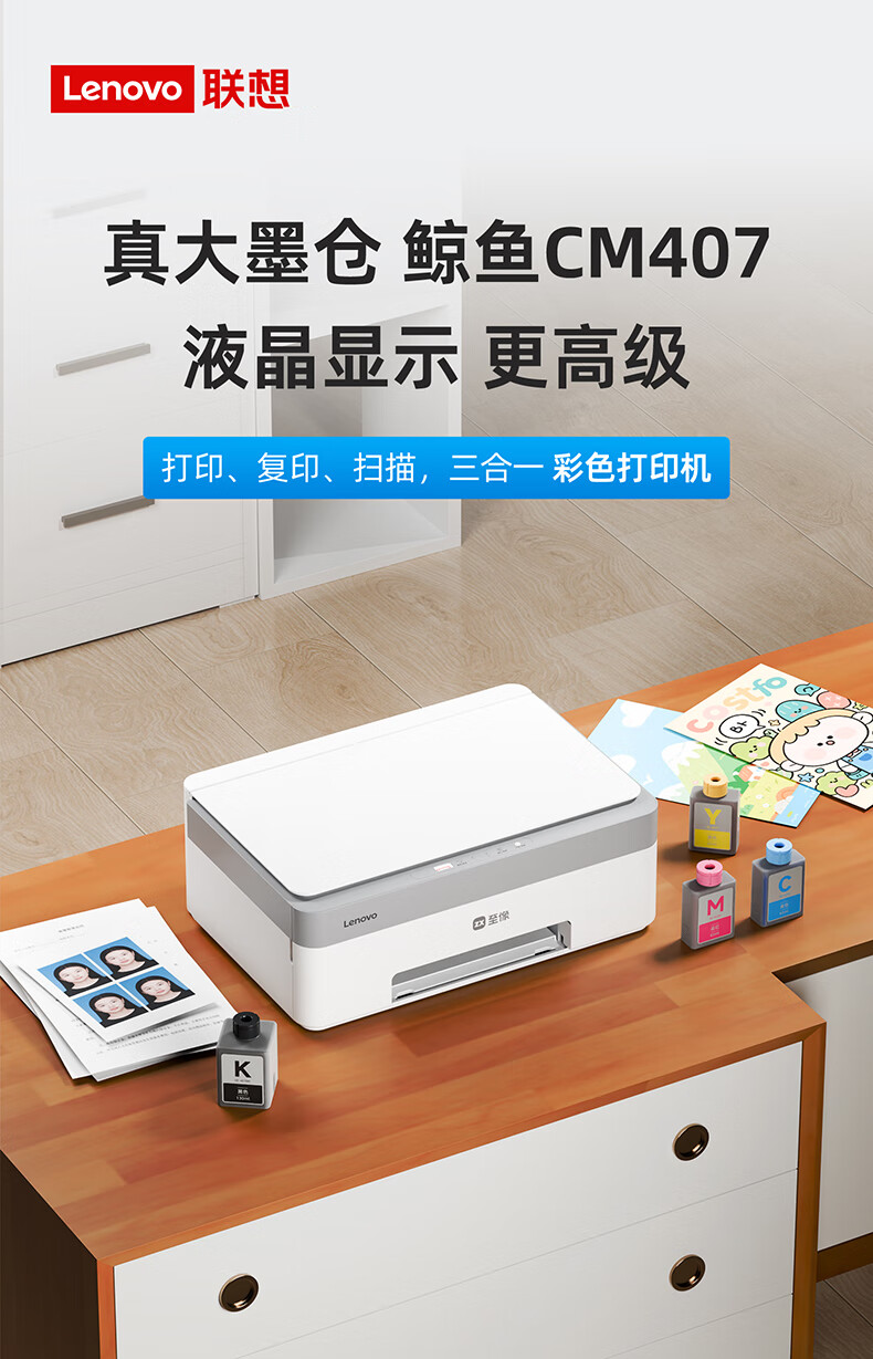 联想(Lenovo)小新鲸鱼CM407家用打印机 彩色喷墨复印扫描机一体机 学生打卷子作业 墨仓式打印机