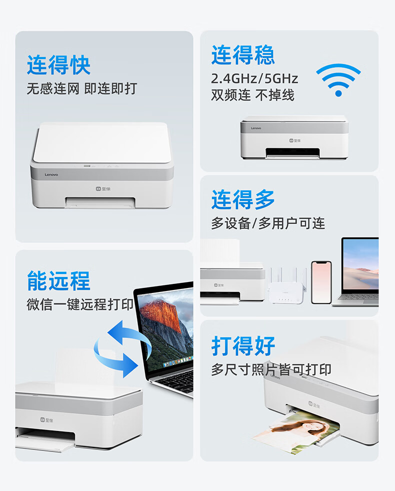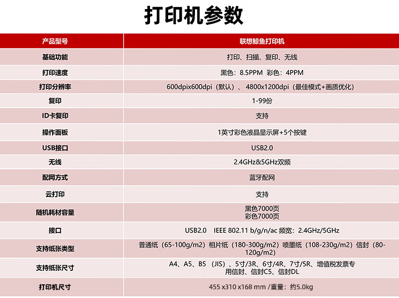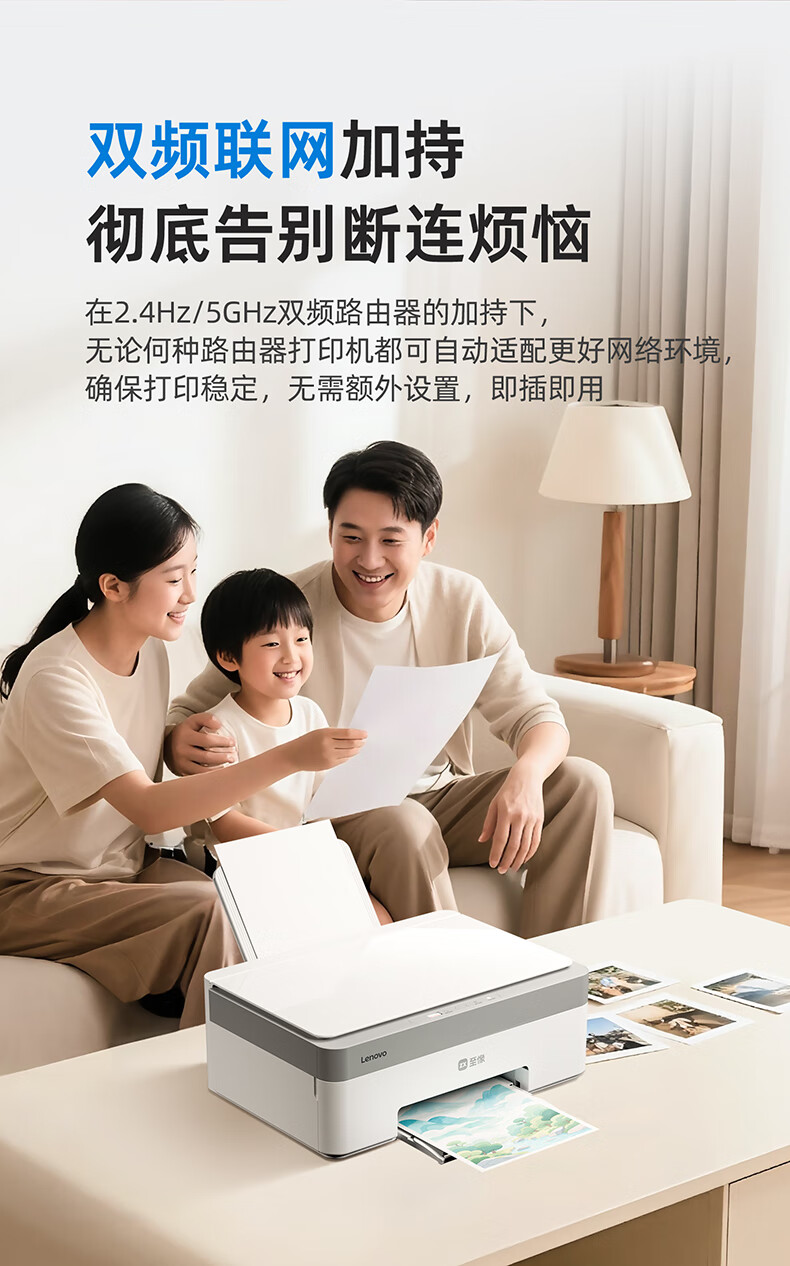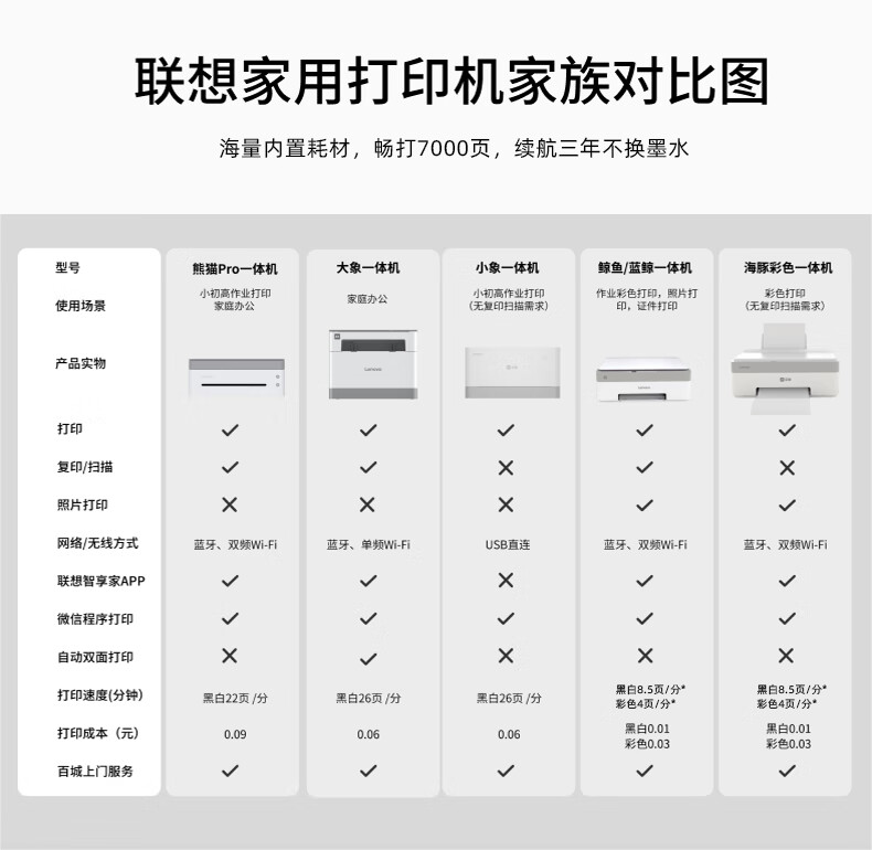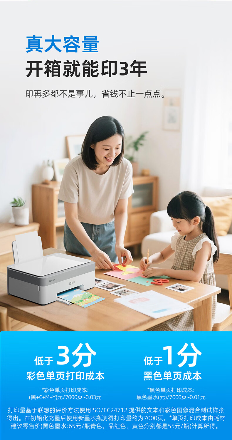联想(Lenovo)小新鲸鱼CM407家用打印机 彩色喷墨复印扫描机一体机 学生打卷子作业 墨仓式打印机