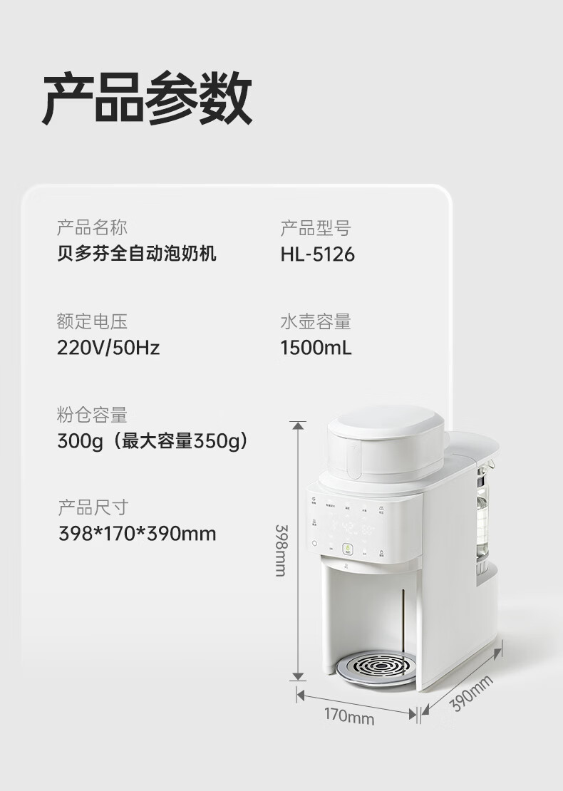 小白熊全自动泡奶机 全玻璃壶精准出粉定量定温智能一体机调奶器5126