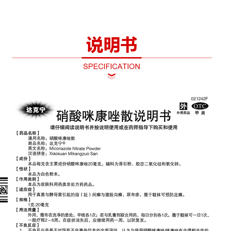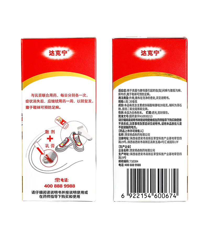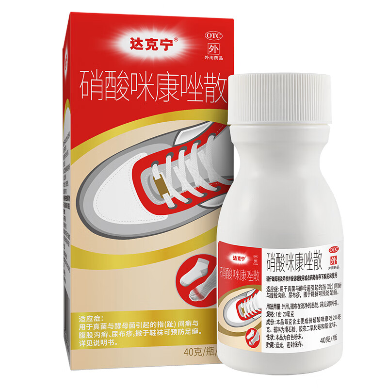 【原研药】达克宁硝酸咪康唑散粉40g脚气药止痒脱皮烂脚丫真菌感染自营脚出汗脚臭专用药米糠挫足癣乳膏泡脚