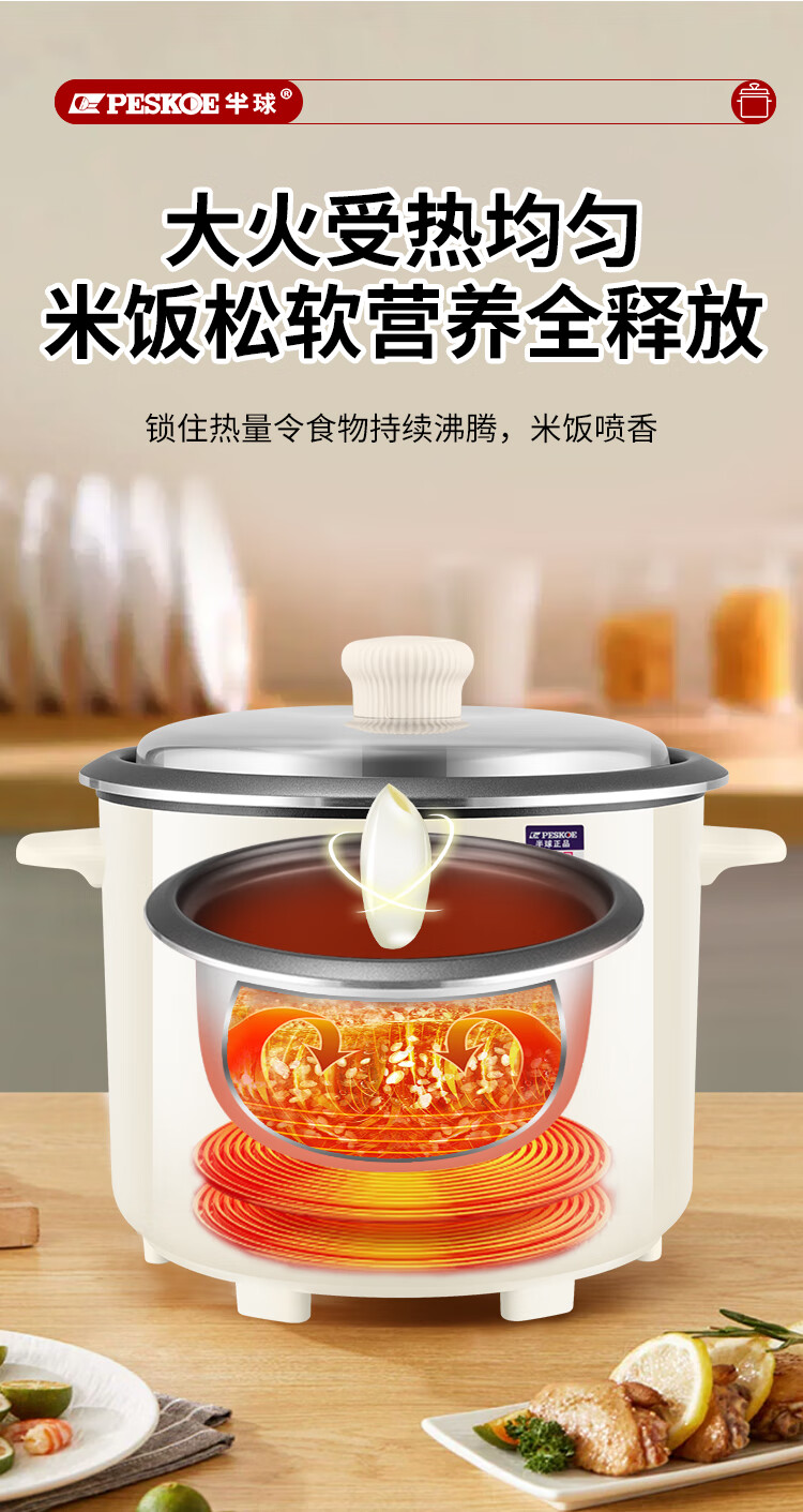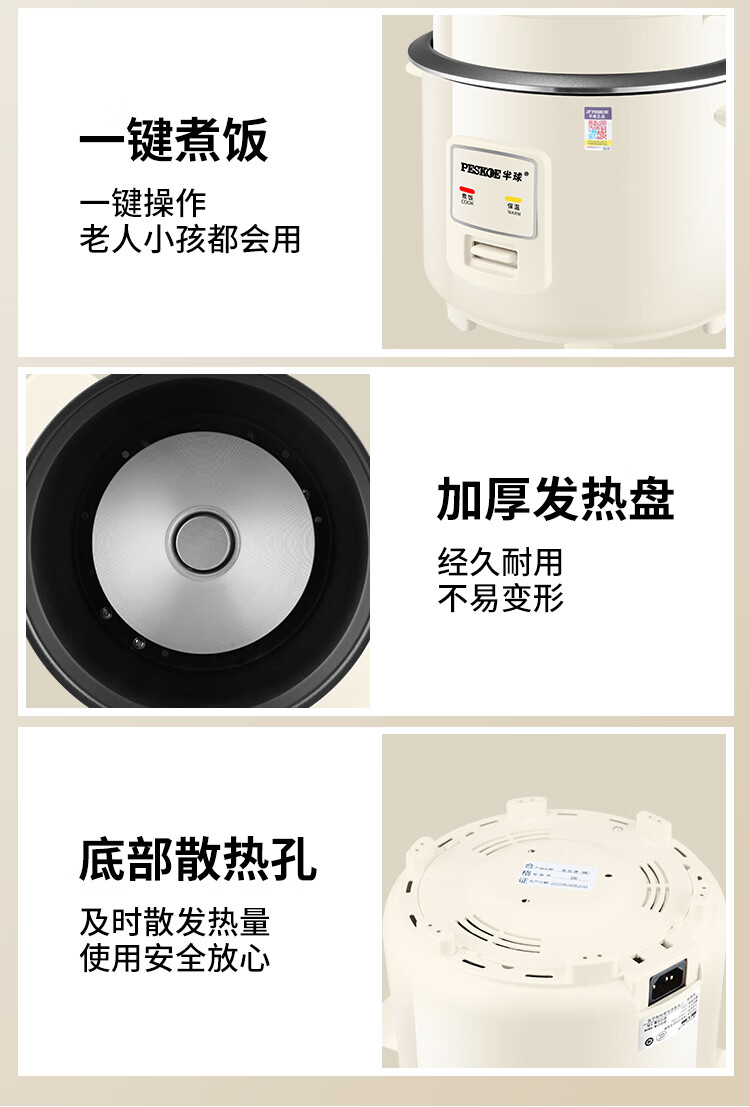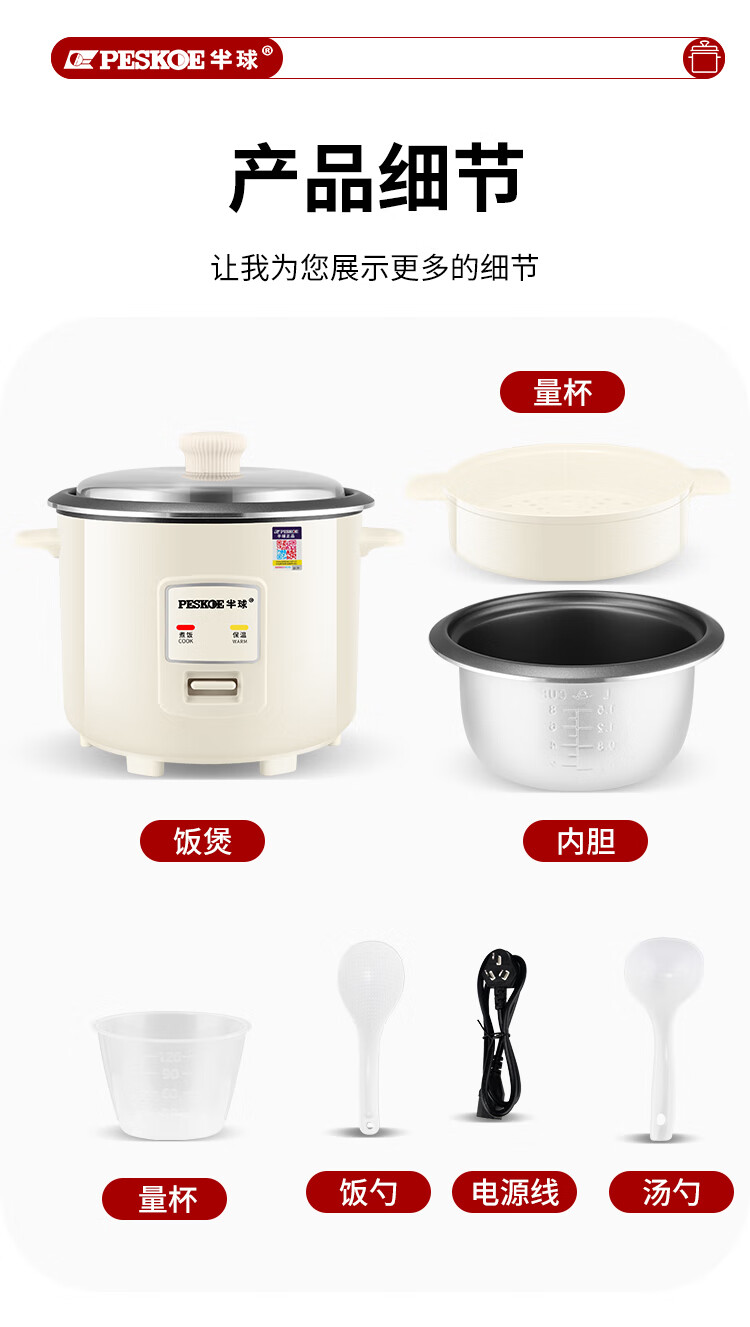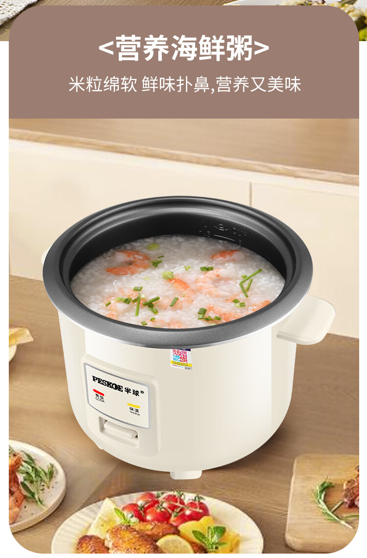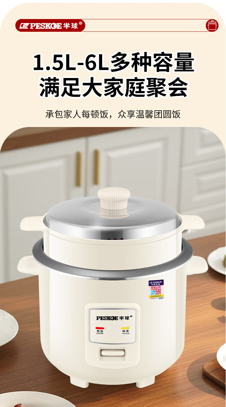 半球(PESKOE)老式电饭锅家用小型迷你学生宿舍多功能3-4人单人电饭煲1-2人不粘锅蒸煮一体5-6人大容量 2L 不粘内胆2-3人用(带蒸笼)