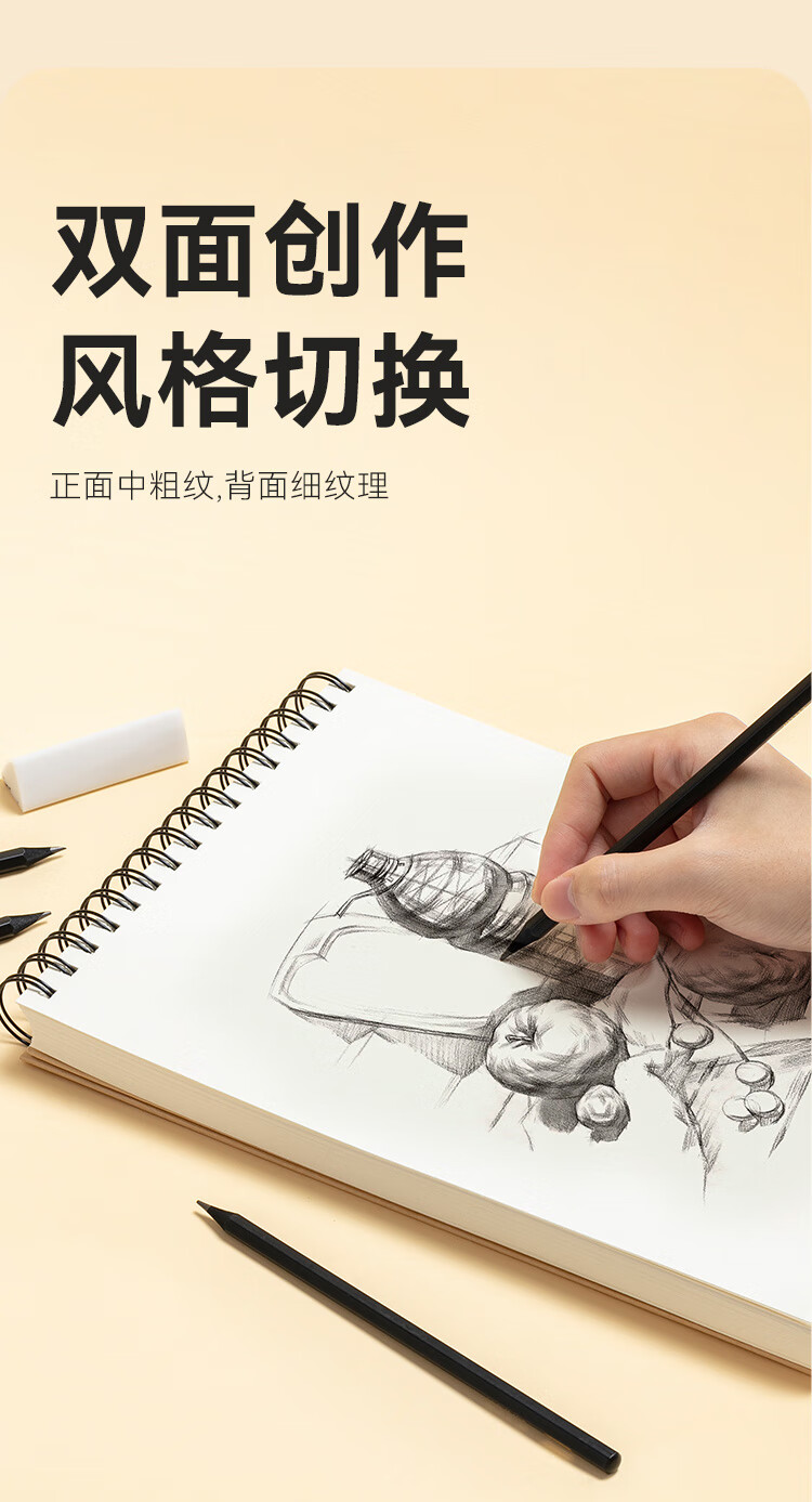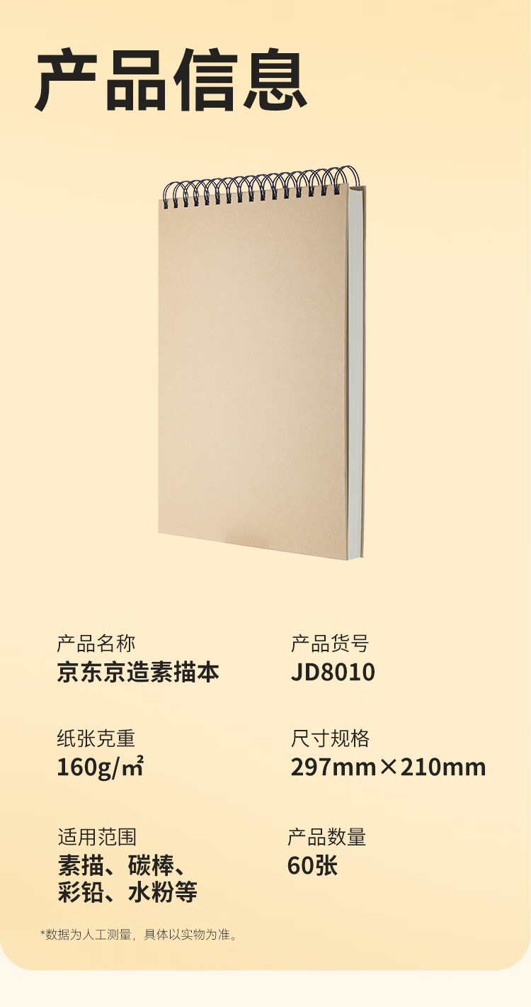 京东京造【热门商品】A4/60张 160g素描本专业美术速写本素描纸双线圈竖翻绘画初学入门