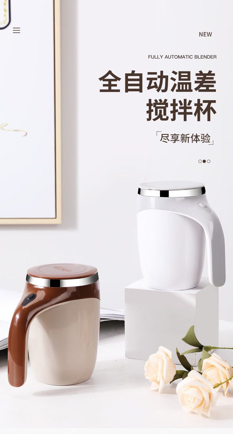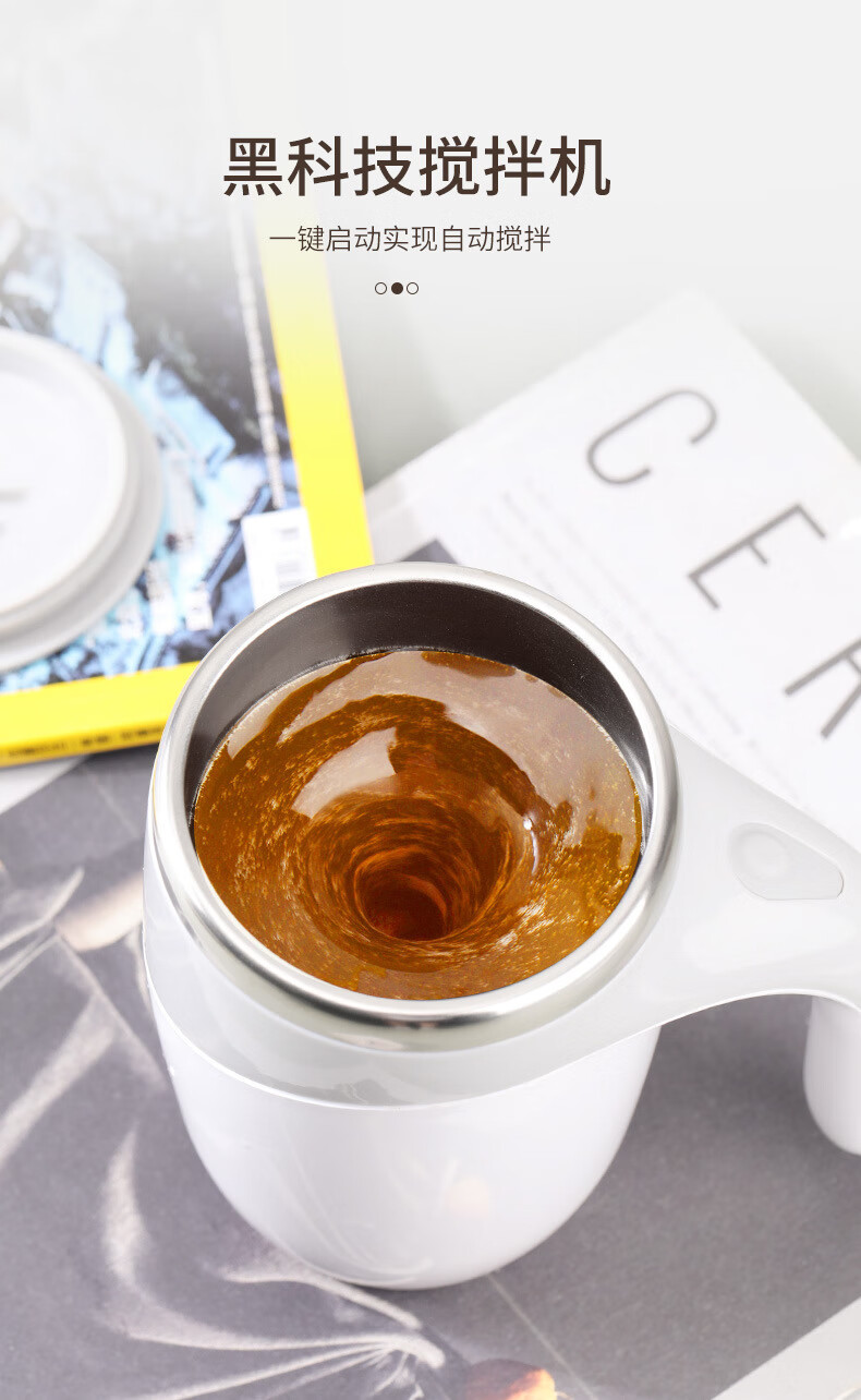 【专享】充电款电动搅拌杯懒人咖啡杯全自动不锈钢旋转磁力水杯 咖啡色380ml