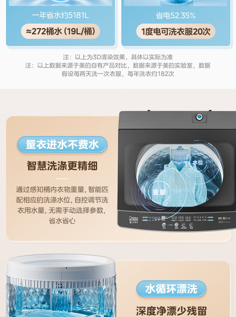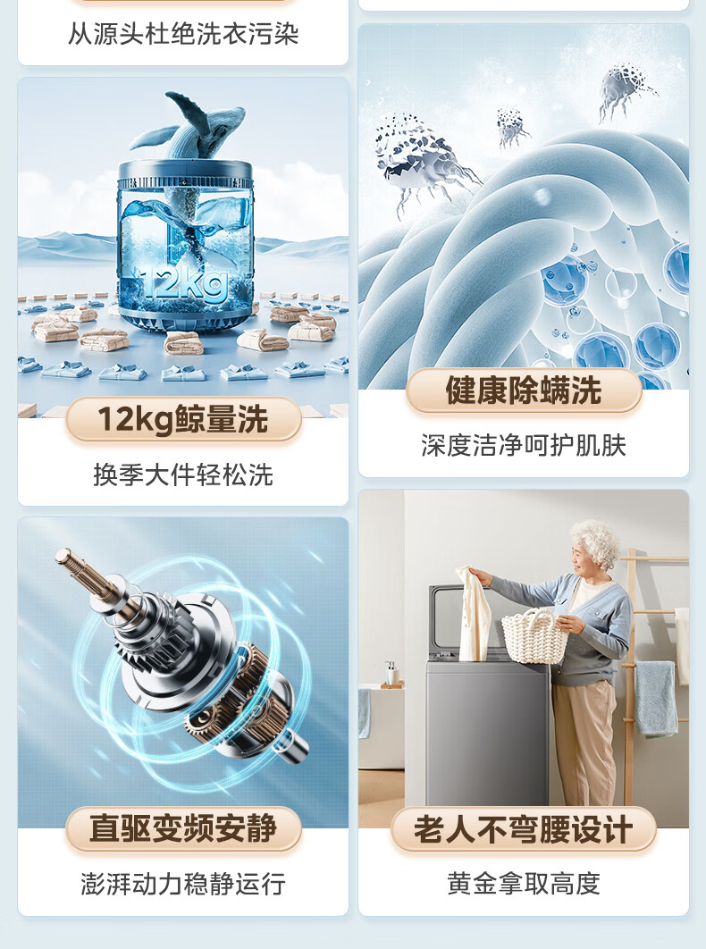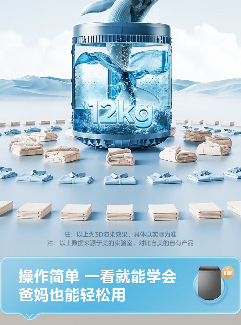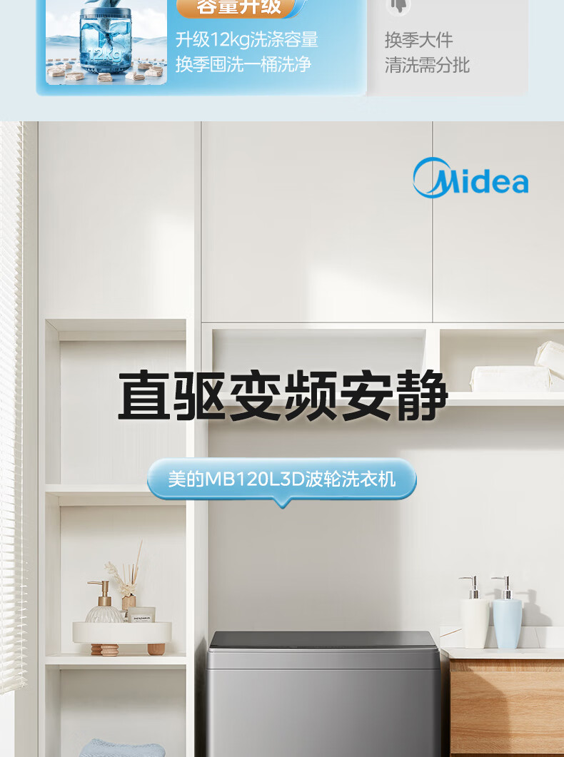 美的(Midea)波轮洗衣机全自动12公斤大容量除螨洗专利免清洗快净科技 一级能效 以旧换新 MB120L3D 波轮