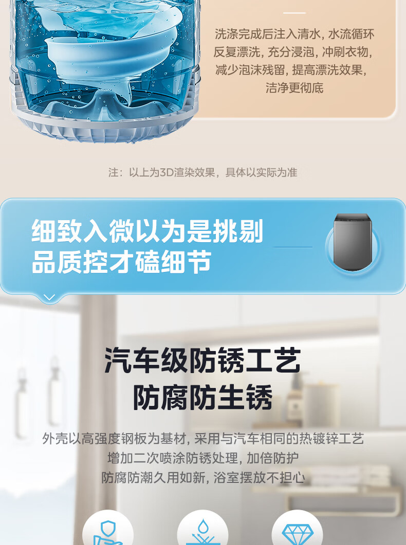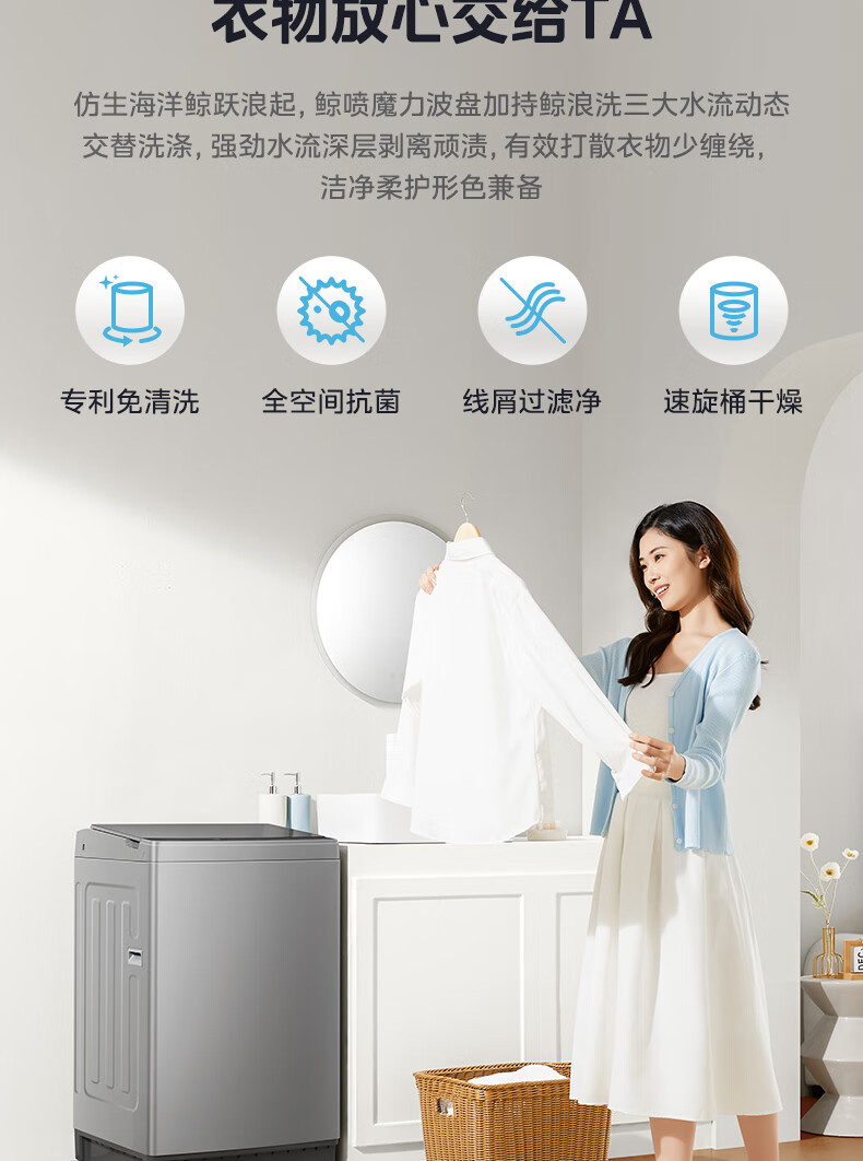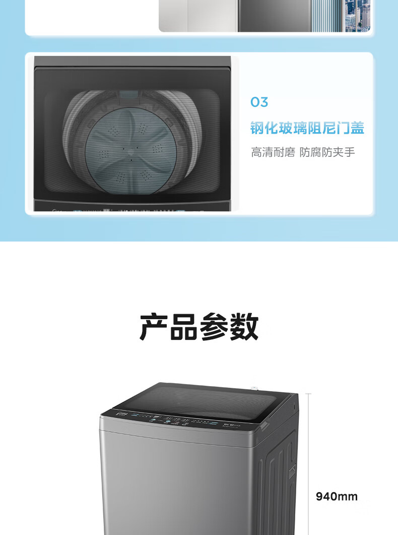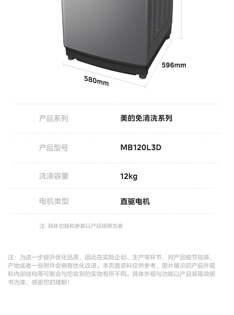 美的(Midea)波轮洗衣机全自动12公斤大容量除螨洗专利免清洗快净科技 一级能效 以旧换新 MB120L3D 波轮