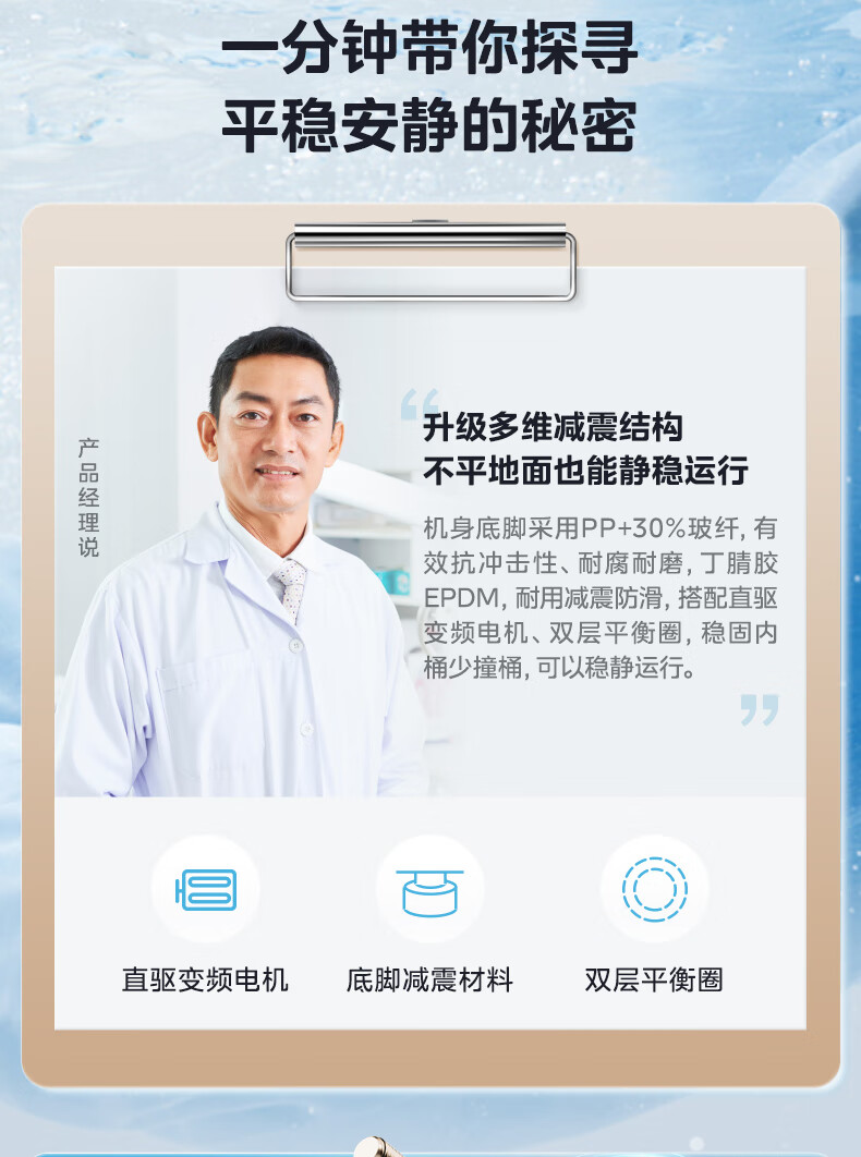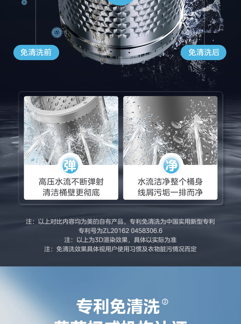 美的滚筒洗衣机全自动10KG家用大容量 纯平自由嵌 快净2.0 变频1.21高洗净比 一级能效 MG10V56T
