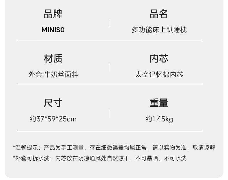 名创优品(MINISO)记忆棉床头靠垫枕头 床上趴睡枕护腰靠背垫午睡枕靠枕 【双灰拼色】升级款 10cm*10cm*10cm 含枕芯