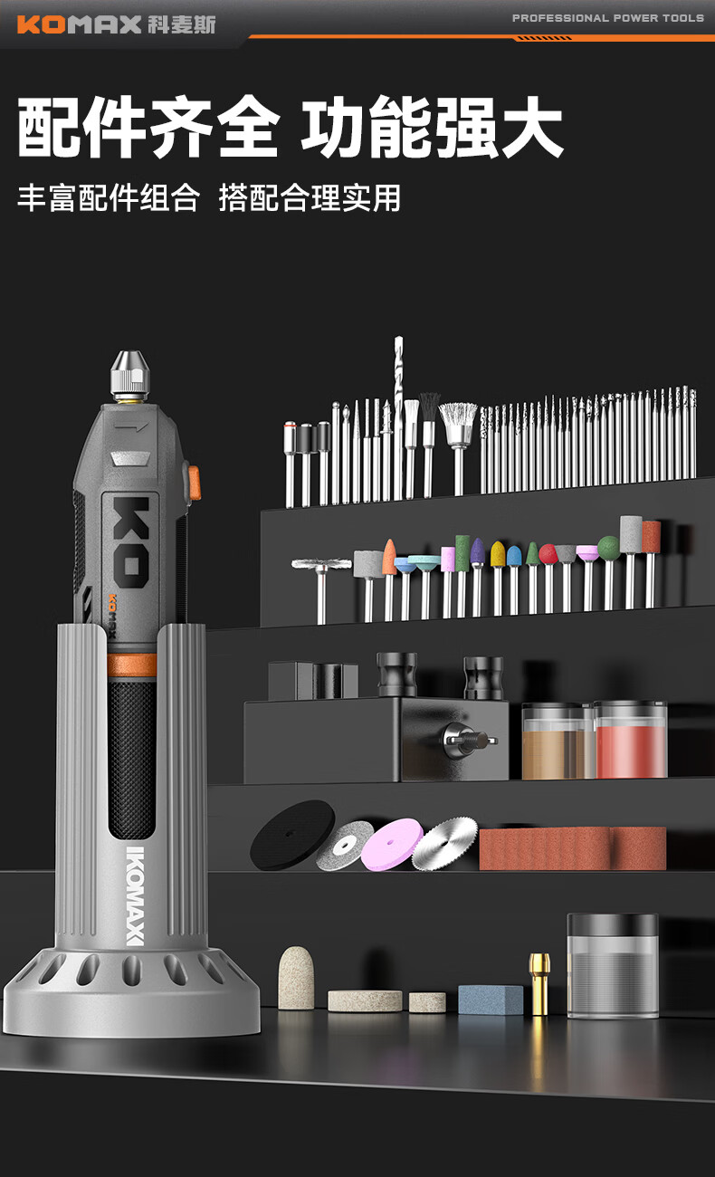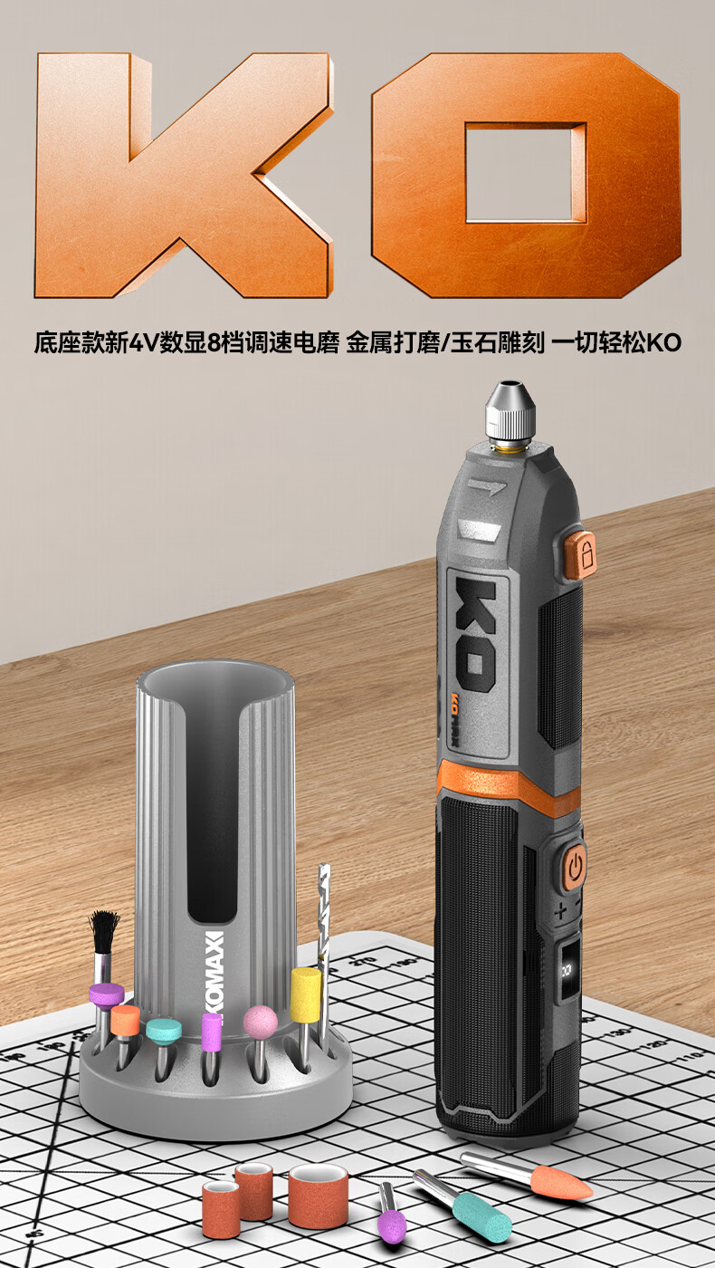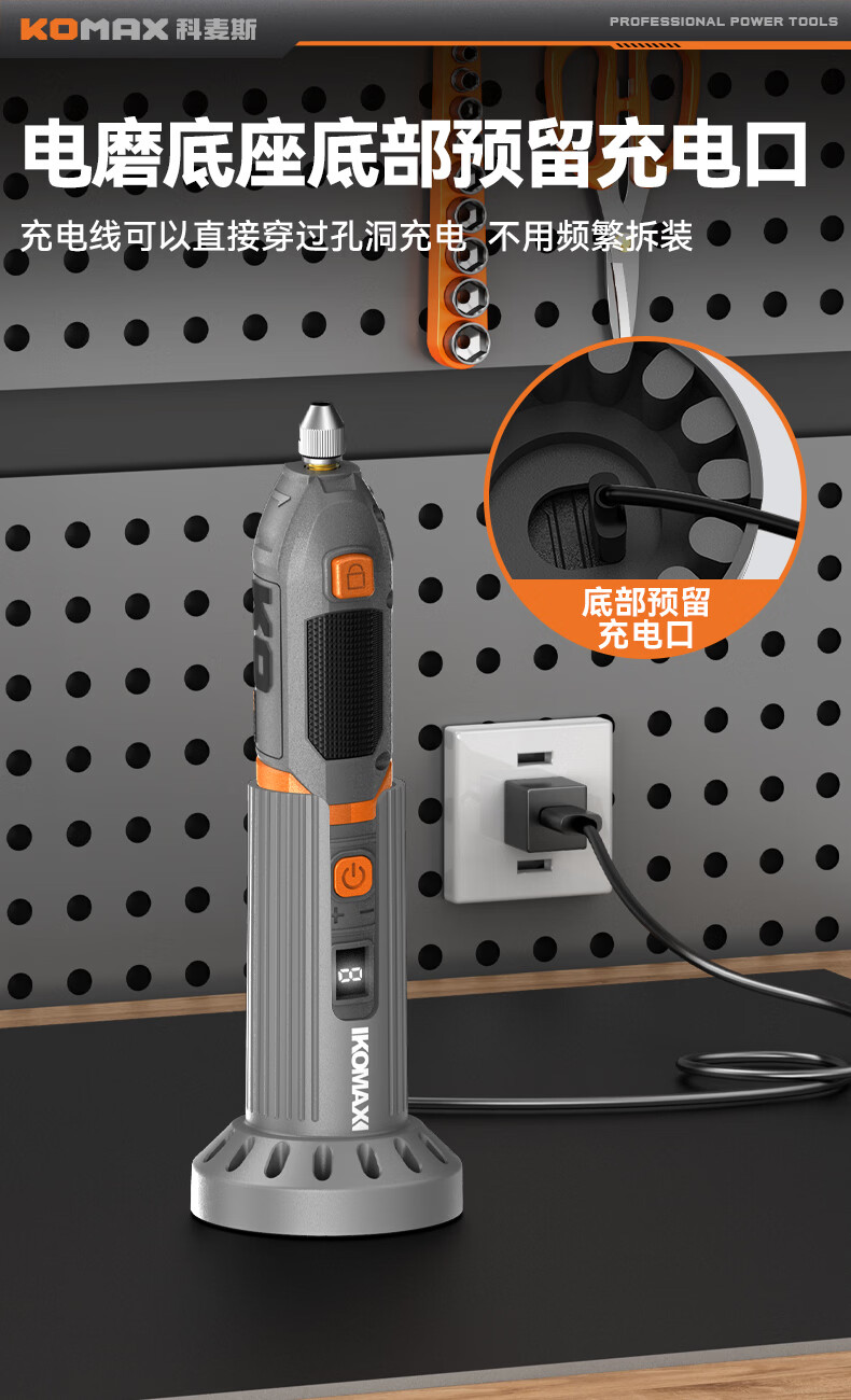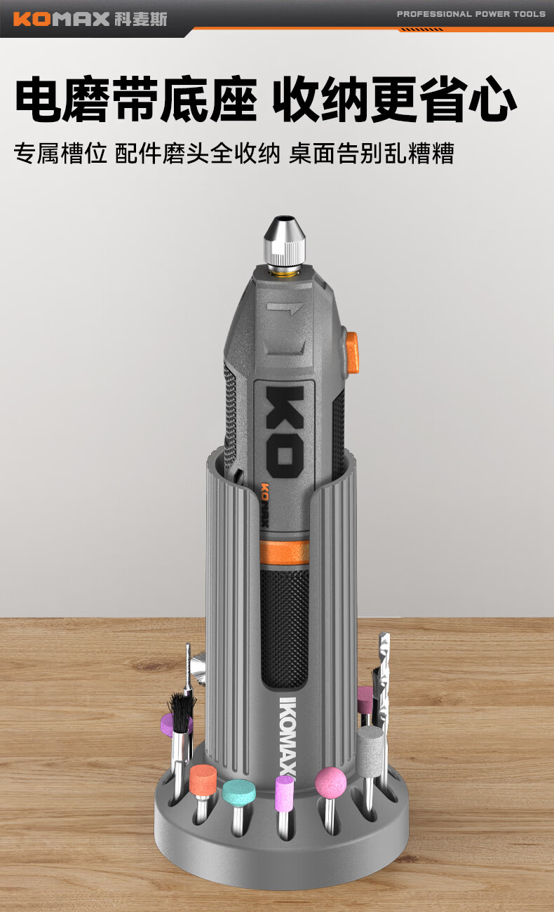 科麦斯(KOMAX)多功能数显8档调速电磨套装快速充电底座切割打磨抛光电动工具 灰色底座款/插电款触屏数显5档调速+31件套