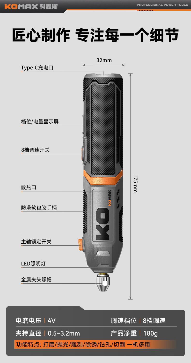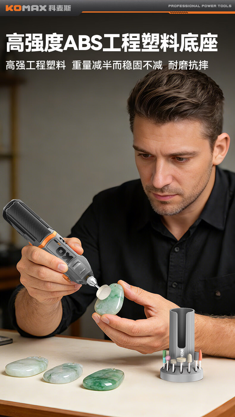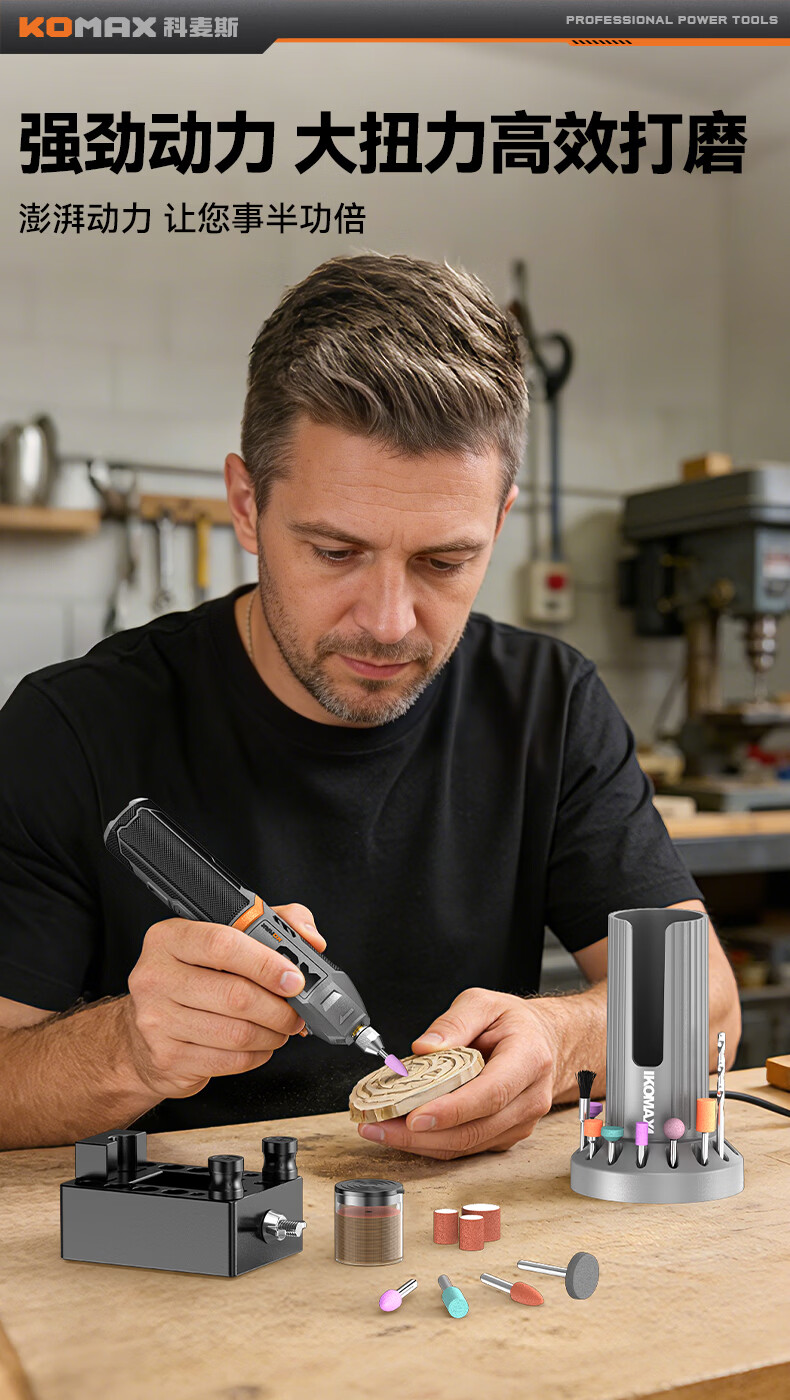 科麦斯(KOMAX)多功能数显8档调速电磨套装快速充电底座切割打磨抛光电动工具 灰色底座款/插电款触屏数显5档调速+31件套