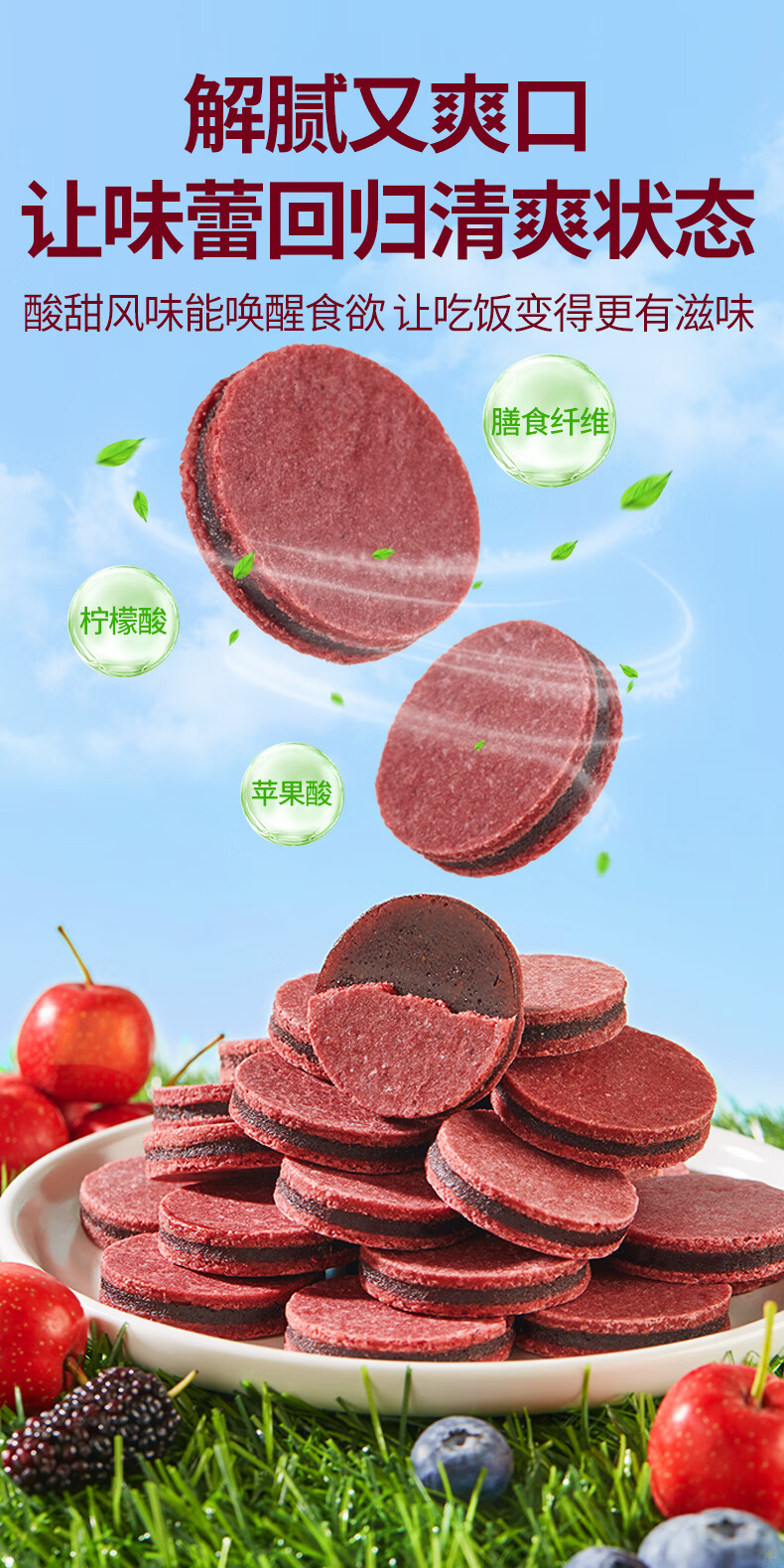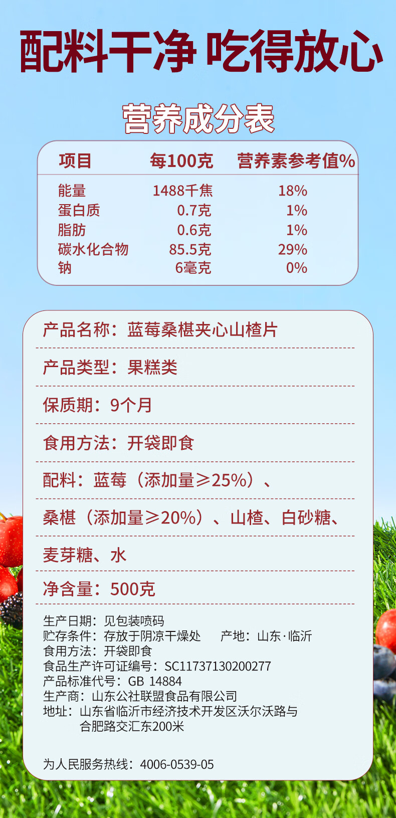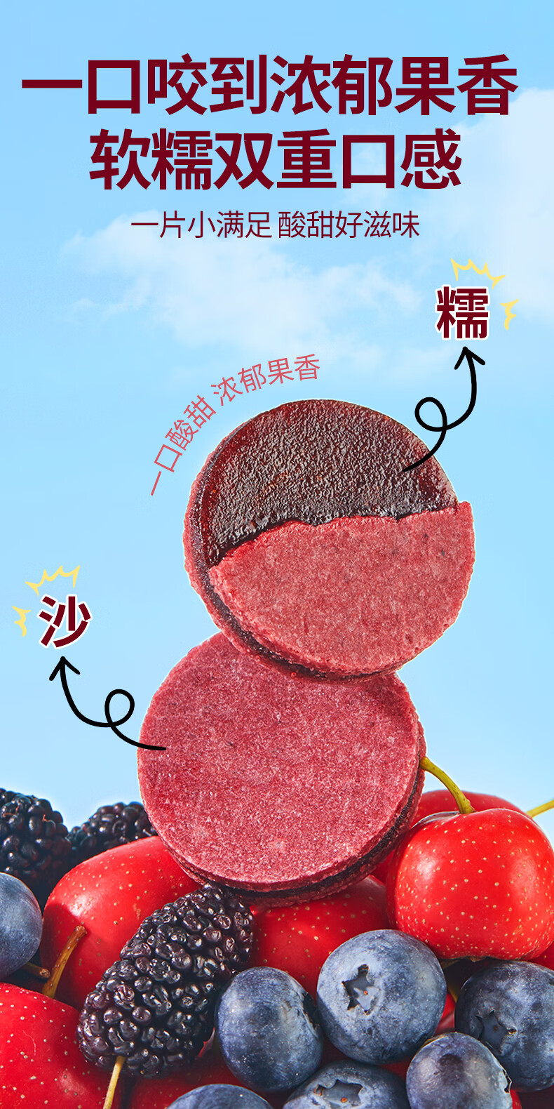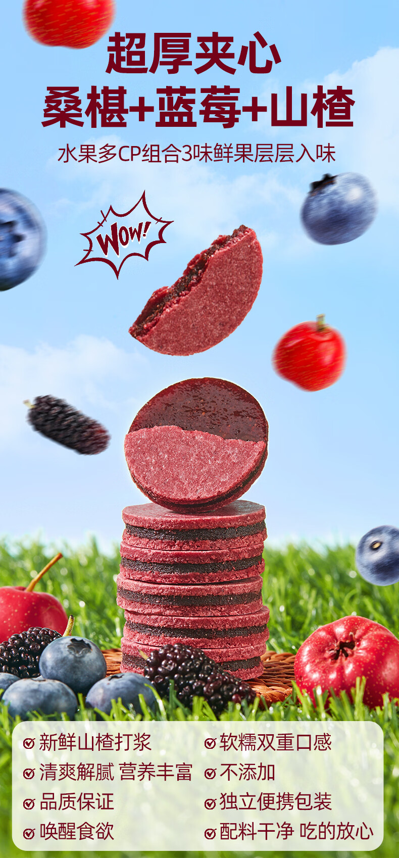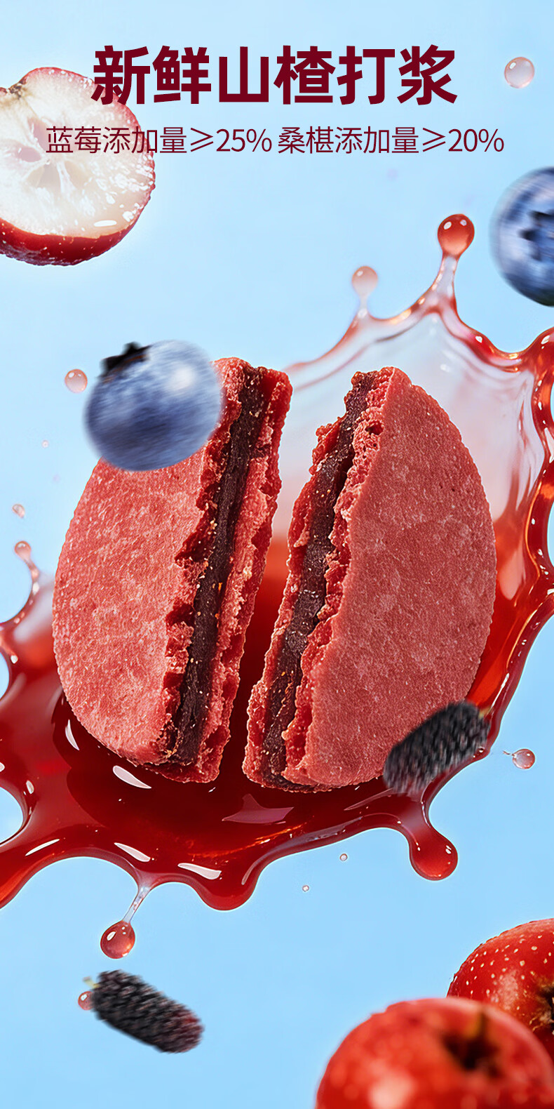 沂蒙公社0添加剂蓝莓桑葚夹心山楂片500g酸甜开胃儿童健康休闲零食