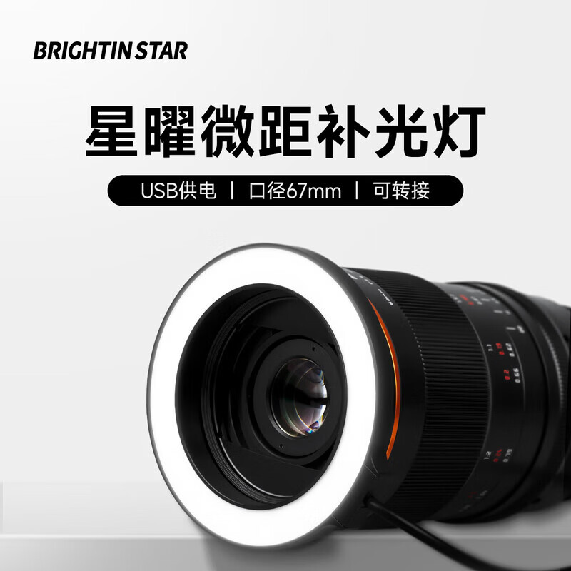 星曜光学补光微距拍摄影灯67mm螺纹镜头补光灯环形微单相机苹果Vivio手机面光美颜vlog直播LED圈圈灯 67mm环形对焦灯