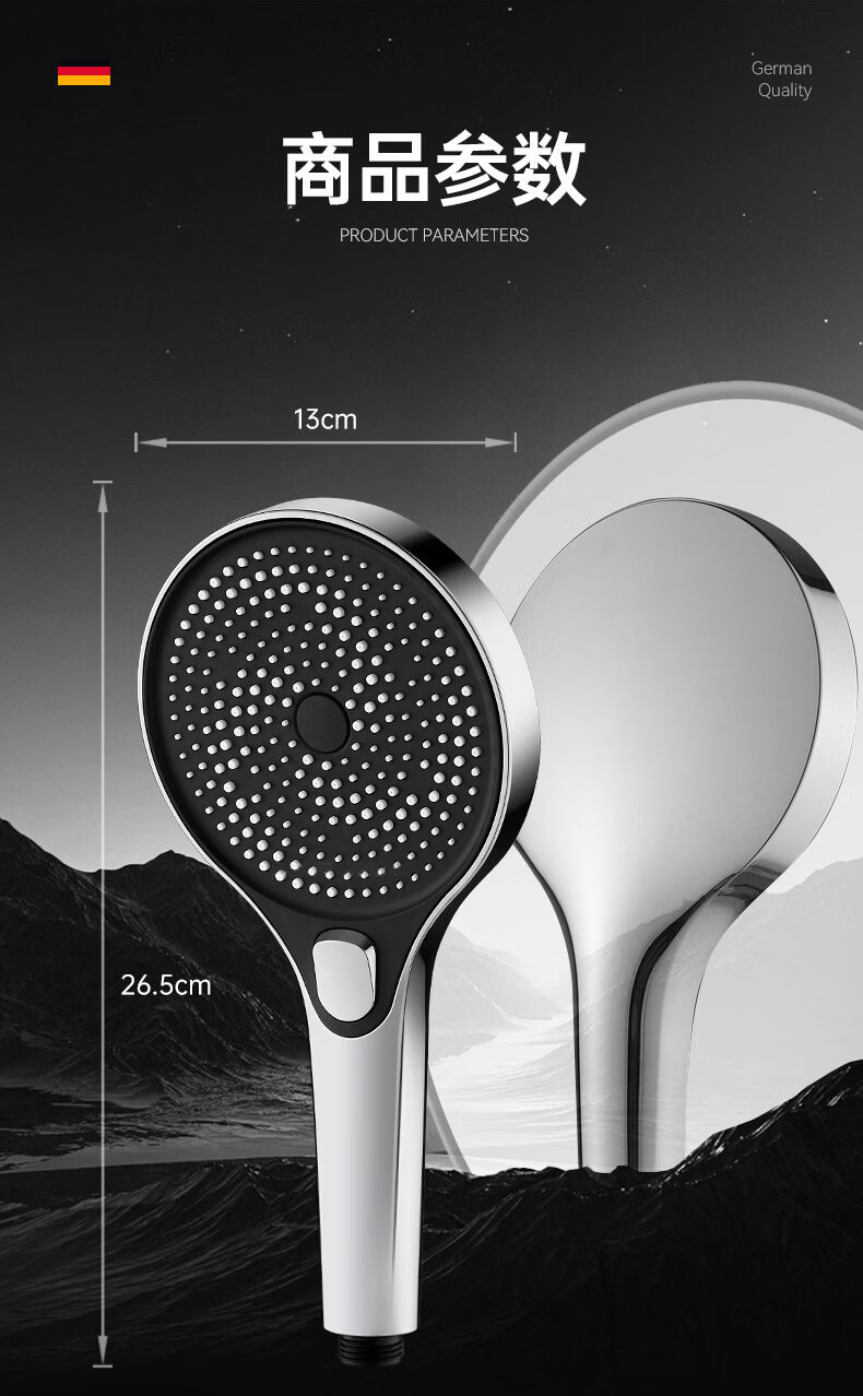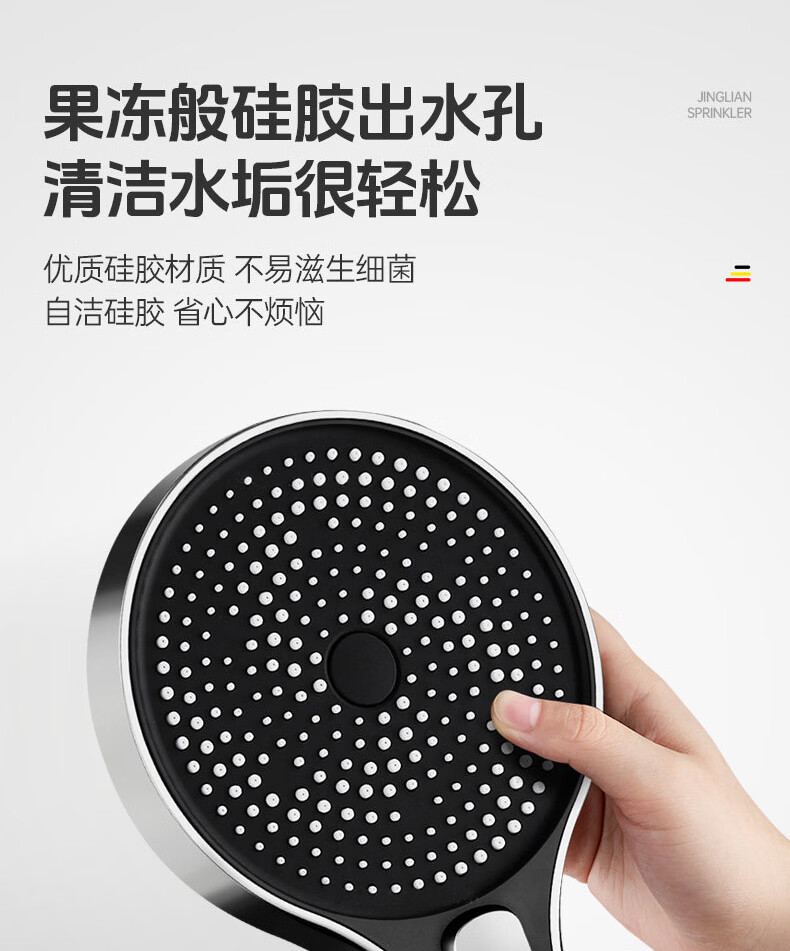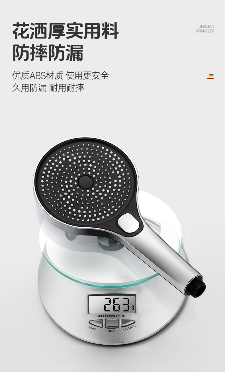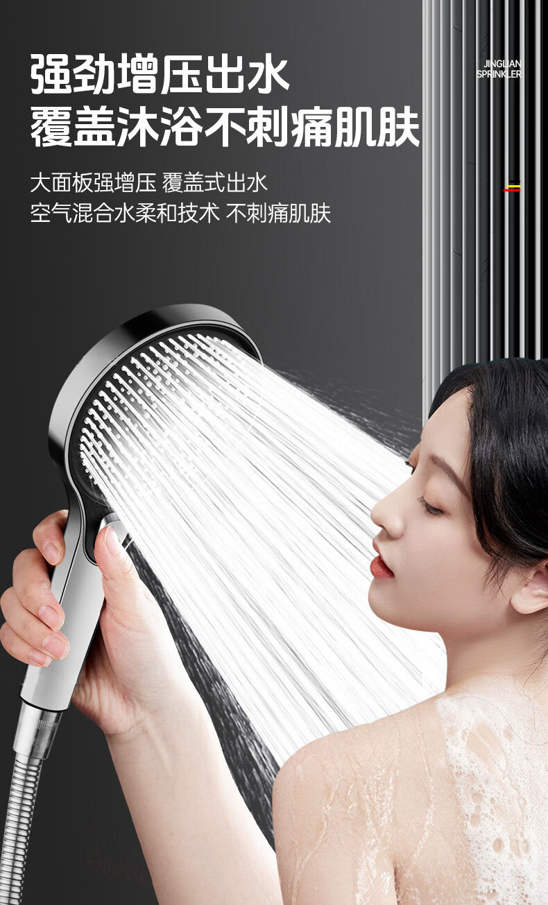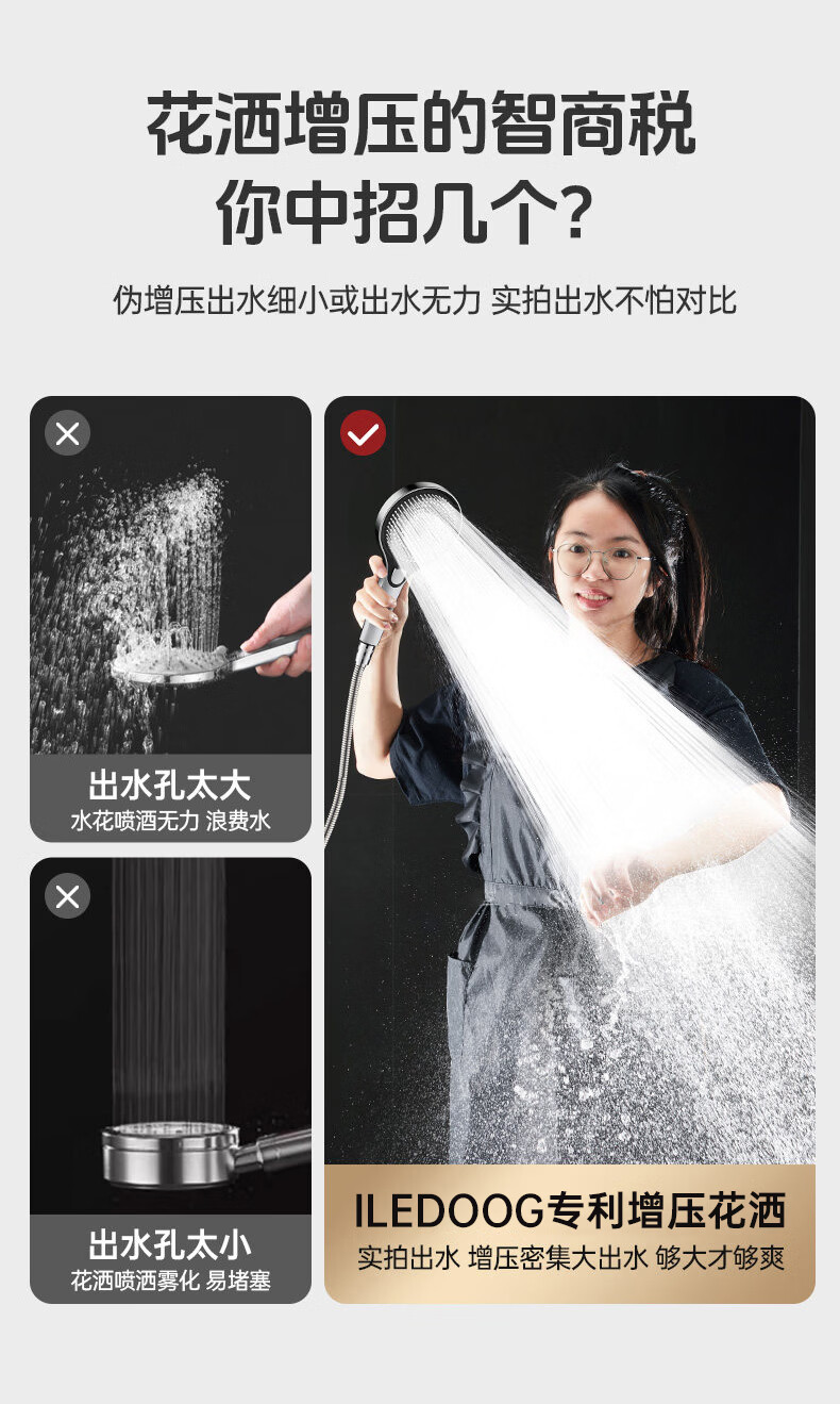 iLeddog【德国】增压淋浴花洒喷头带软管一套家用多功能手持莲蓬喷头全套 德系旗舰版花洒+1.5米软管+免打孔支架 AIR空气增压丨酒店式亲肤淋浴