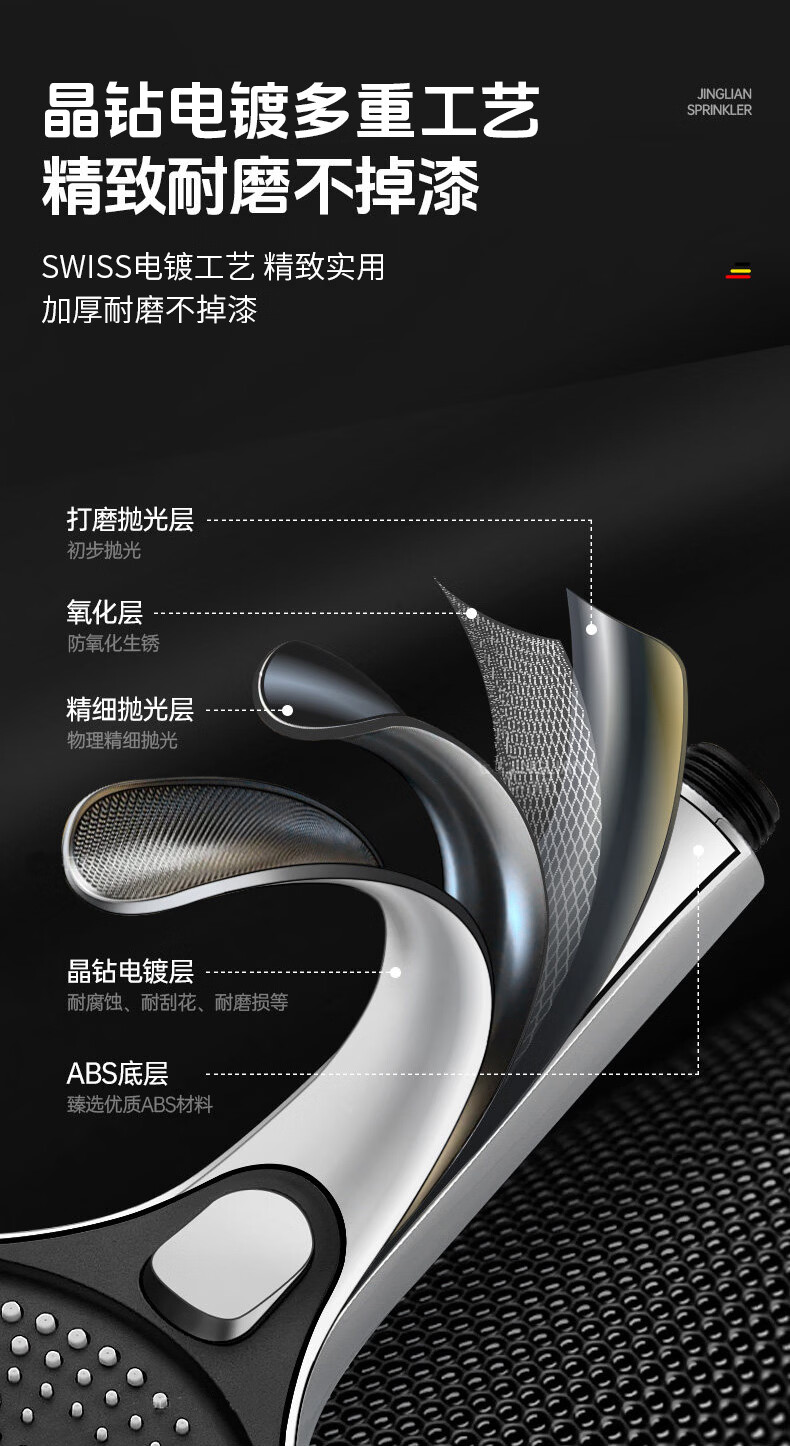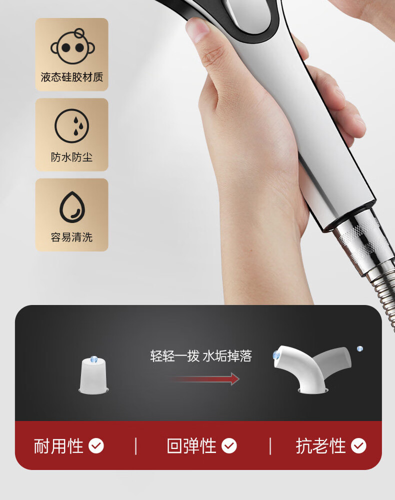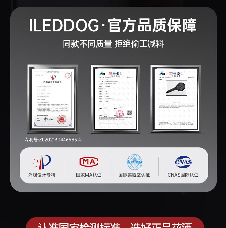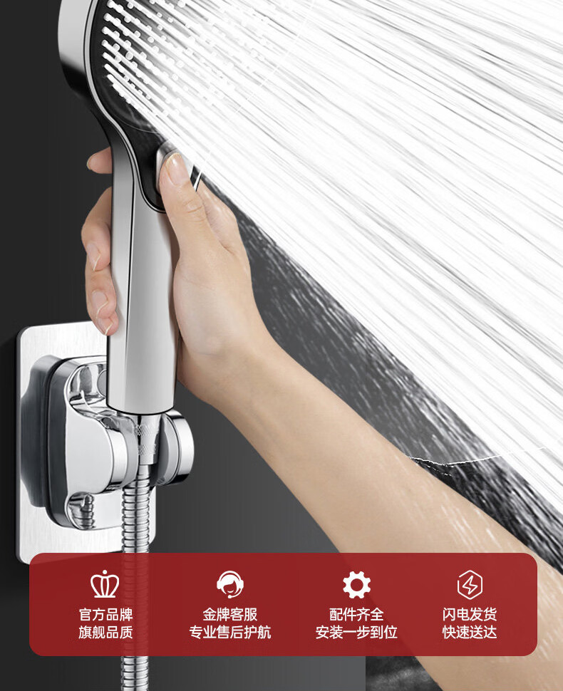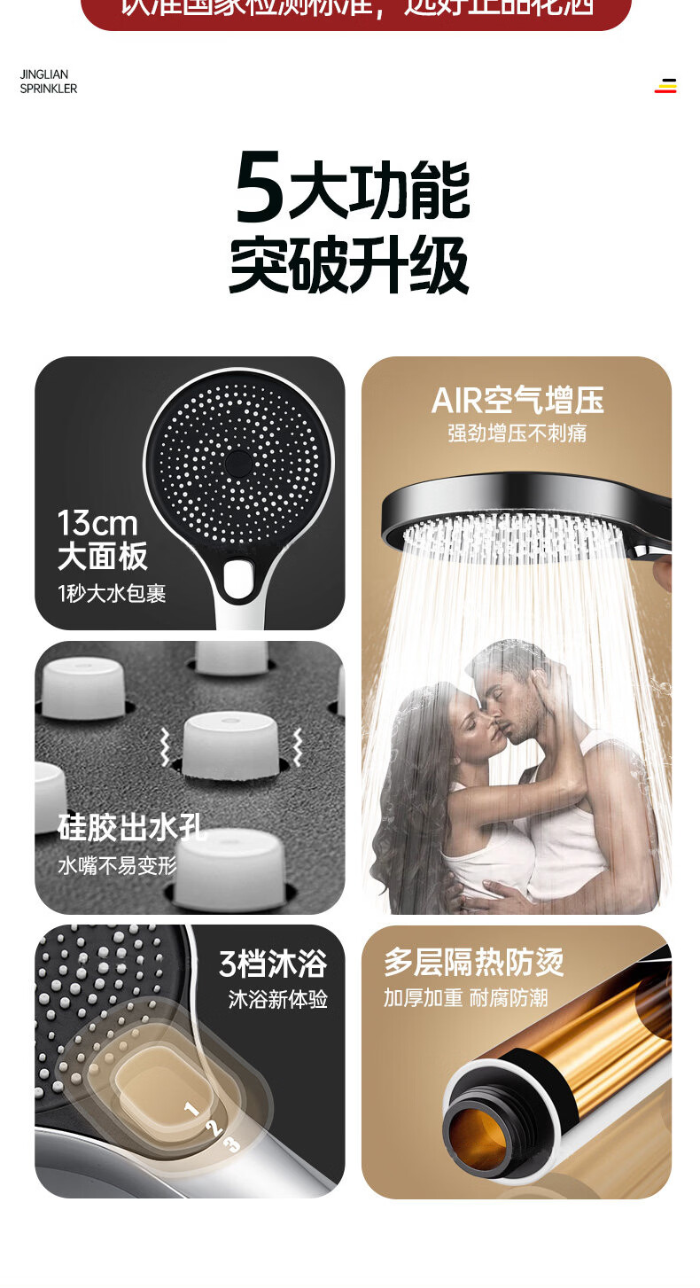 iLeddog【德国】增压淋浴花洒喷头带软管一套家用多功能手持莲蓬喷头全套 德系旗舰版花洒+1.5米软管+免打孔支架 AIR空气增压丨酒店式亲肤淋浴