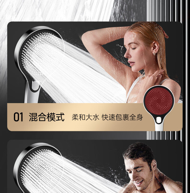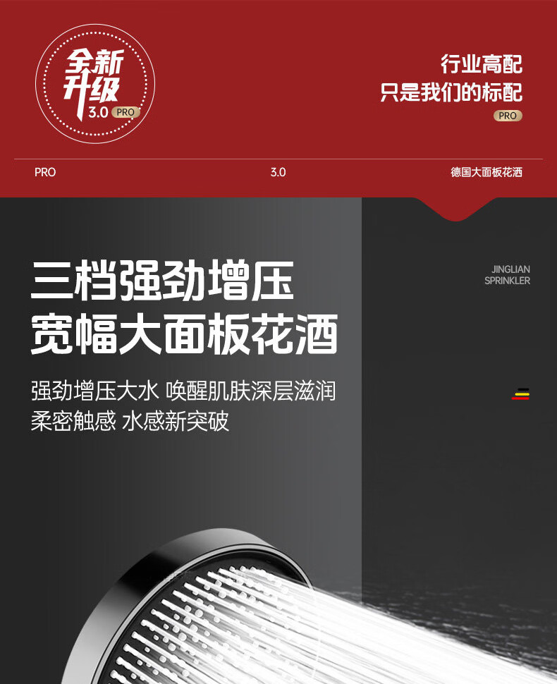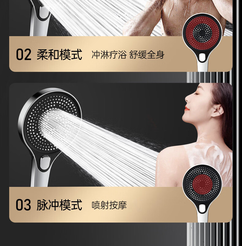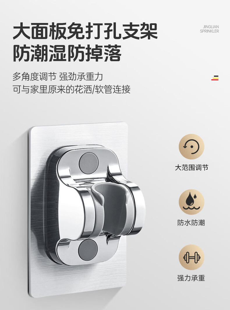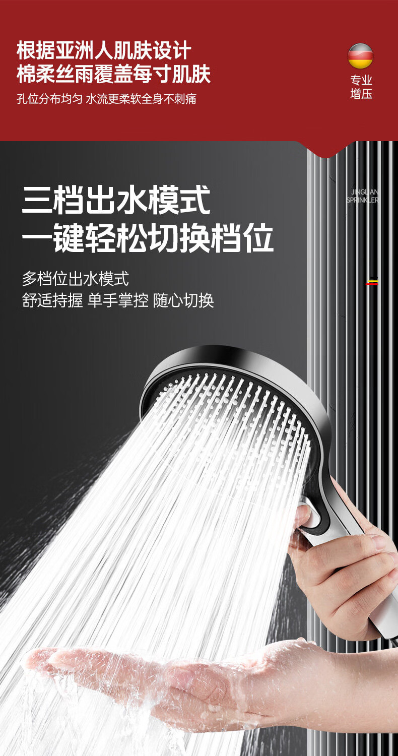 iLeddog【德国】增压淋浴花洒喷头带软管一套家用多功能手持莲蓬喷头全套 德系旗舰版花洒+1.5米软管+免打孔支架 AIR空气增压丨酒店式亲肤淋浴
