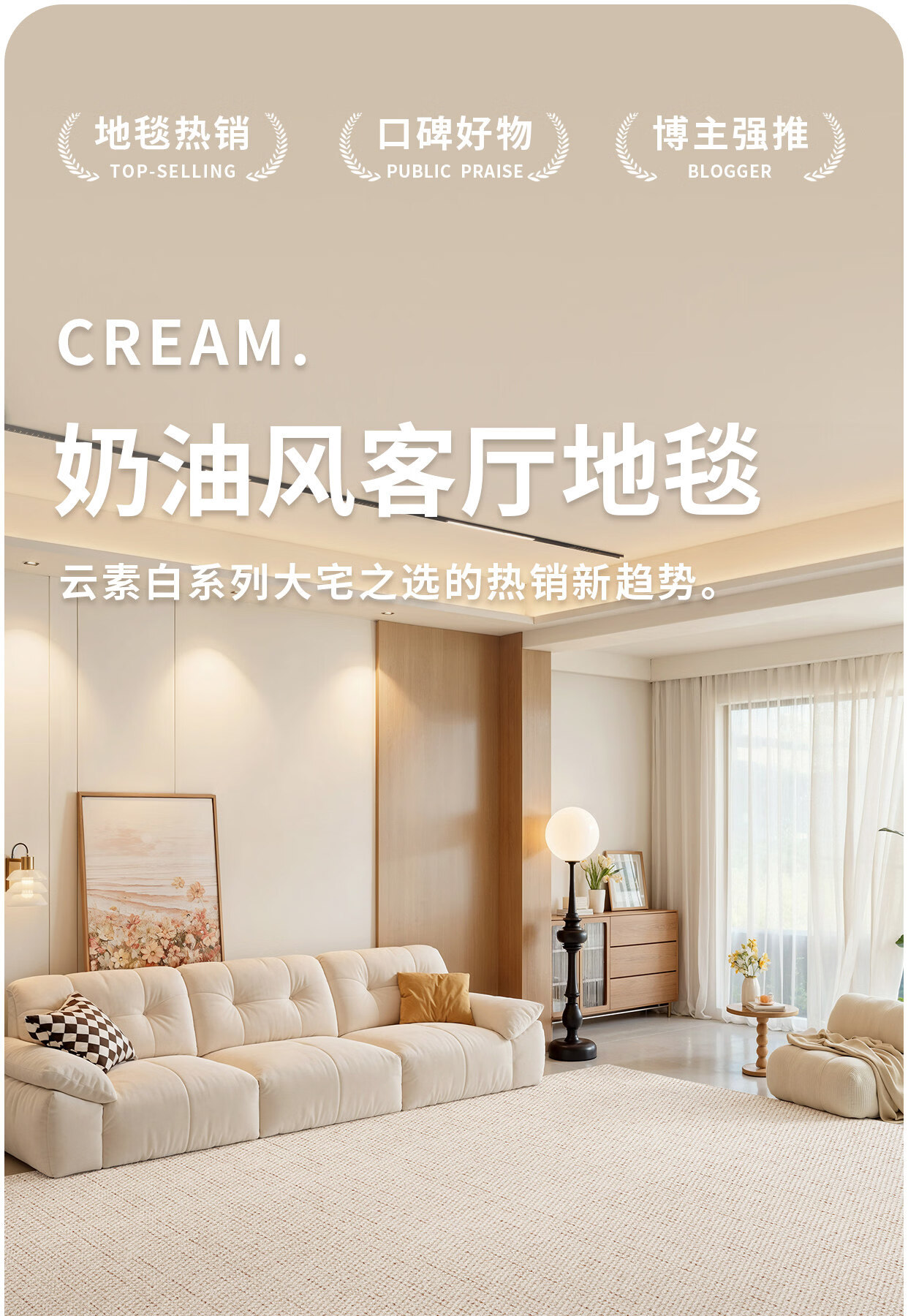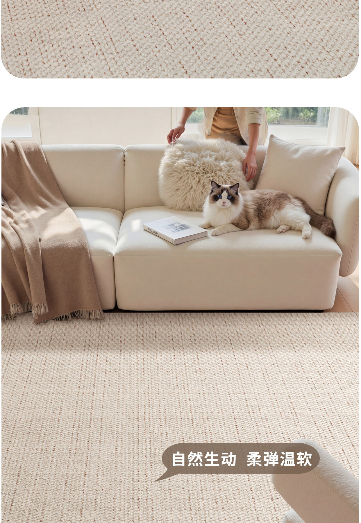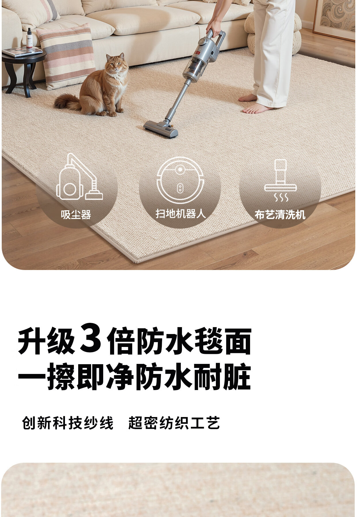 Y U-LIVE地毯客厅奶油风纯色2026新款免洗可擦防水免打理卧室沙发茶几 S仿羊绒-鎏金粟 160×230cm【升级防水毯面】