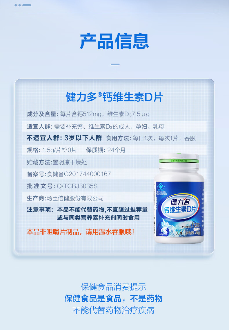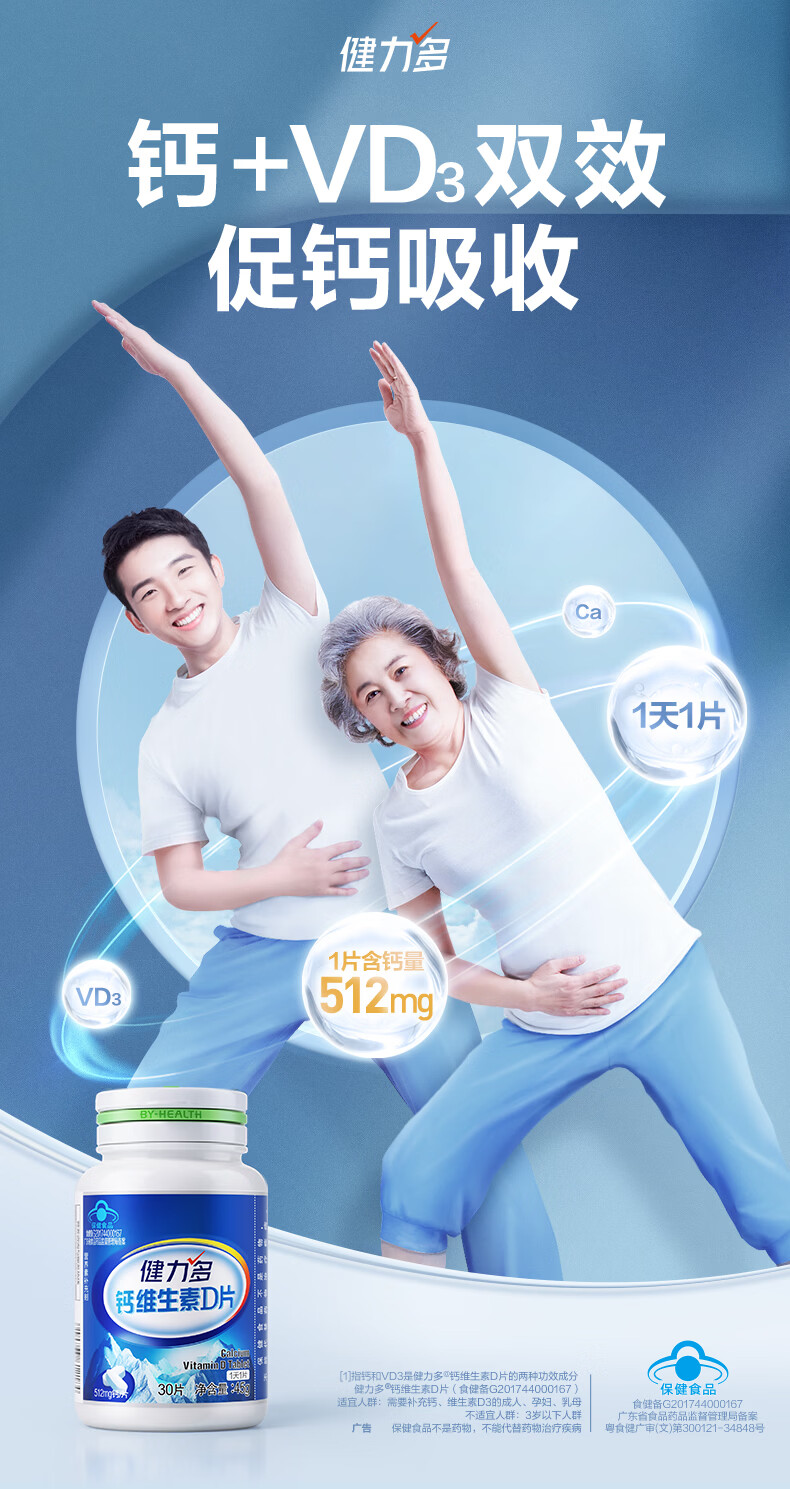 健力多钙片维生素dVD30片*2补钙易吸收成年人青少年中老年补钙自营钙片