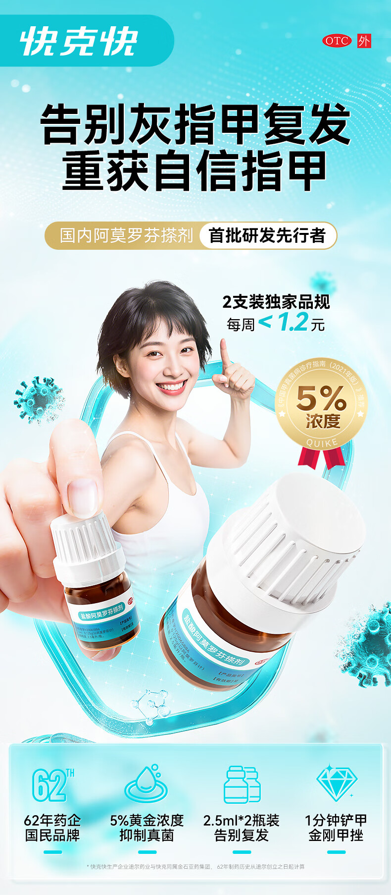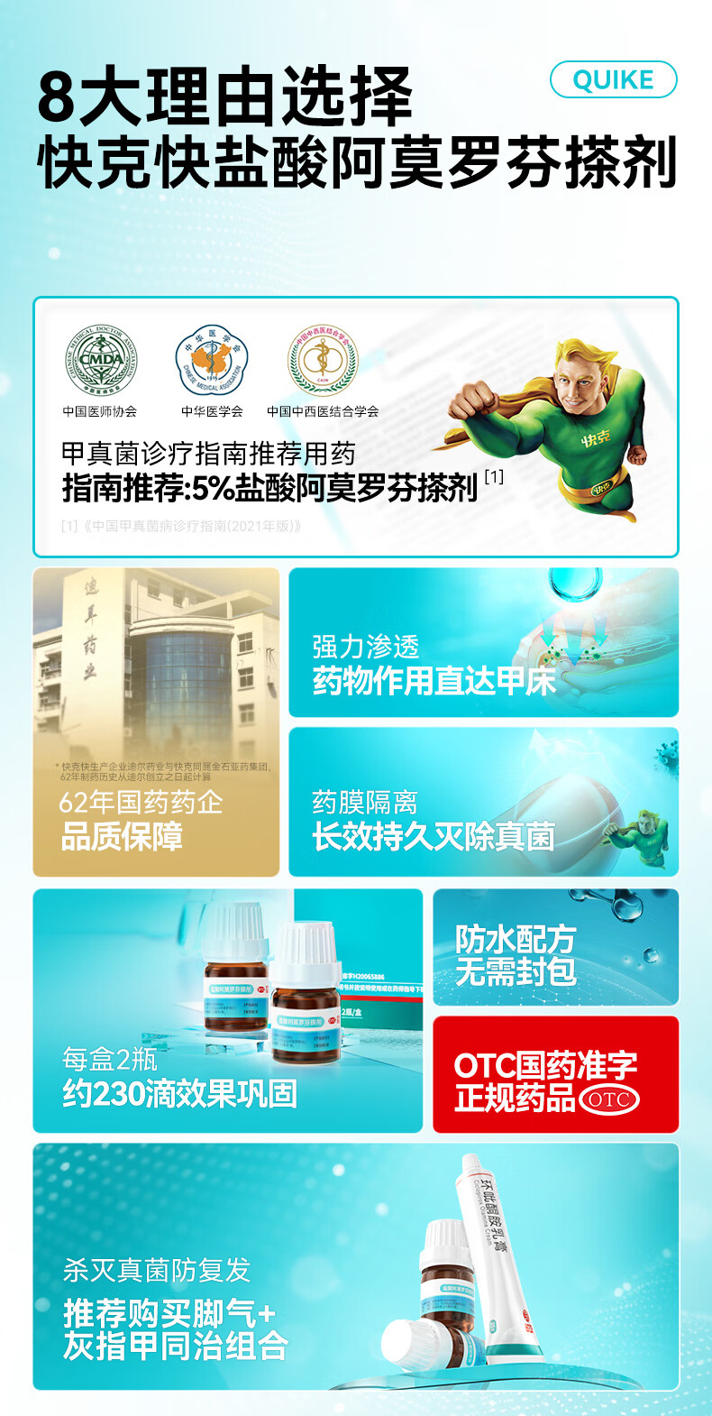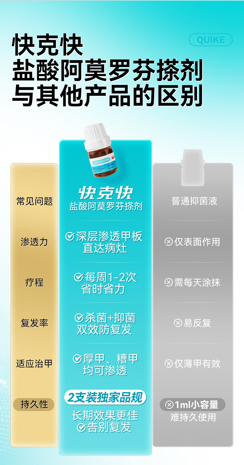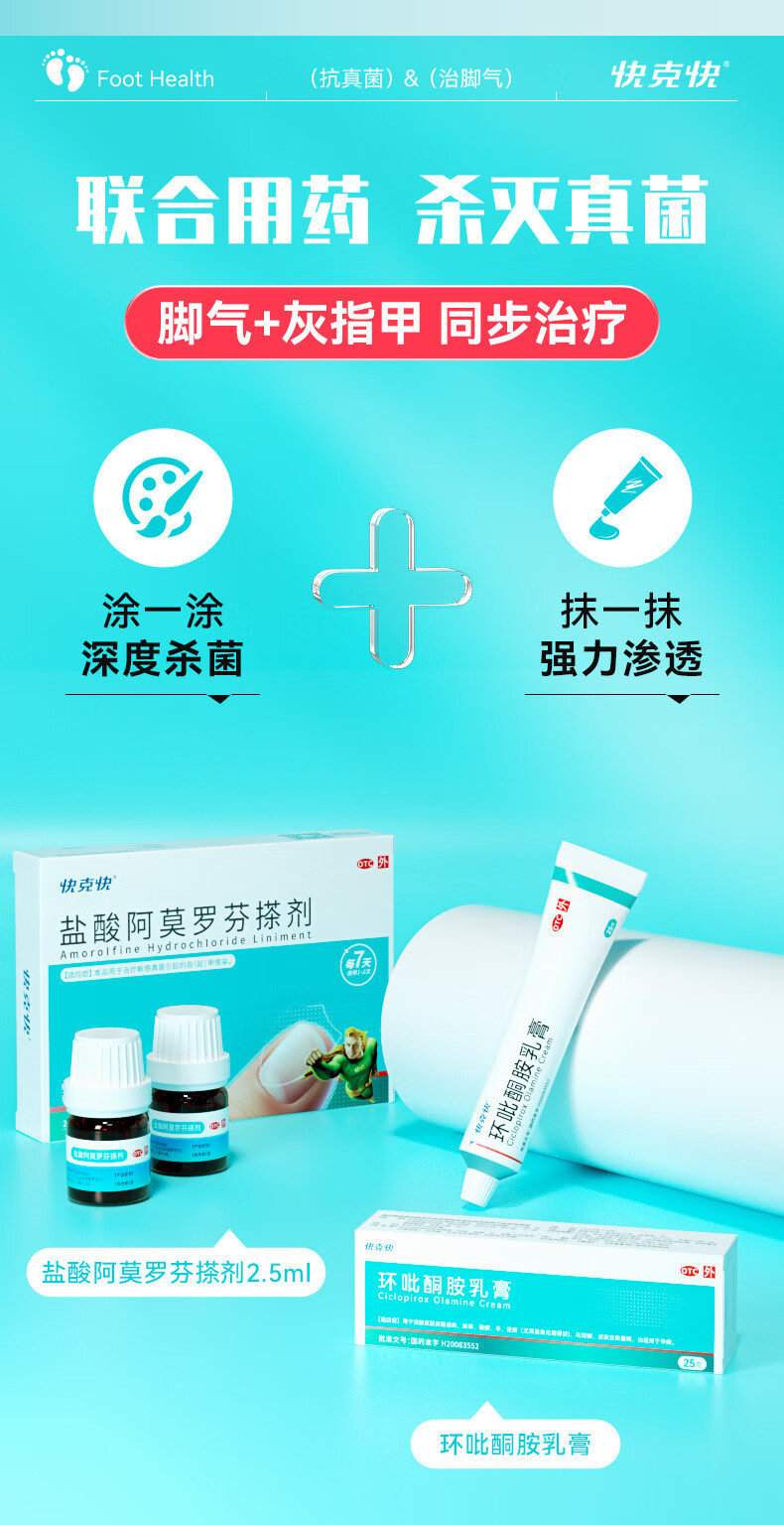 [快克快]盐酸阿莫罗芬搽剂 2.5ml*2瓶 1盒+[快克快]环吡酮胺乳膏 1%*25g 1盒 真菌感染正品旗舰店