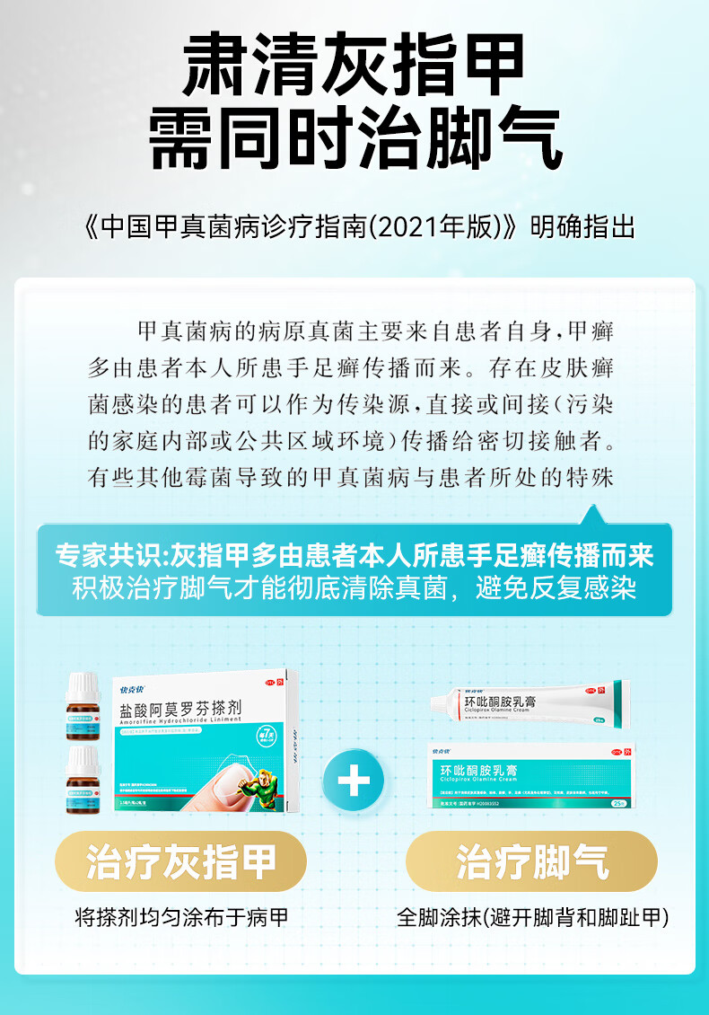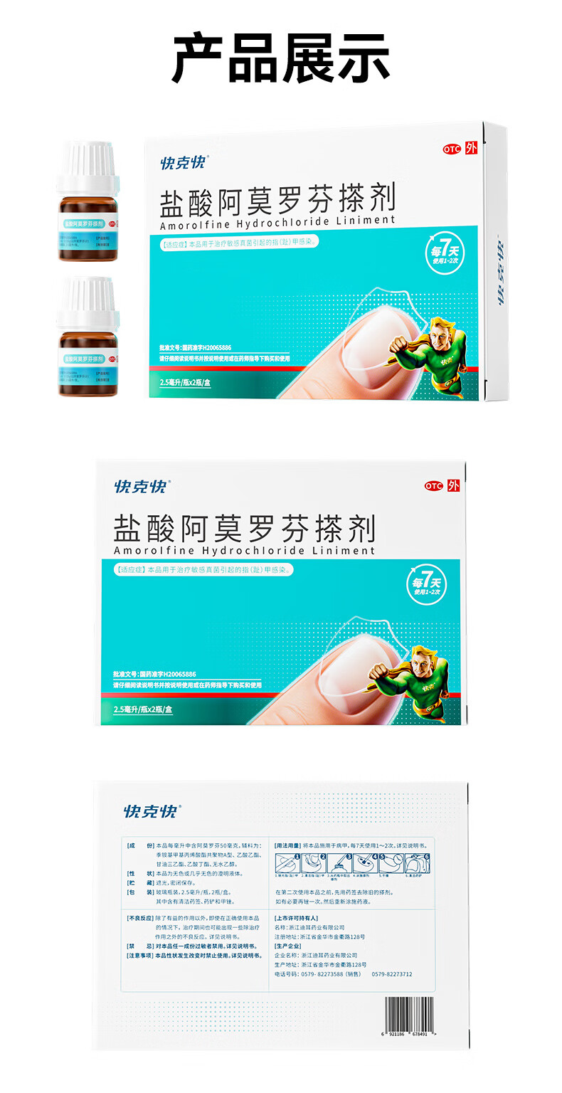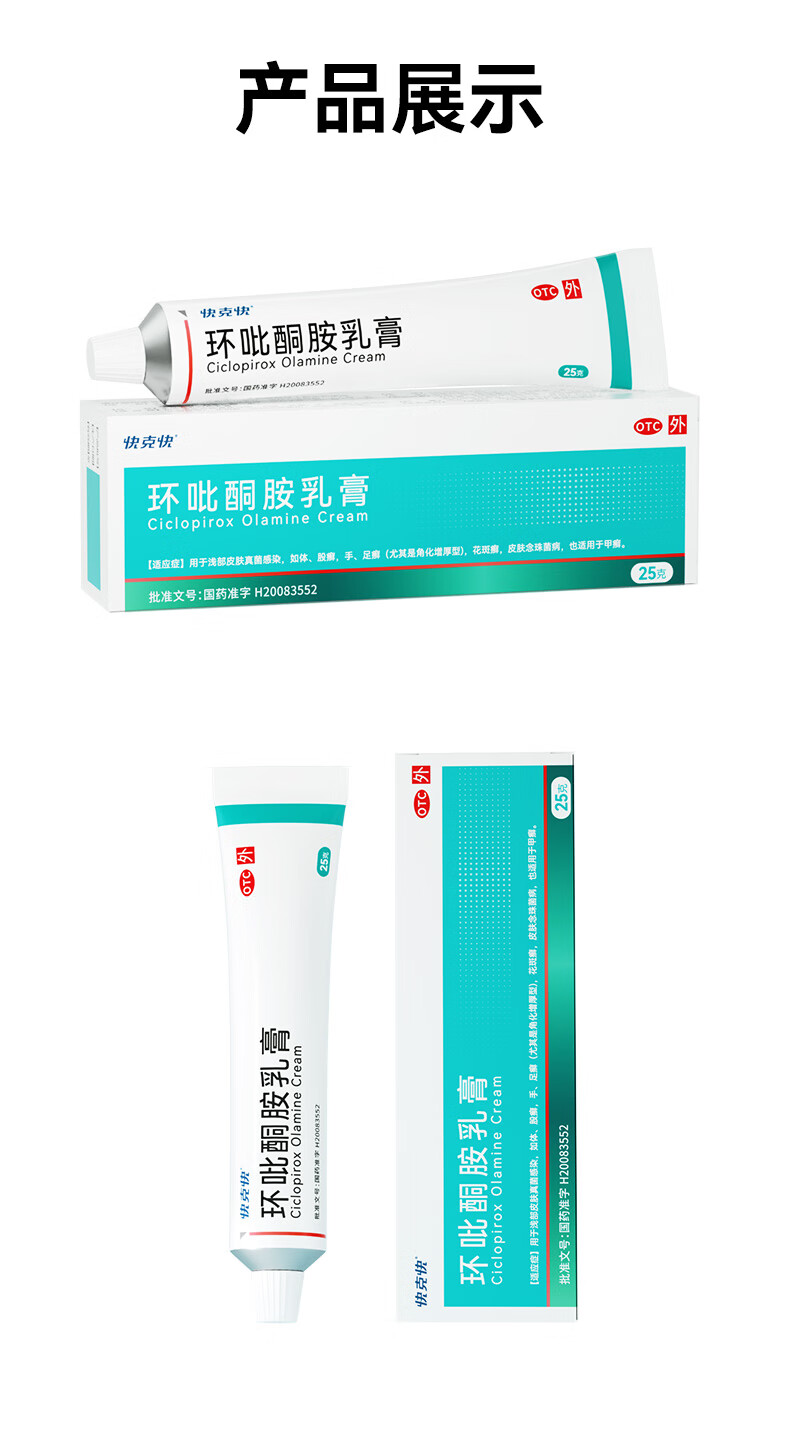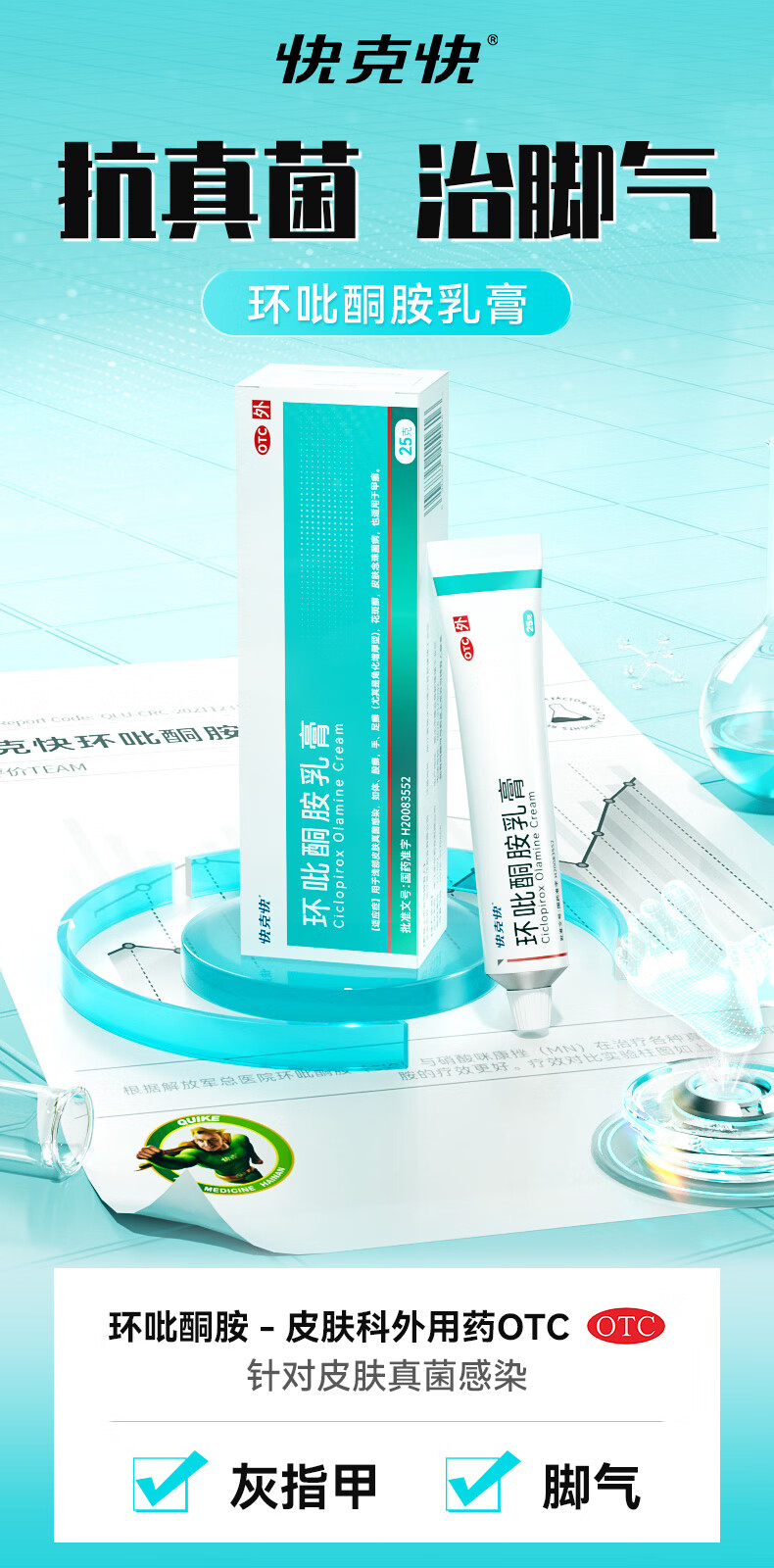 [快克快]盐酸阿莫罗芬搽剂 2.5ml*2瓶 1盒+[快克快]环吡酮胺乳膏 1%*25g 1盒 真菌感染正品旗舰店