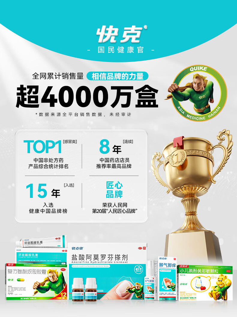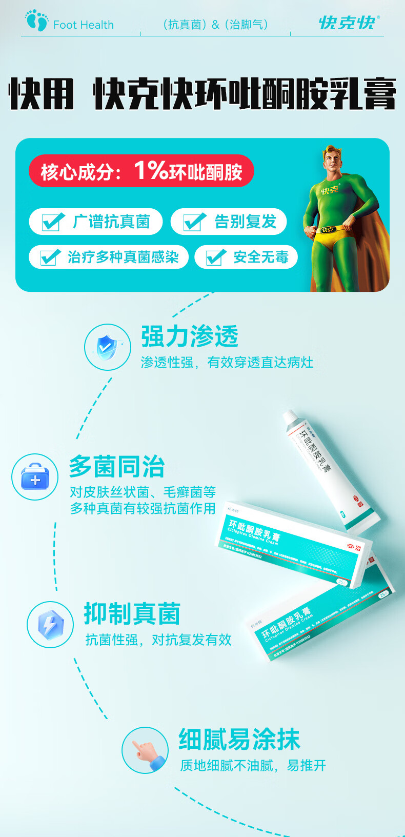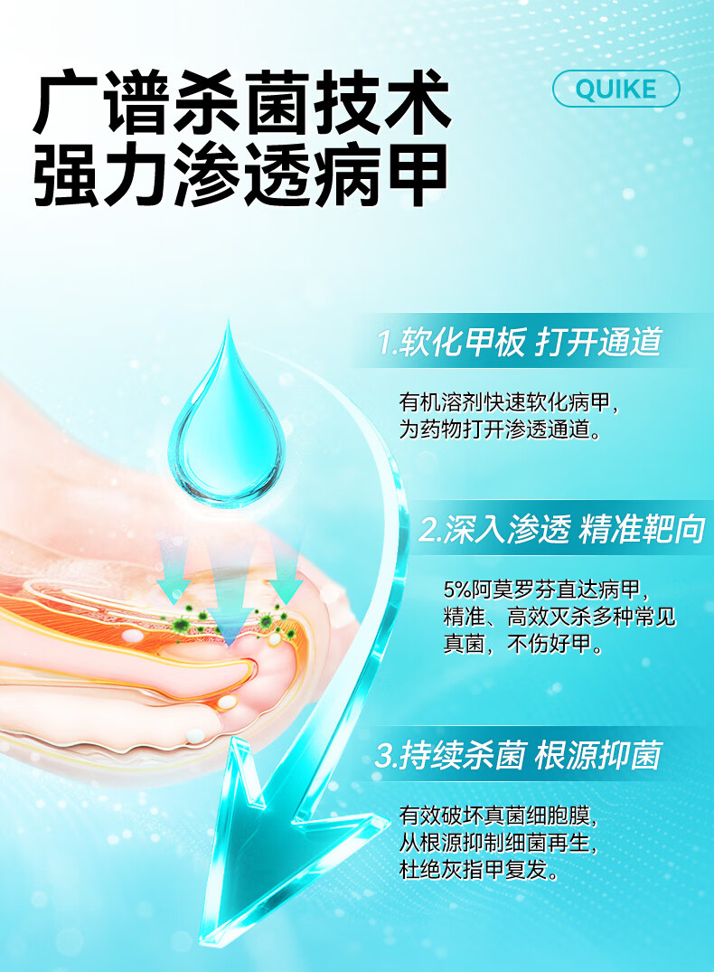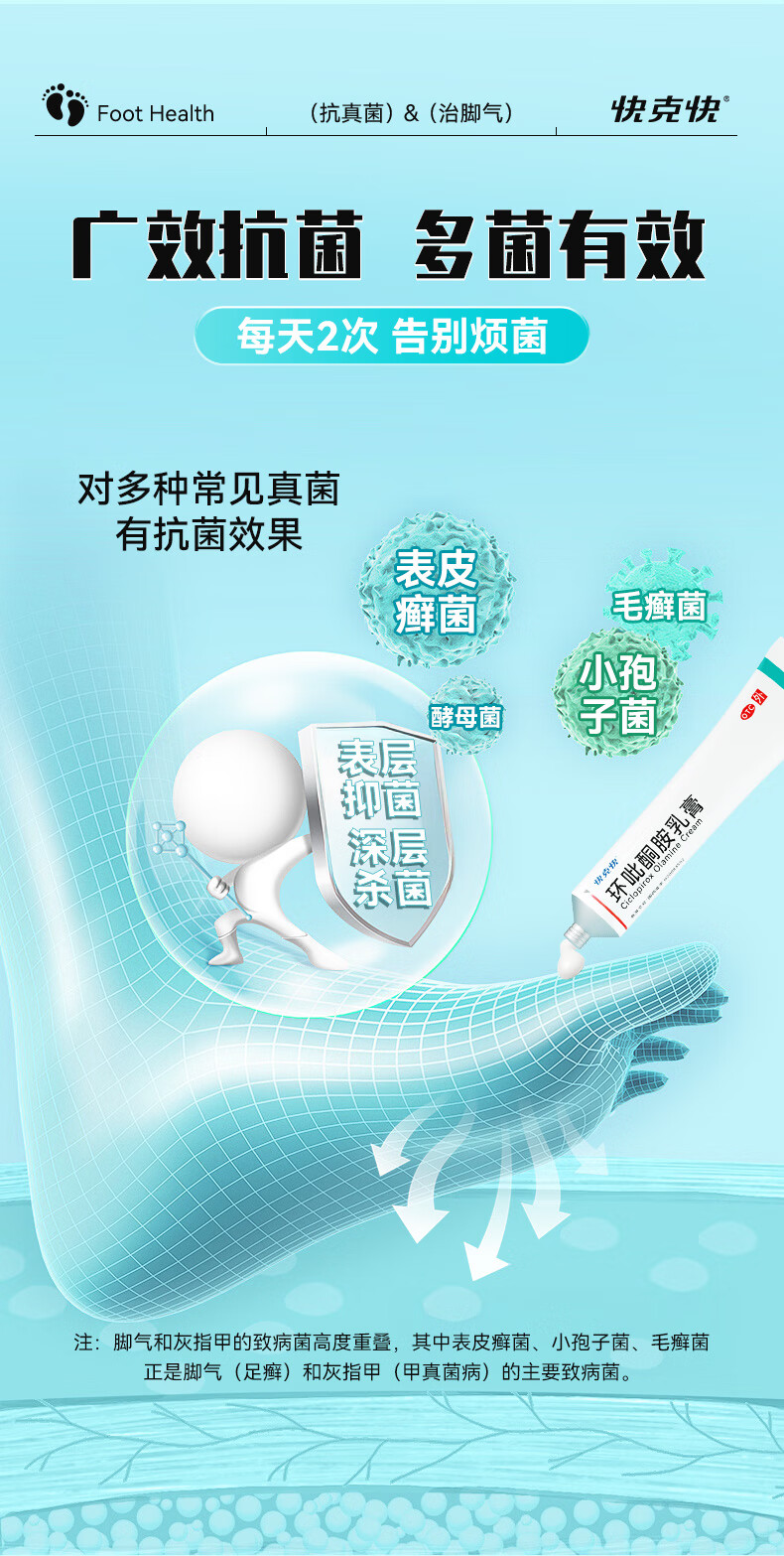 [快克快]盐酸阿莫罗芬搽剂 2.5ml*2瓶 1盒+[快克快]环吡酮胺乳膏 1%*25g 1盒 真菌感染正品旗舰店