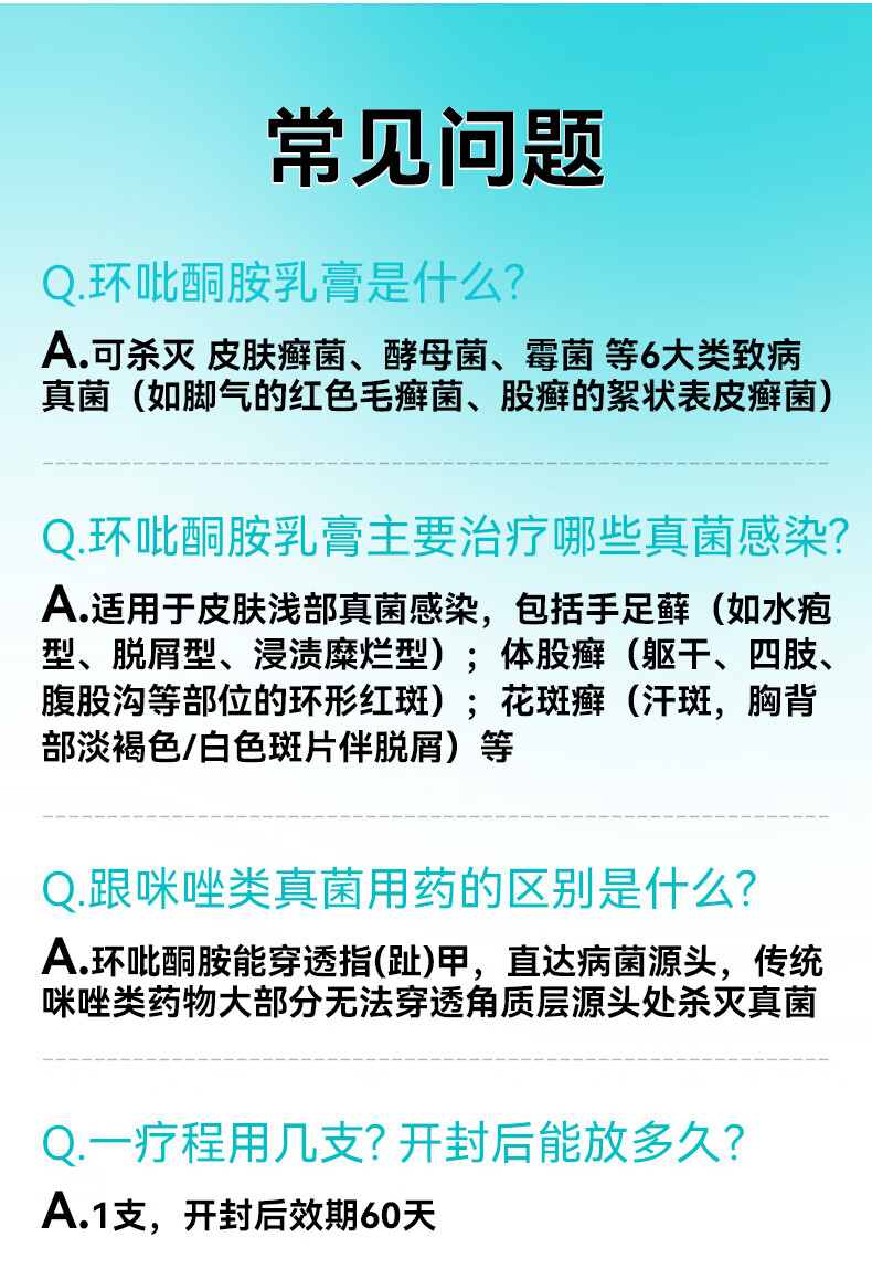 轻大夫环吡酮胺乳膏25g治疗灰指甲药甲癣药体癣治疗药膏脱甲真菌感染脚臭体癣股癣汗斑癣脚治疗脚气 3盒装
